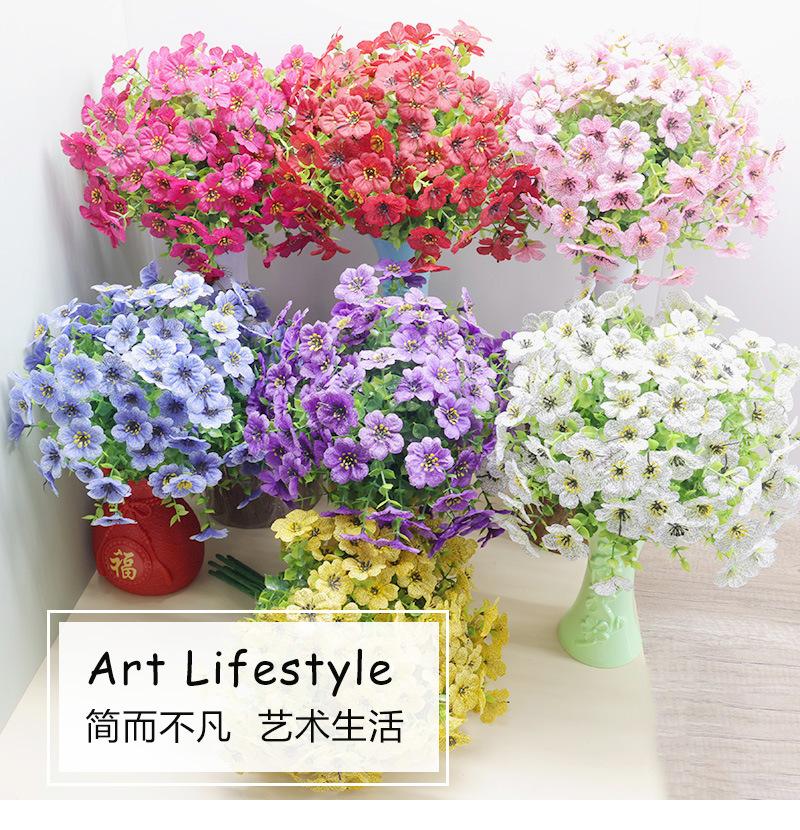 Simulación de plástico, hierba acuática, tela estampada, flor violeta, simulación de flor, decoración para exteriores, hogar, boda, fotografía, flor, planta verde