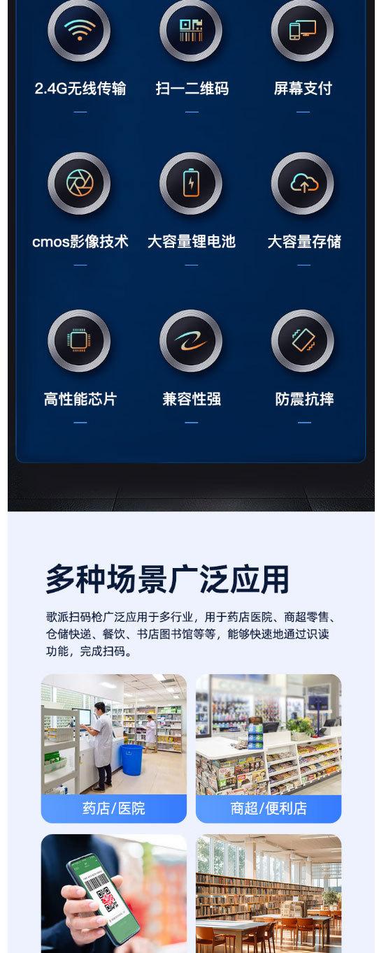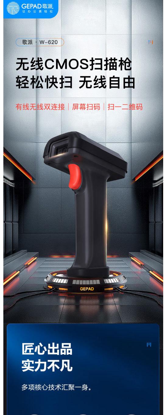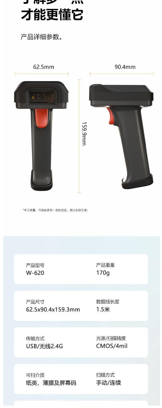 Escáner de código QR inalámbrico GE Pai W-620 para cajero de supermercado, escáner de pago WeChat