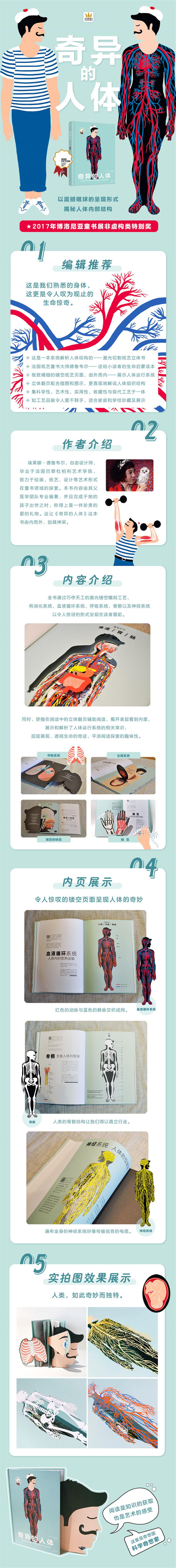 Mediante un fino proceso de impresión láser hueca, el libro muestra al lector de forma sorprendente el sistema digestivo, el sistema circulatorio, el sistema respiratorio, el esqueleto y el sistema nervioso. El contenido, recopilado profesionalmente por el autor y el equipo médico de su padre, es conciso y claro. La autora, con su excelente talento para la integración artística, combina la ilustración con el arte en papel, basándose en la anatomía humana del siglo XIX, para mostrar y analizar los músculos, el sistema nervioso, el cerebro, los huesos, la respiración, los pulmones, el corazón y el sistema circulatorio. , el sistema digestivo, el sistema urinario, los cinco sentidos y el sistema reproductivo, etc., para desvelar los misterios del cuerpo humano.