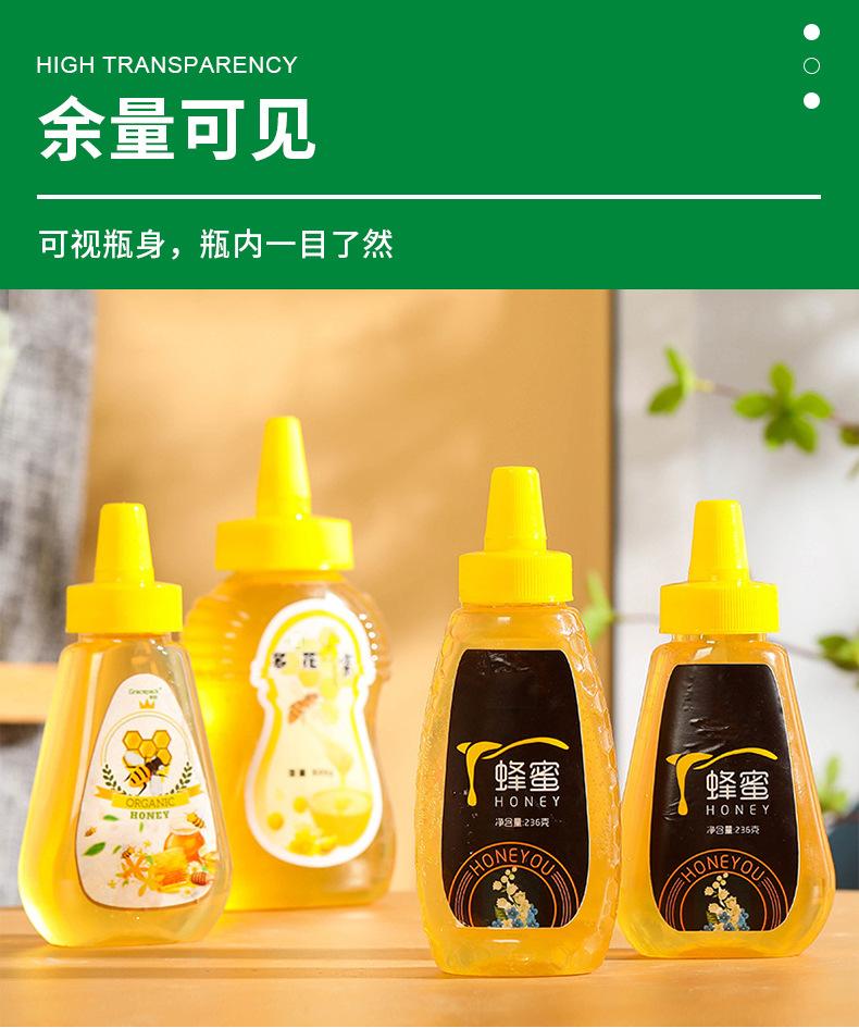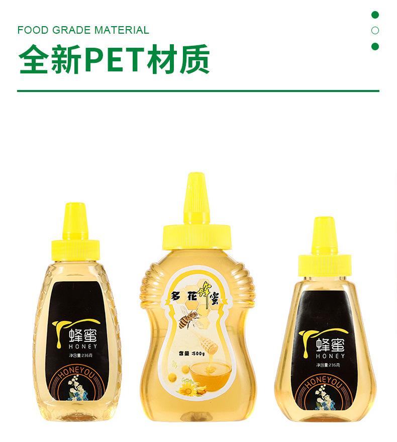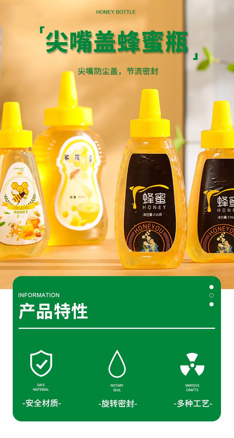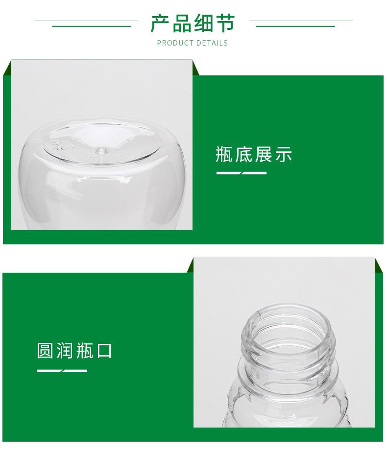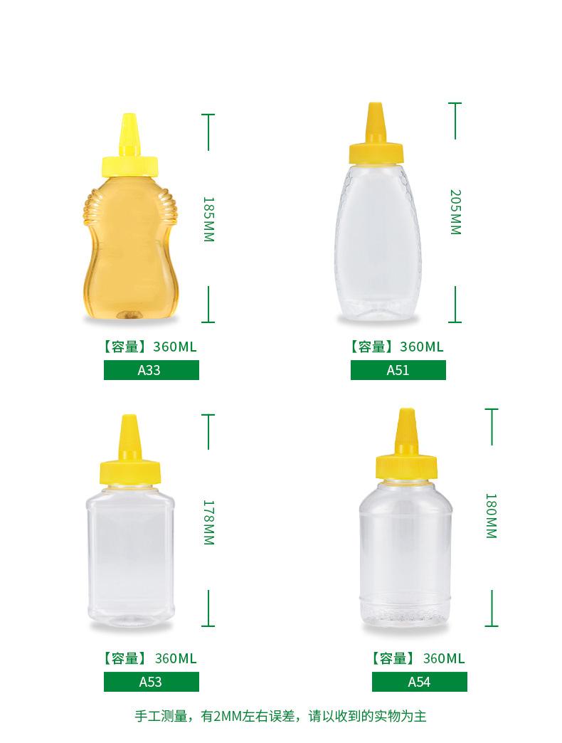 Botella de plástico de grado alimenticio, transparente, de 360 ml, para jarabe de mascotas, sellada, de 1 kg y 500 g, con tapa puntiaguda.