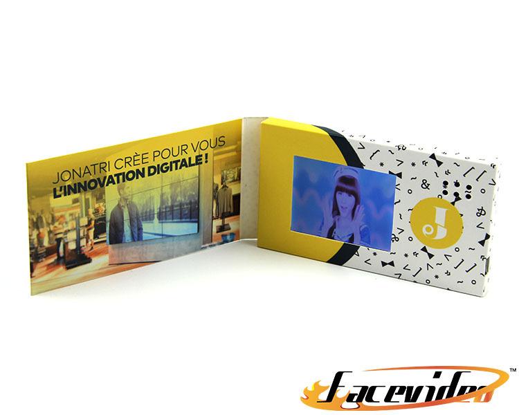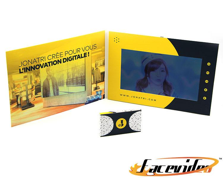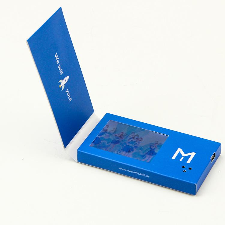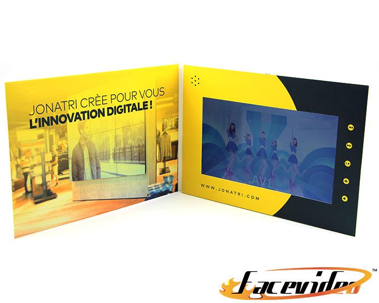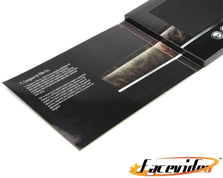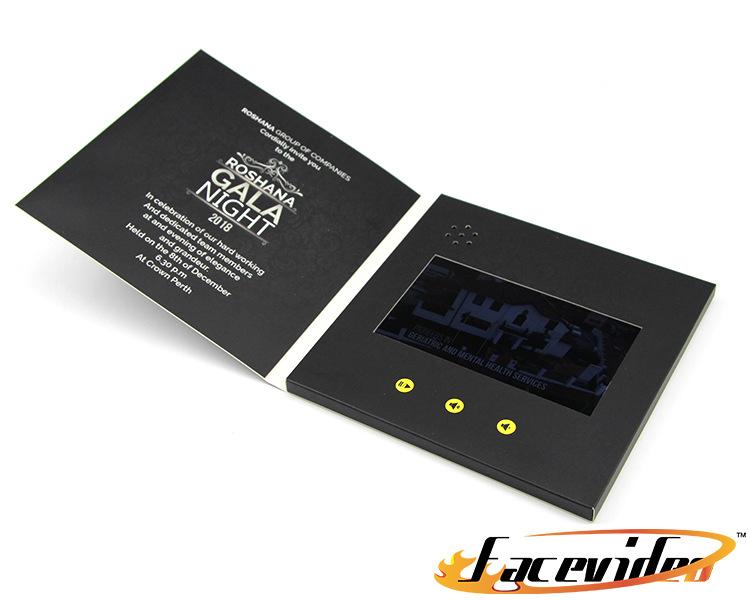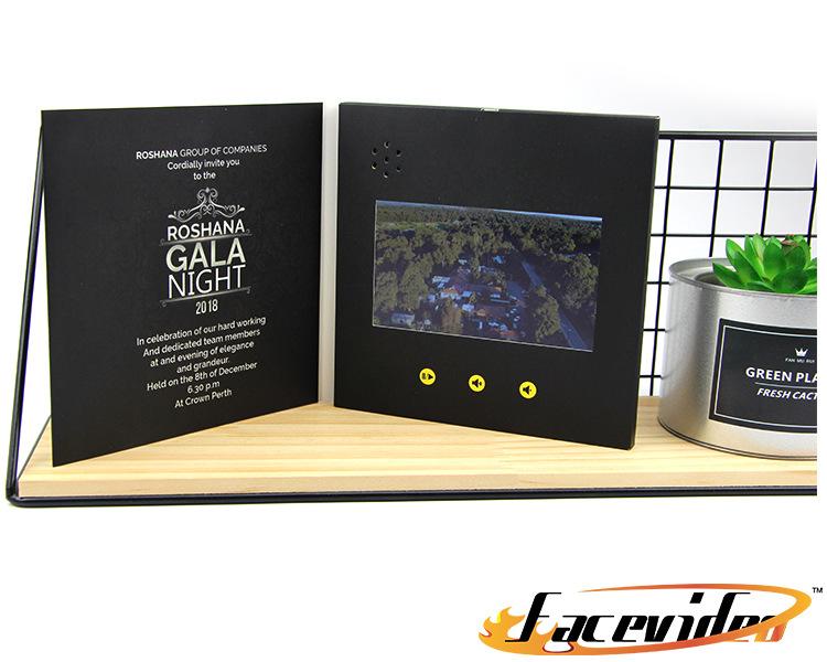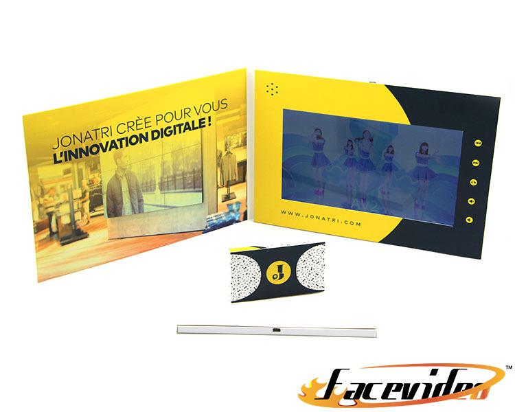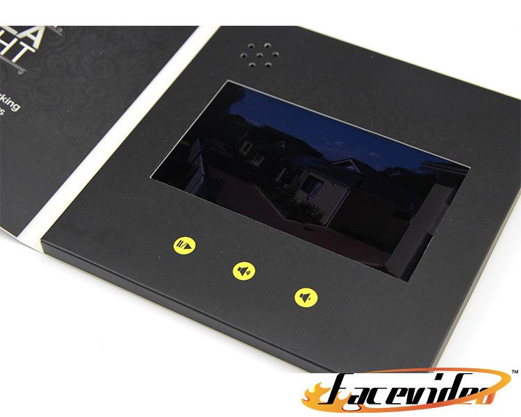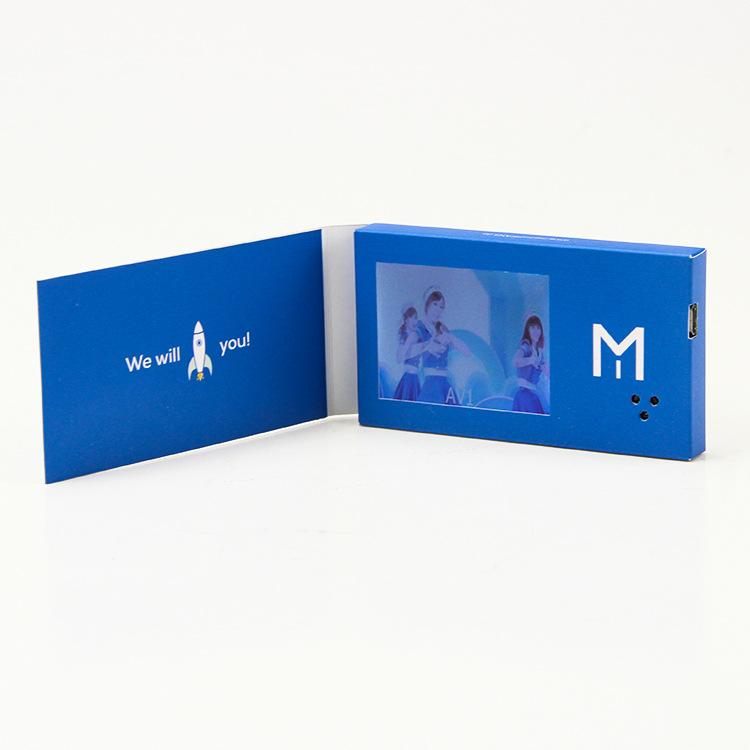 Tarjetas de felicitación en vídeo(Nota: Por su principio de funcionamiento, también se denomina tarjeta de felicitación electrónica). La tarjeta de felicitación de video es un nuevo producto que combina una tarjeta de felicitación tradicional con un reproductor de video MP4. Su objetivo es añadir un reproductor de video LCD a la tarjeta de felicitación tradicional, lo que le permite tener las funciones de una tarjeta de felicitación tradicional y reproducir imágenes o videos.