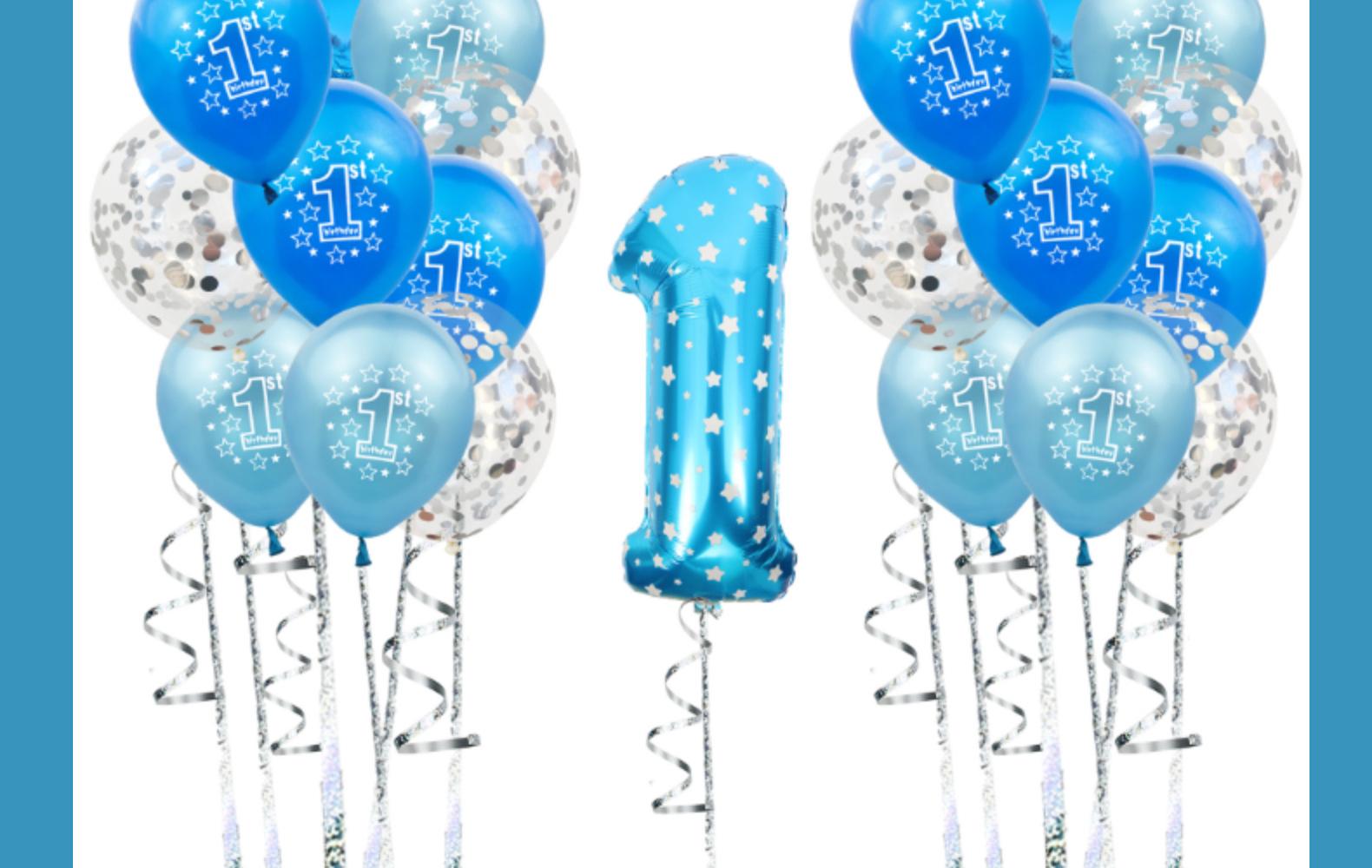Globo digital de aluminio de 32 pulgadas para bebé de 1 año niño niña fiesta de cumpleaños confeti paquete combinado