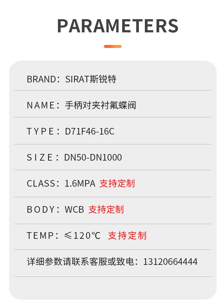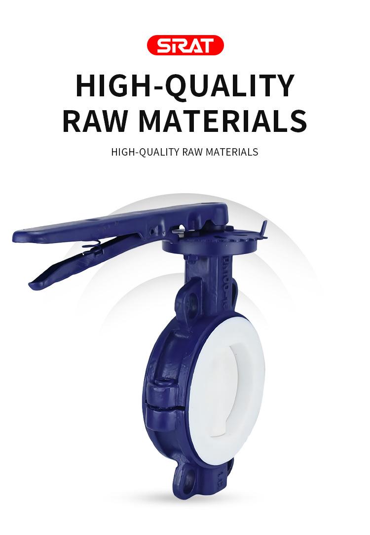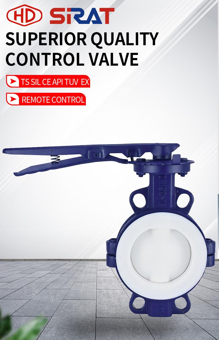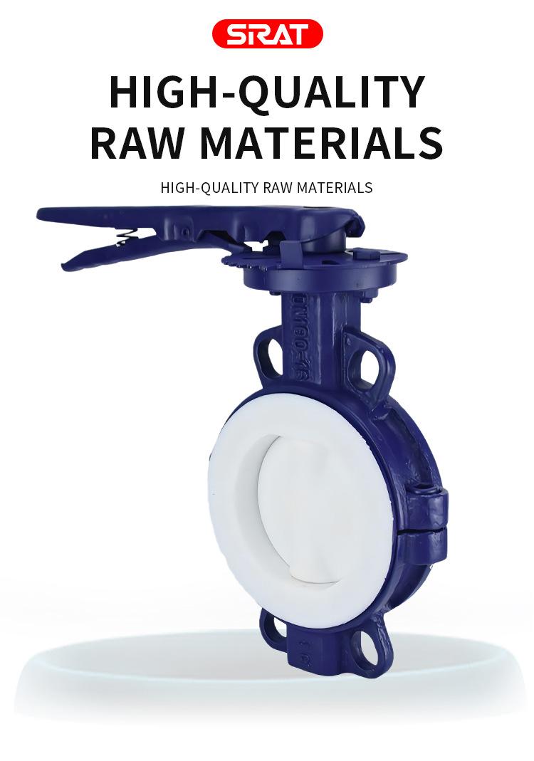 Válvula de mariposa manual con manija tipo wafer de PTFE resistente a ácidos y álcalis D71F46-16C DN50 65 80 100 150