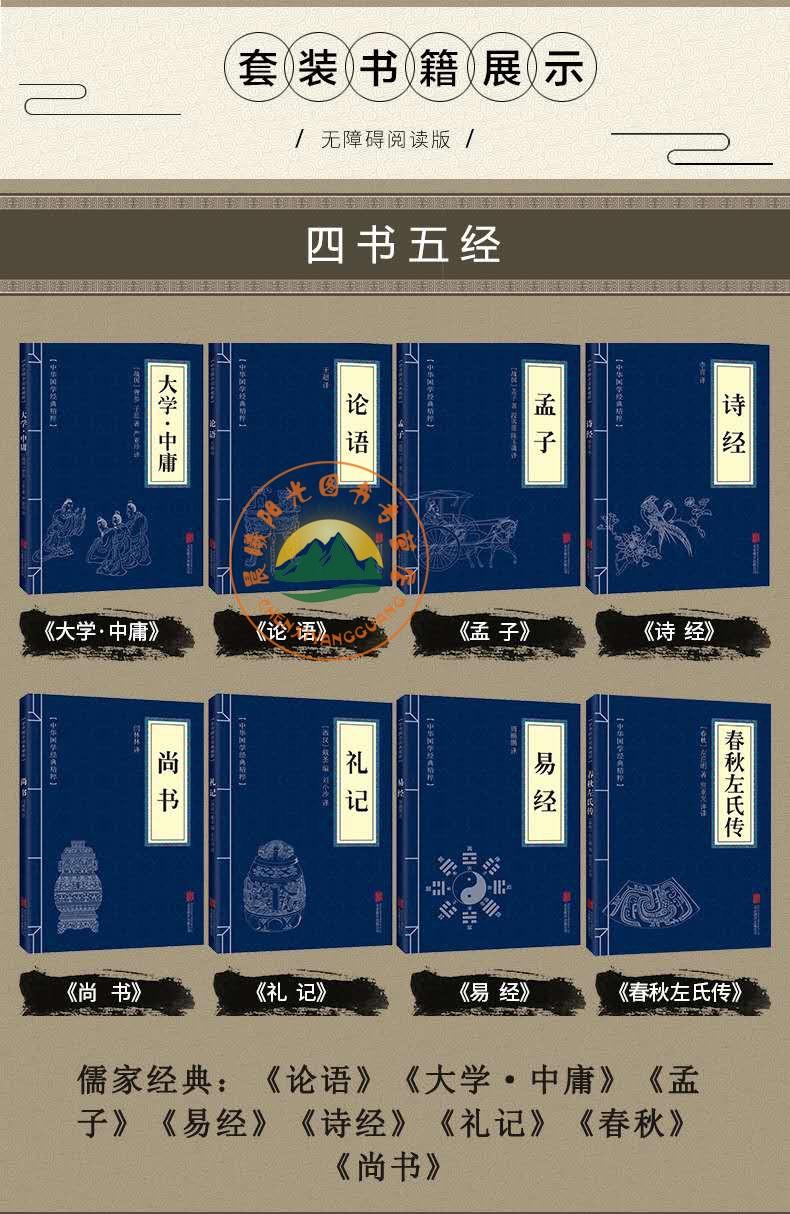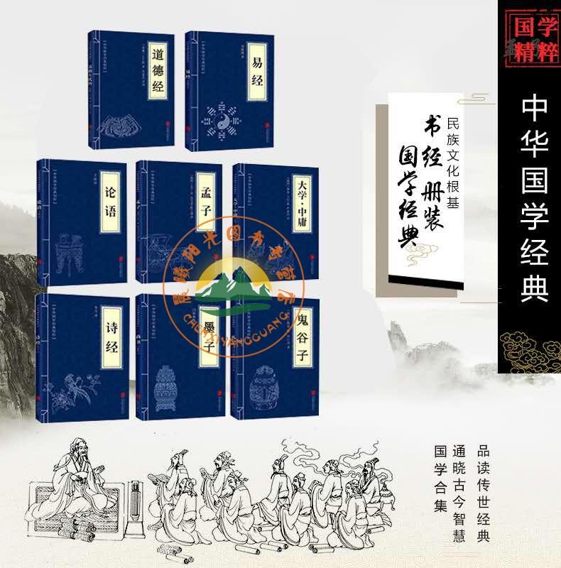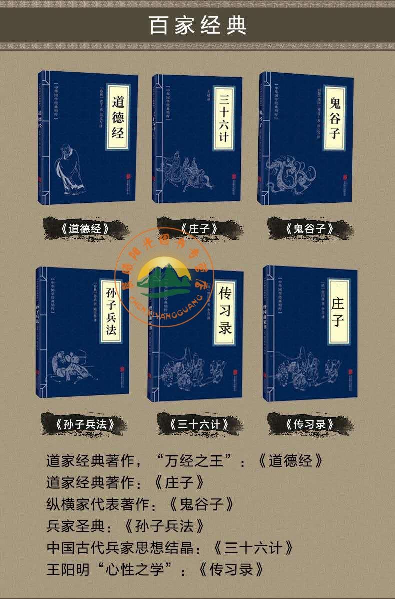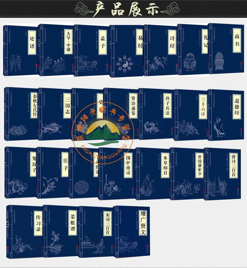 Un conjunto completo de 25 clásicos chinos que incluyen las Analectas de Confucio, el Libro de las Odas, el Tao Te Ching, Guiguzi y El Arte de la Guerra de Sun Tzu
