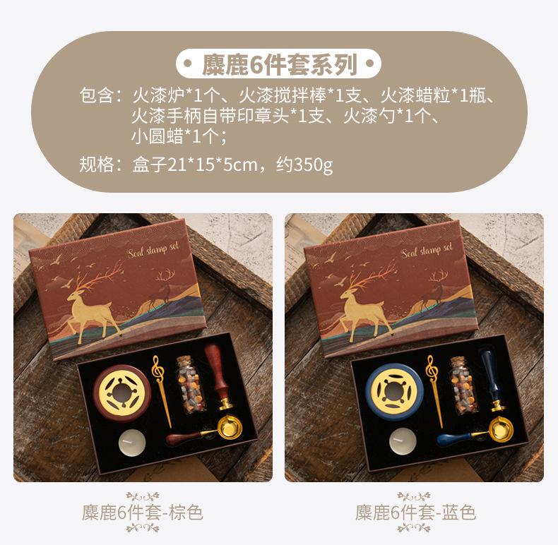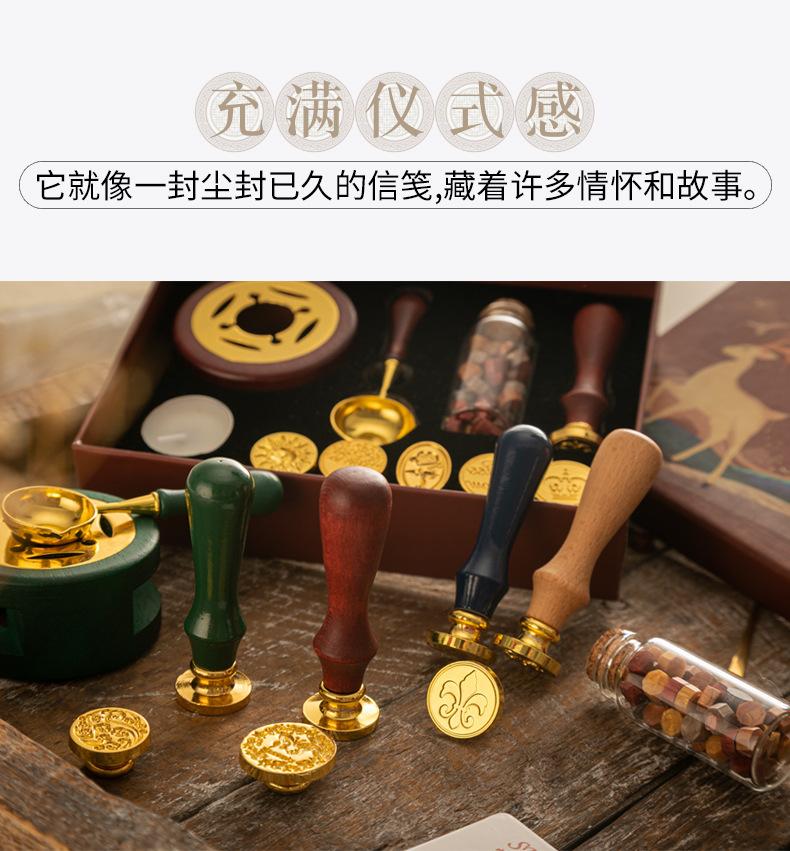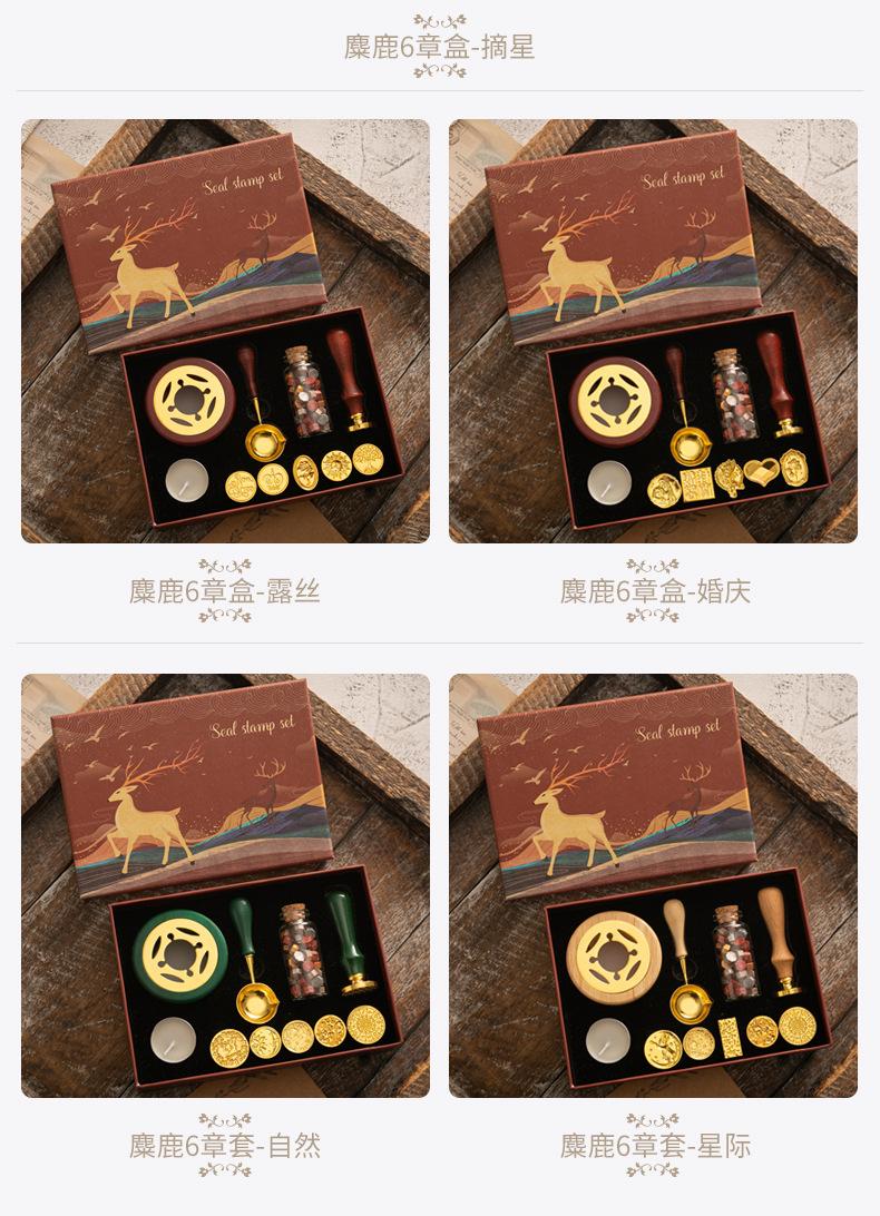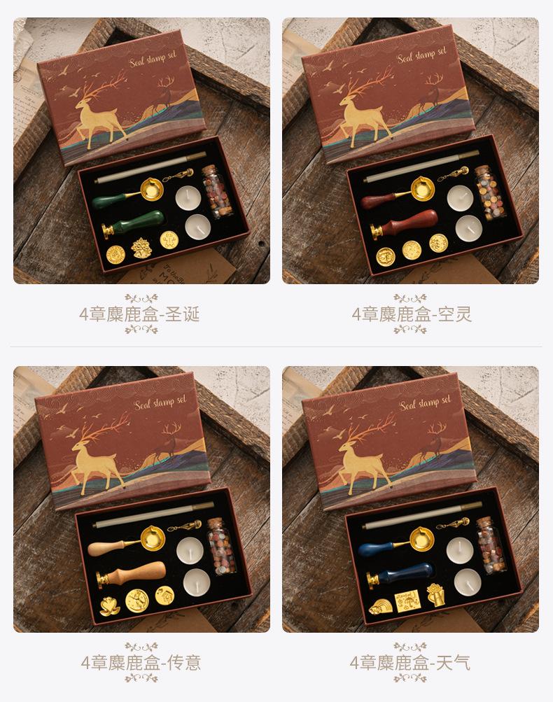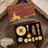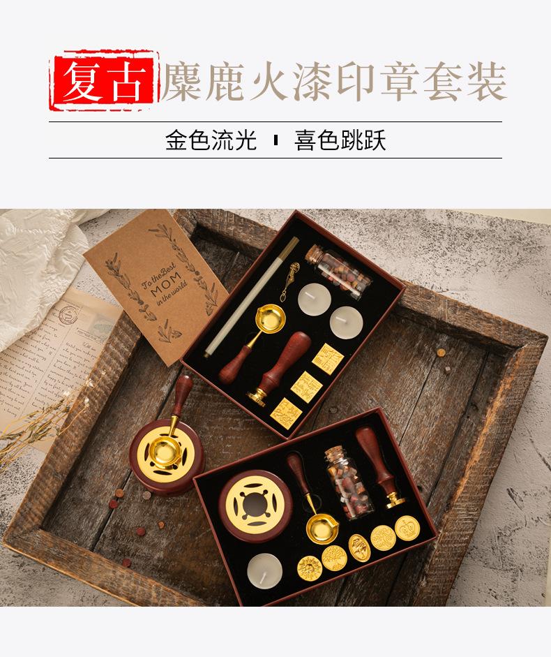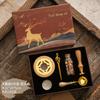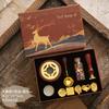 Set de Sello de Pintura de Fuego Caja de Regalo Retro Alce Estufa de Pintura de Fuego Sello Pequeño Redondo Juego de Cera Mango de Madera Juego de Pintura de Fuego
