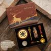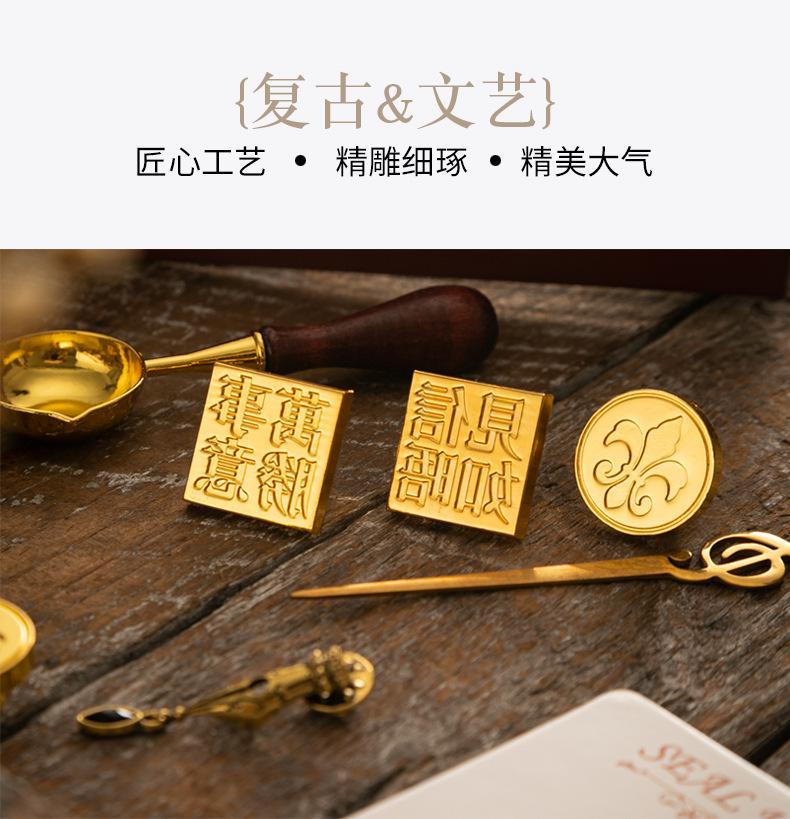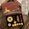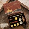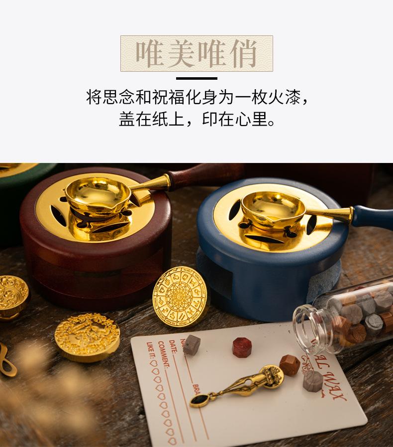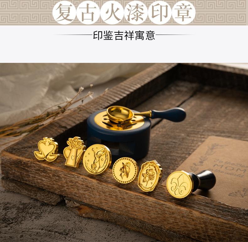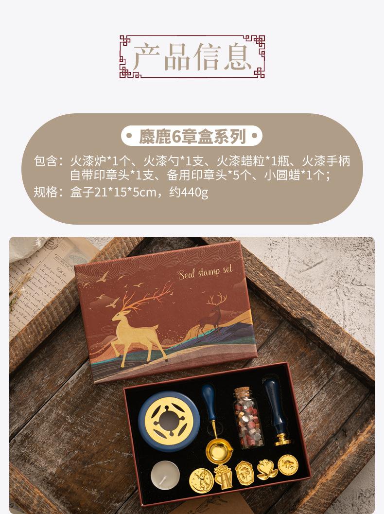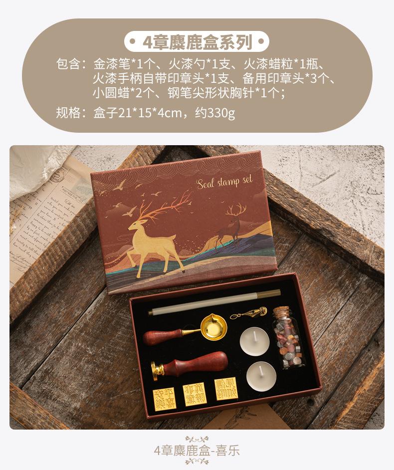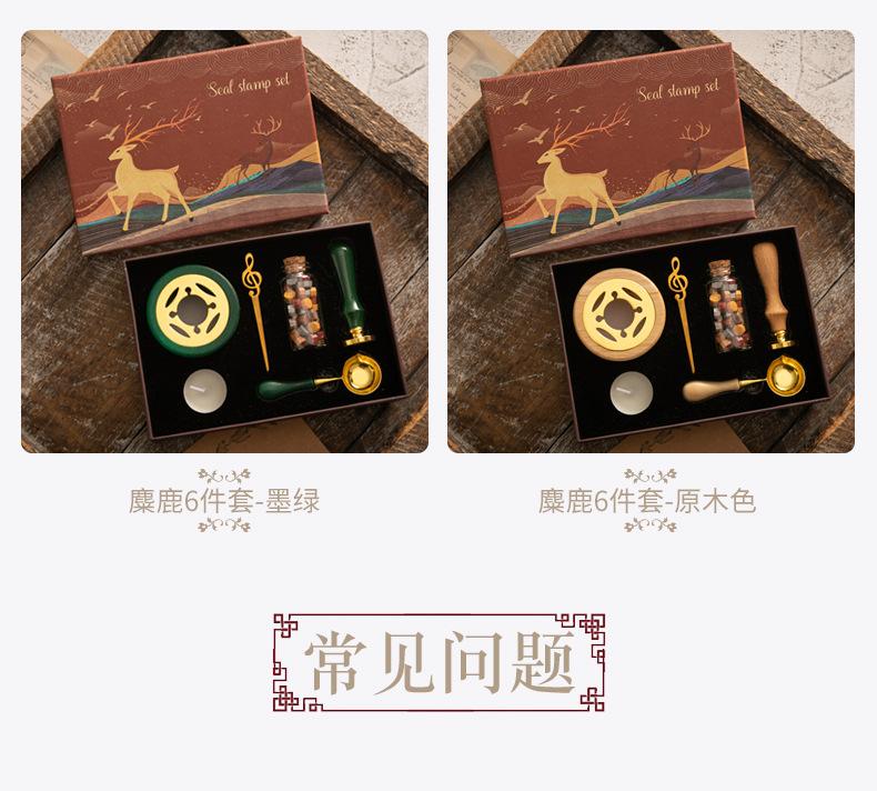 Set de Sello de Pintura de Fuego Caja de Regalo Retro Alce Estufa de Pintura de Fuego Sello Pequeño Redondo Juego de Cera Mango de Madera Juego de Pintura de Fuego