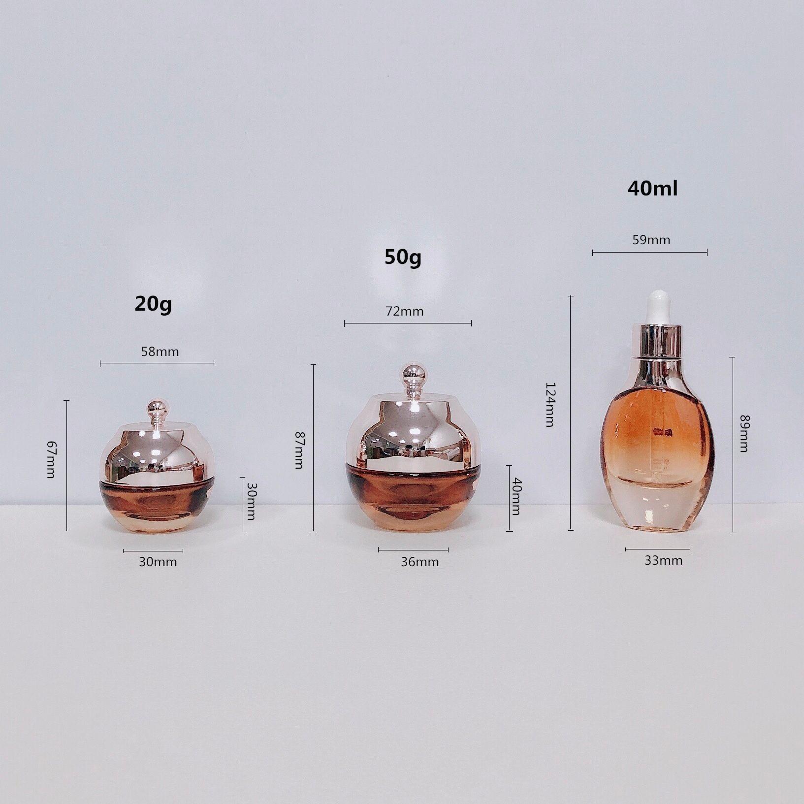 Set de productos para el cuidado de la piel en frascos de vidrio con tapa, frasco de loción de 150 ml, frasco de esencia de base de 40 ml, frasco de aceite esencial, frasco de crema de 50 g.