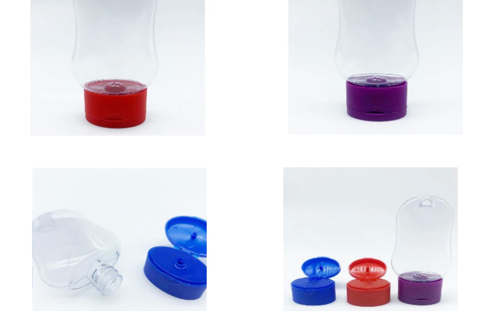 Botella con gancho transparente de 50 ml, botella con pulverizador, botella de plástico de PVC sin desinfectante para manos, botella portátil de gel para viajes