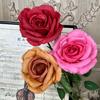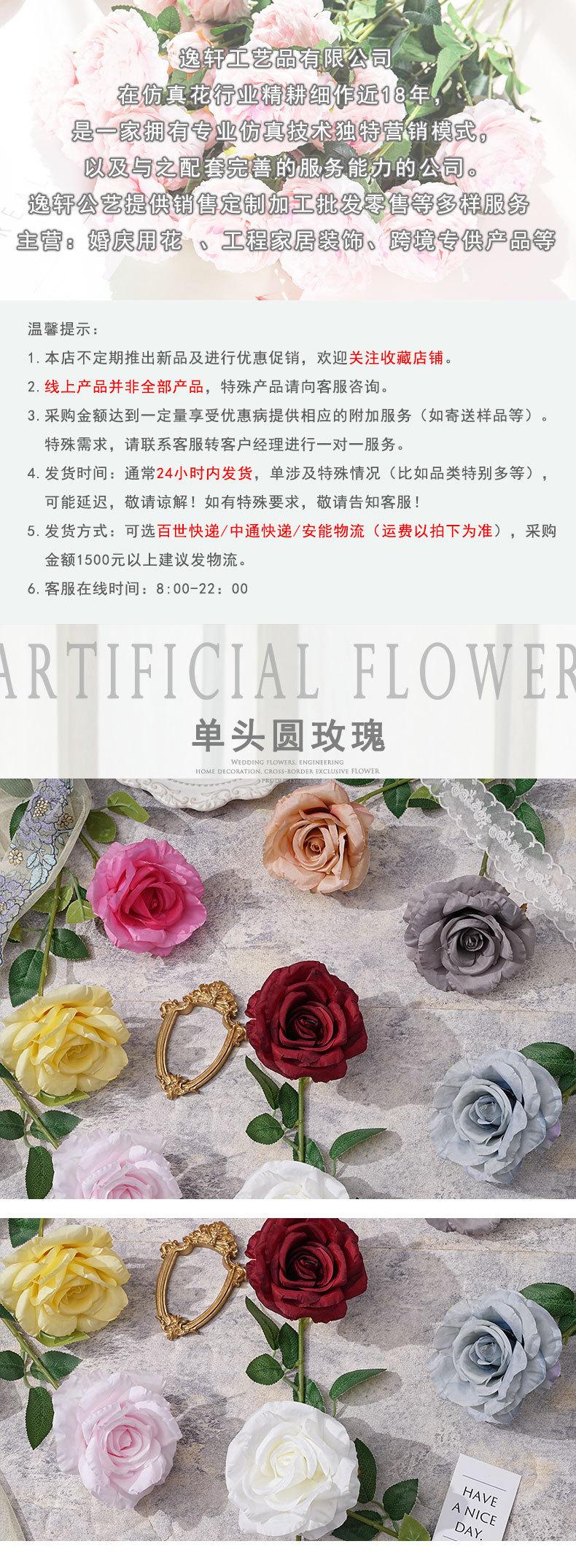 Rosa Redonda de Cabeza Única Simulada, Ramo Artificial de Seda Falsa, Flor de Boda, Adorno de Decoración Terminado para Sala de Estar, Flor Floral de Plástico