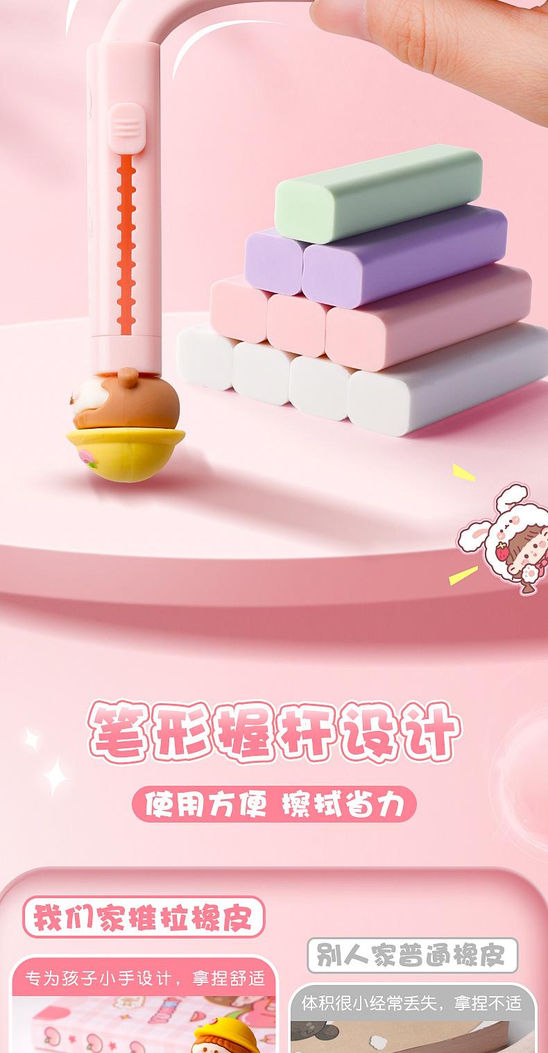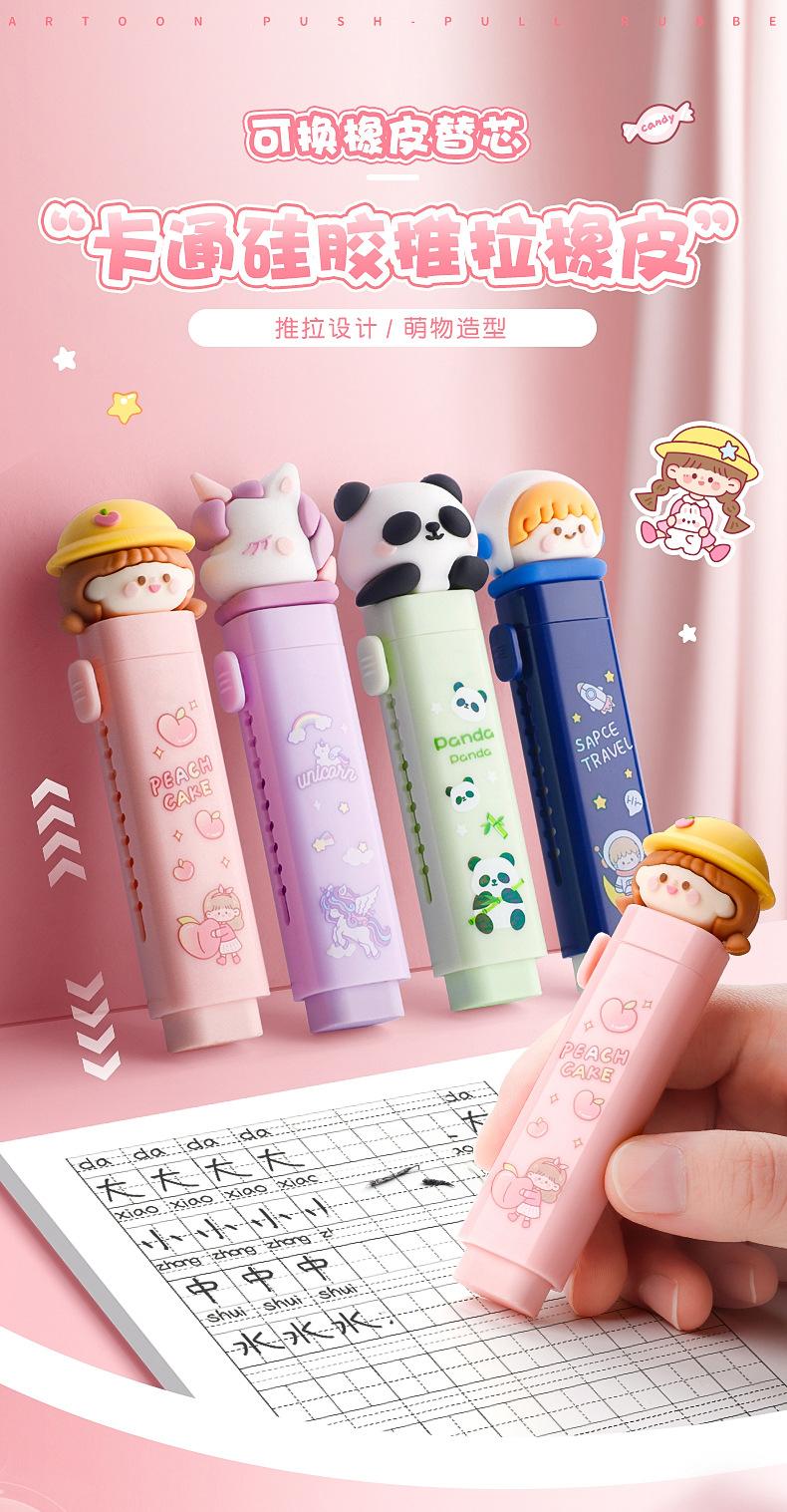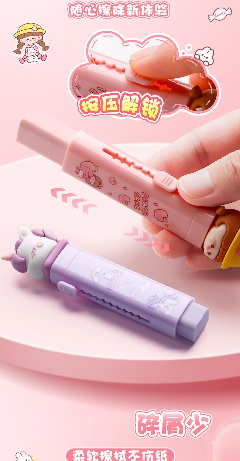 Borrador de empuje y tracción para estudiantes de primaria con menos migas, borrador para estudiantes sin dejar marcas, borrador de dibujos animados creativo para niños, prensa