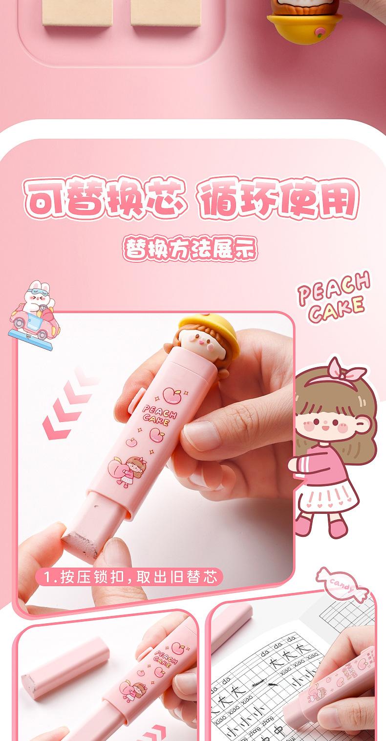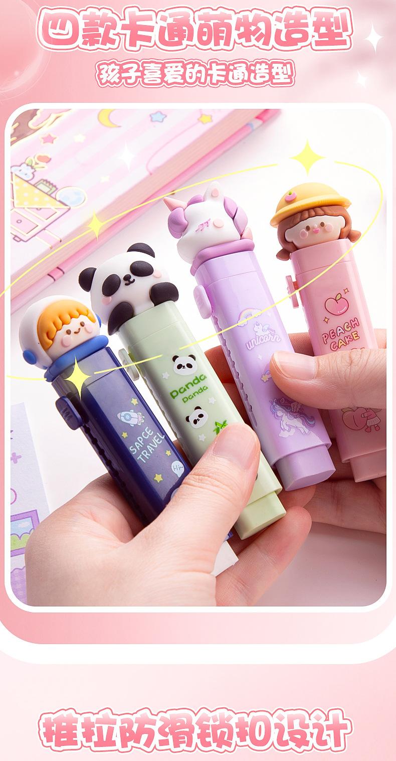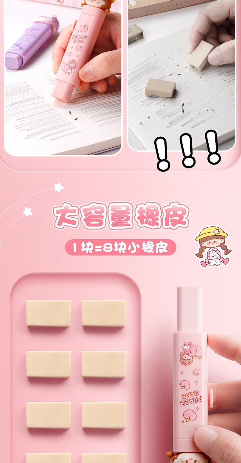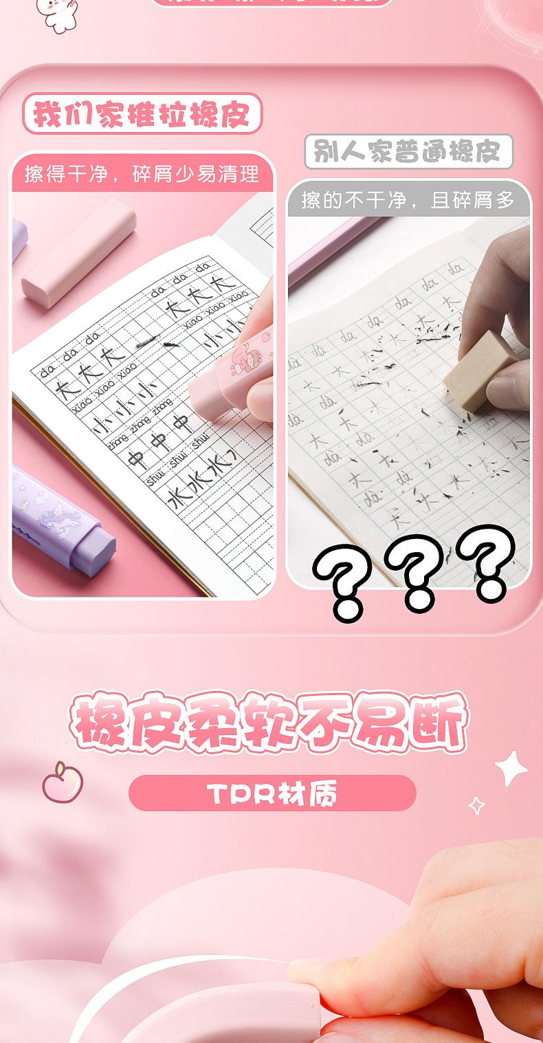 Borrador de empuje y tracción para estudiantes de primaria con menos migas, borrador para estudiantes sin dejar marcas, borrador de dibujos animados creativo para niños, prensa