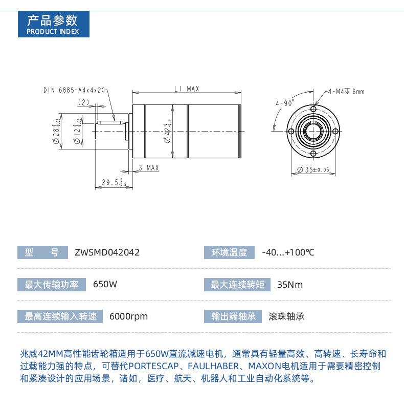 Motor CC con escobillas de alto rendimiento de 42 mm Engranaje planetario de alto par Sistema de accionamiento del timón de aeronave Motor sin núcleo