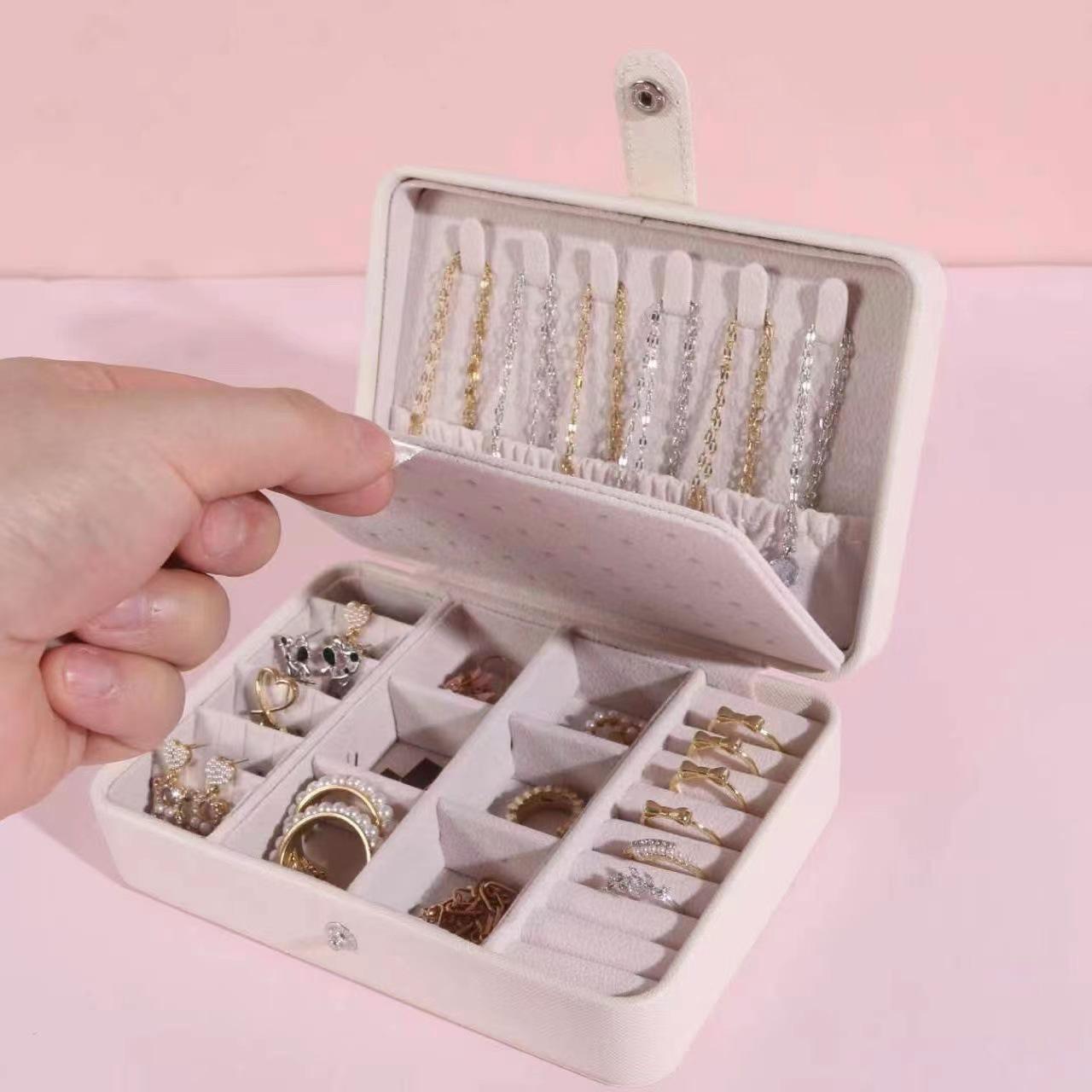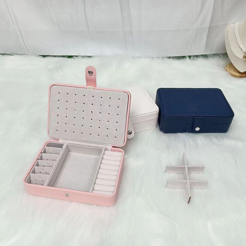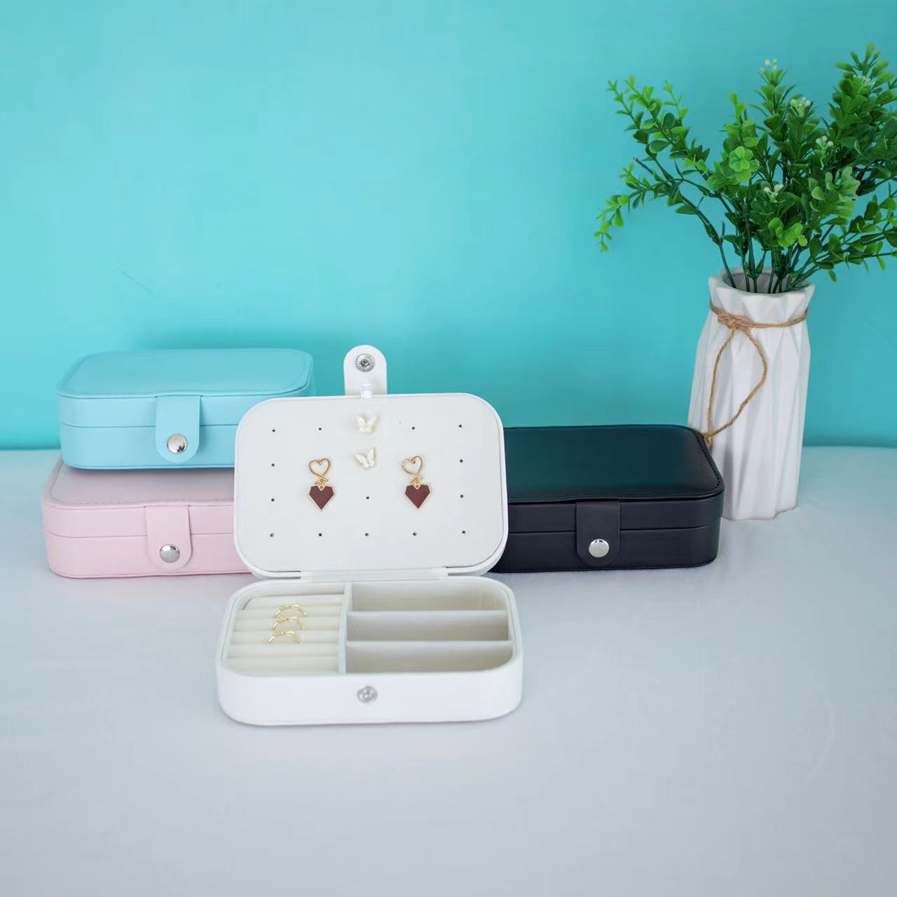 Caja de almacenamiento de doble capa de cuero PU, caja de almacenamiento para anillos y pendientes de viaje transfronterizos, caja de joyería, caja de joyería de doble capa