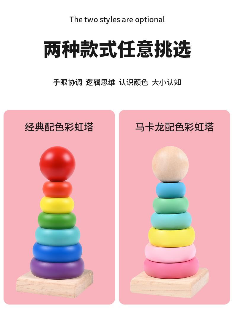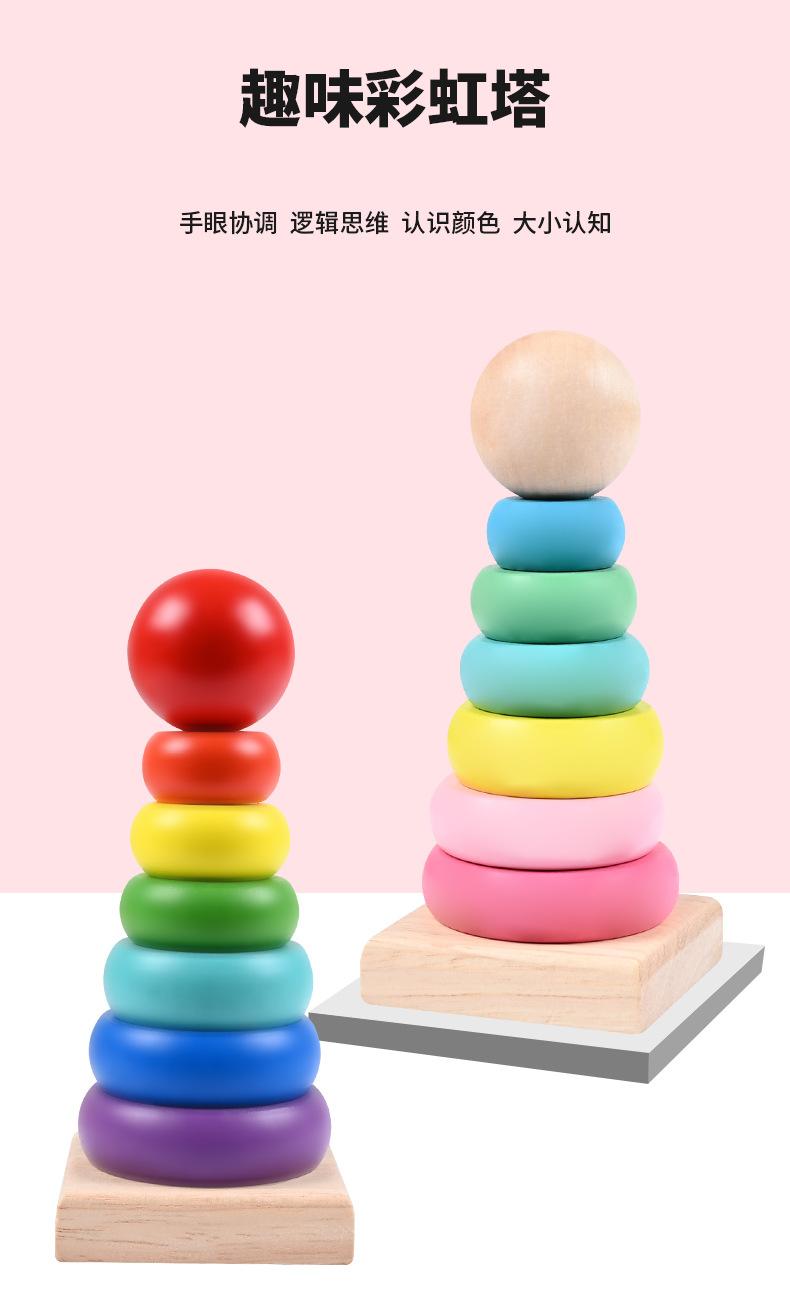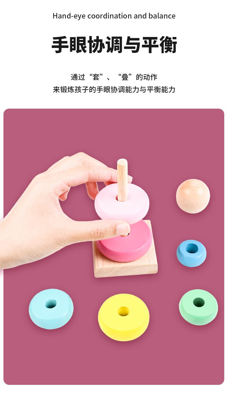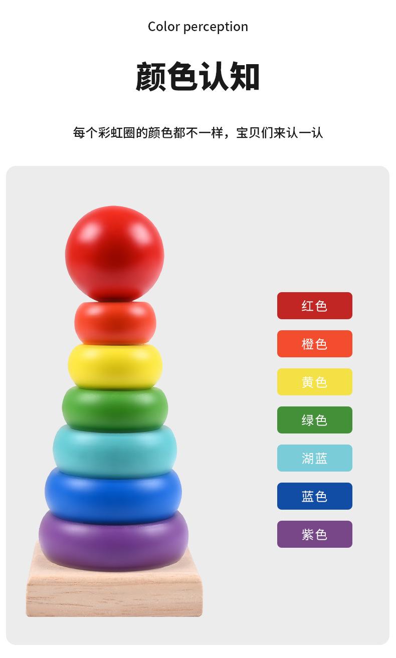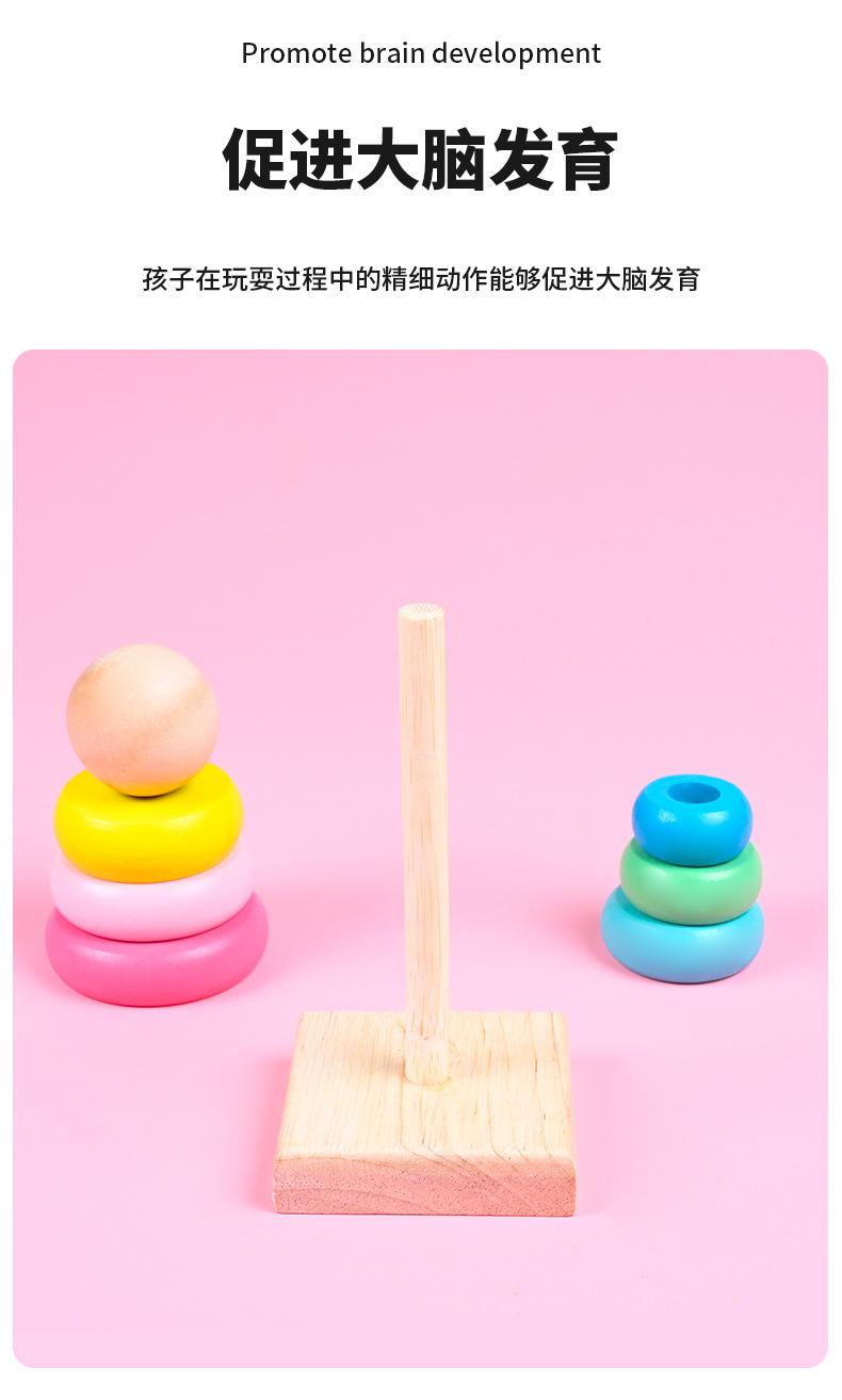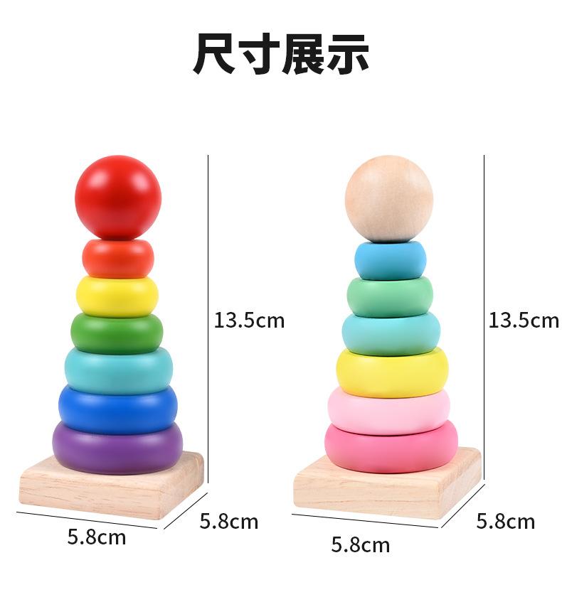 Rompecabezas de Madera para la Educación Temprana de Niños Desarrollo Inteligencia Torre Arcoíris Apilamiento Alto Apilamiento Círculo Bloque de Construcción Juguete Torre de Hanói