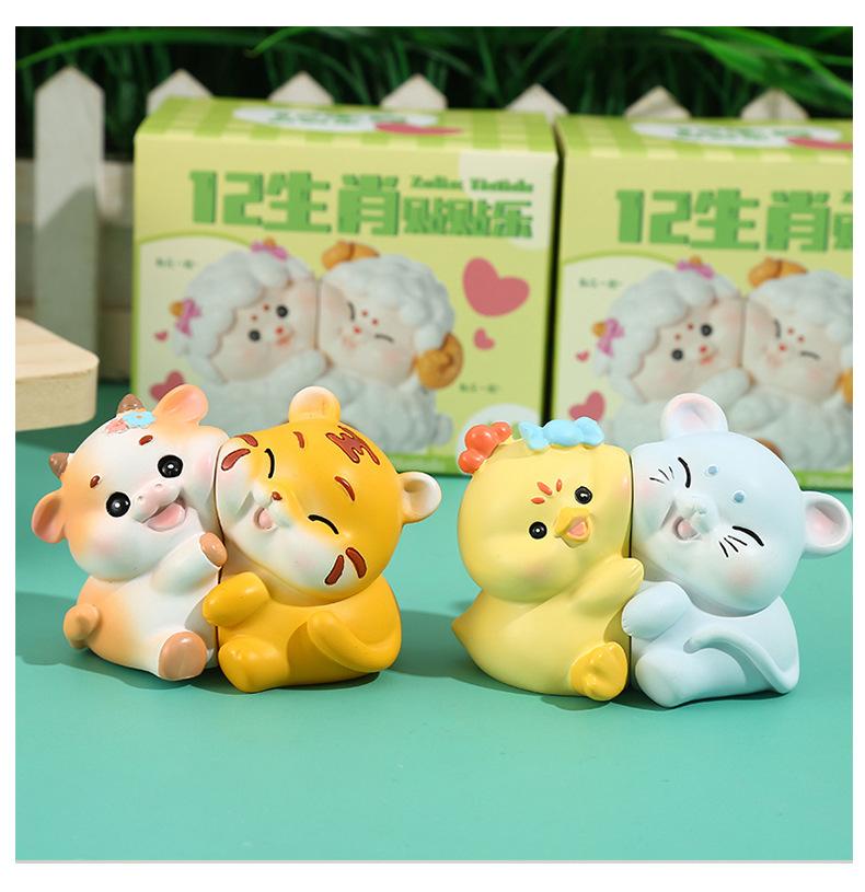 Nuevas y creativas 12 pegatinas del zodiaco, caja ciega musical, decoración de escritorio, juego de moda, muñeca hecha a mano, artesanía de resina, regalo para pareja