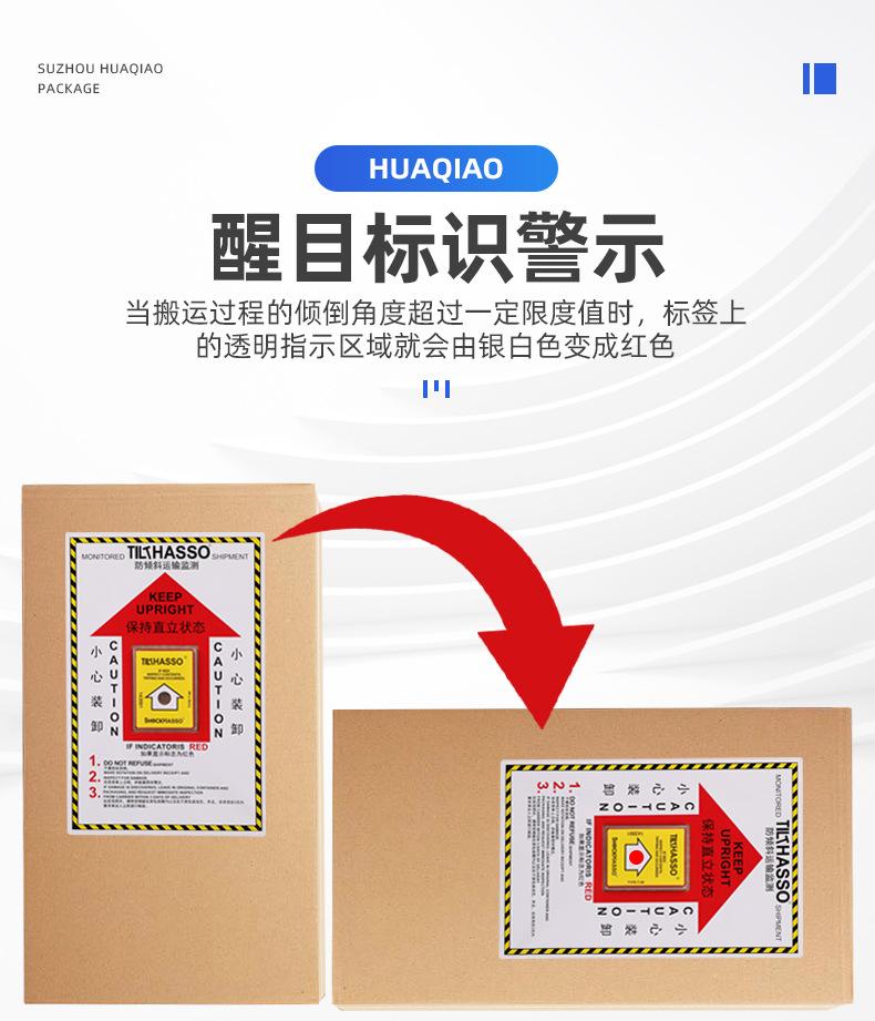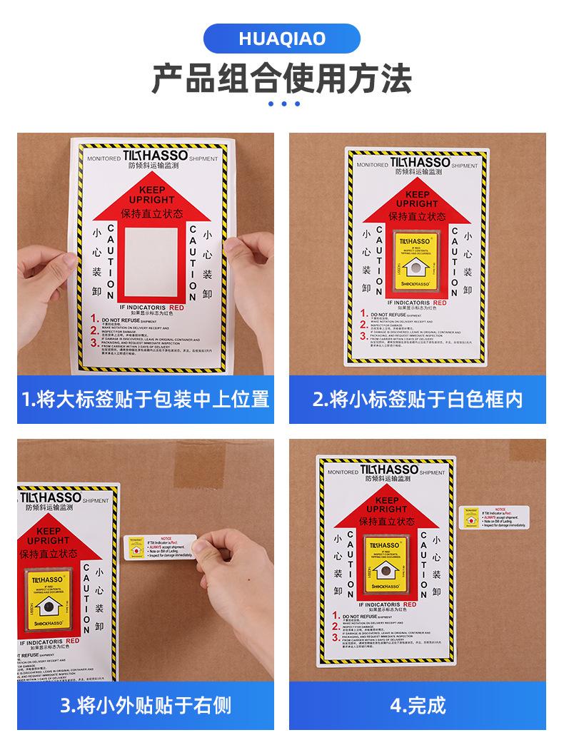 Etiqueta de Fábrica Antichoque y Antivuelco Chino e Inglés Antivuelco y Antiimpacto Pantalla Monitoreo de Transporte Logístico Etiqueta Anticolisión