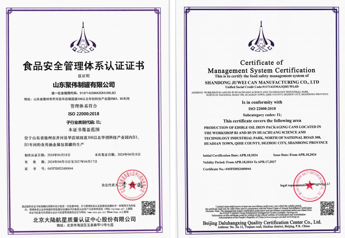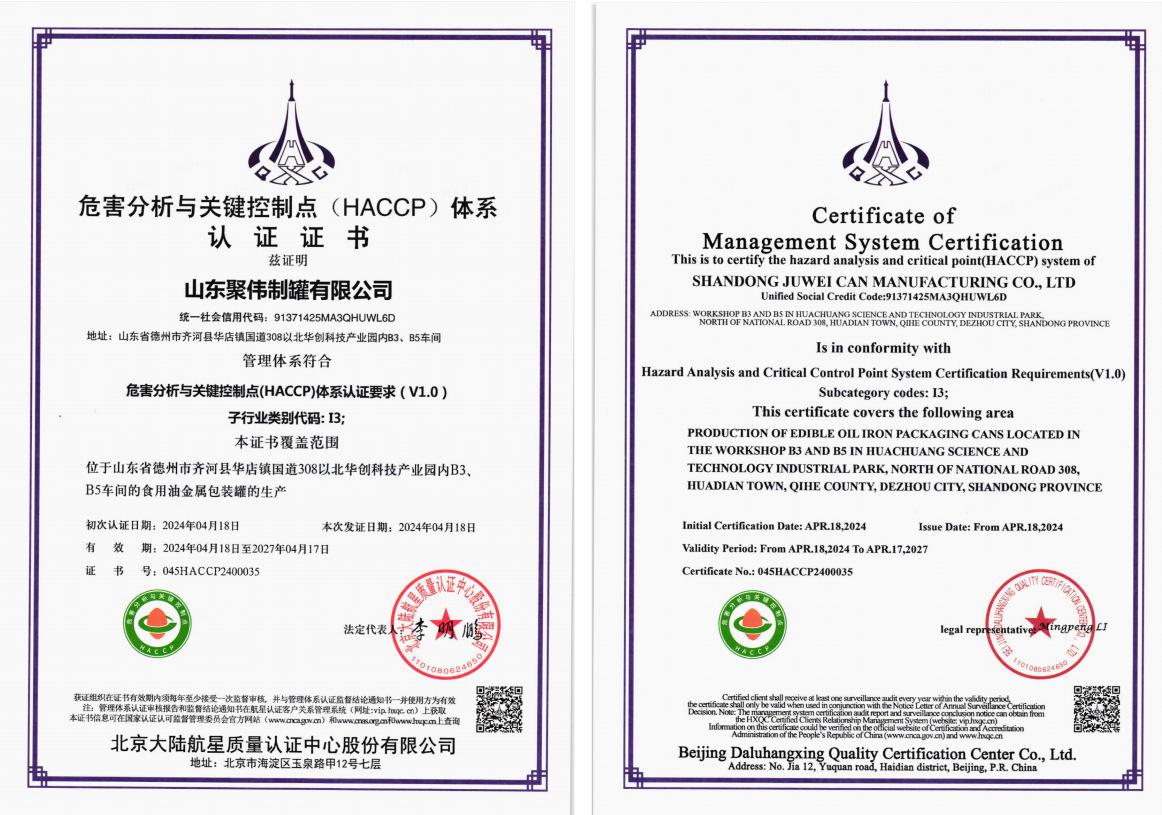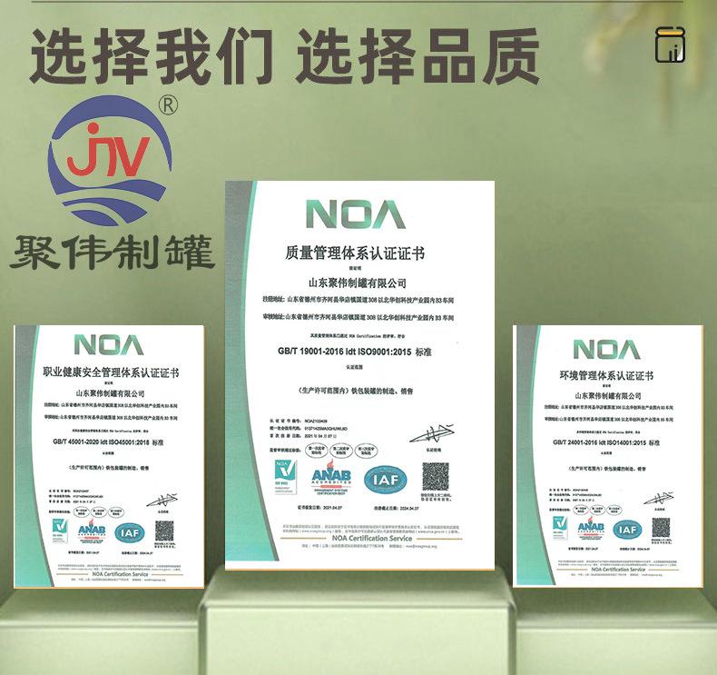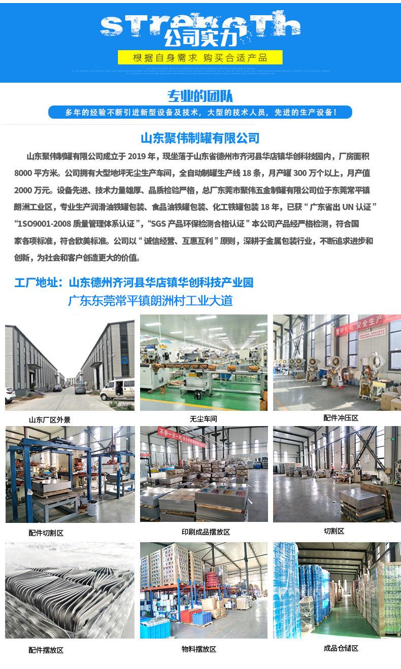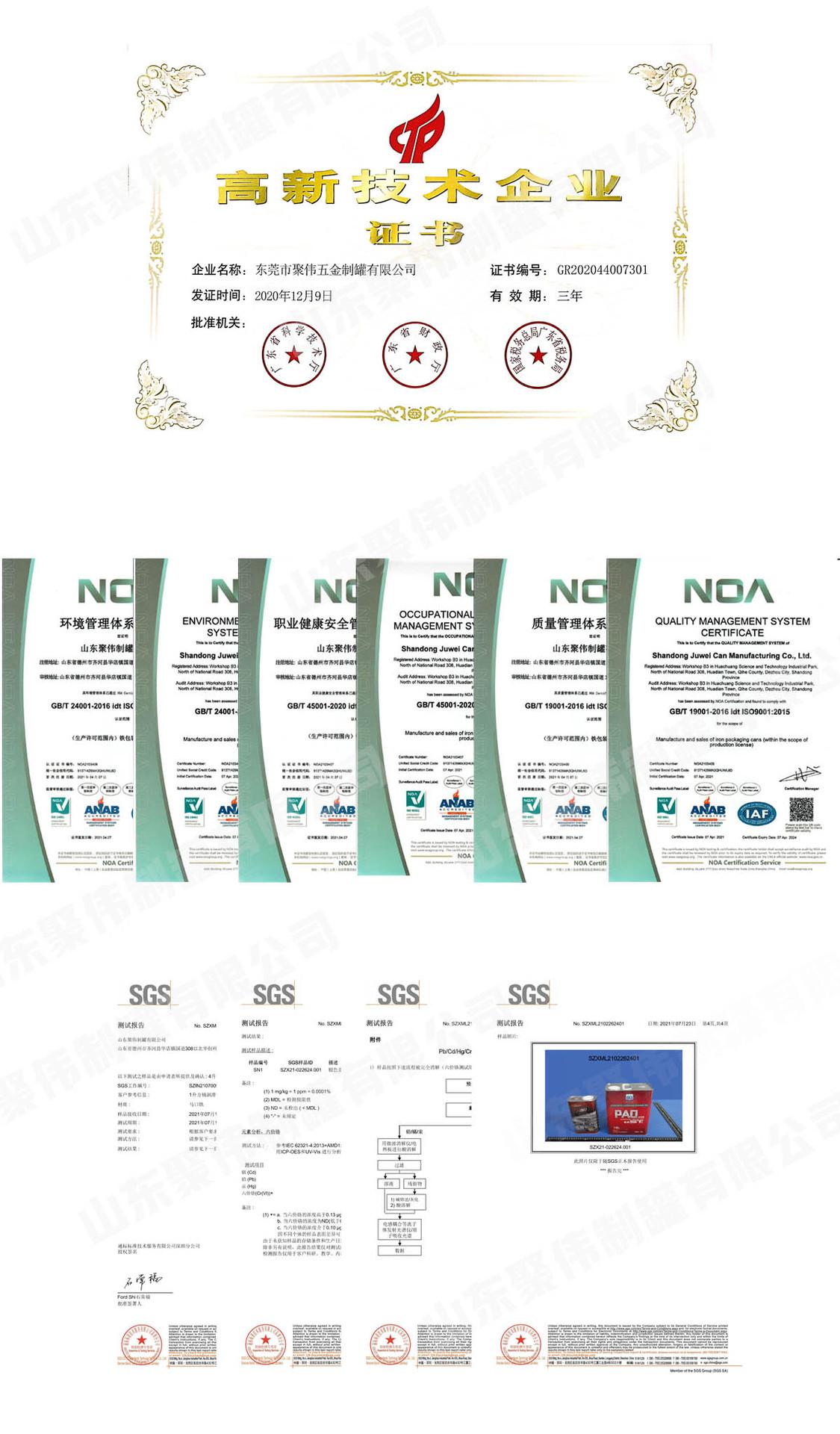 Juwei Can Manufacturing Co., Ltd. es una empresa con 21 años de experiencia en la fabricación de latas, especializada en la producción de latas para aceite comestible, envases de alimentos y aceites lubricantes. Cuenta con una gama completa de moldes, especificaciones de producto rigurosas, numerosos clientes colaboradores y un servicio de seguimiento garantizado.