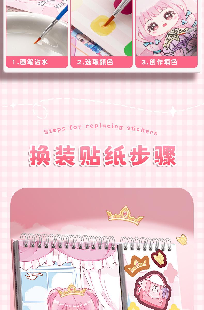 Libro de Vestir Kaba Bear para Niñas DIY Lindo Libro de Pintura de Maquillaje de Princesa Libro de Dibujo con Pegatinas