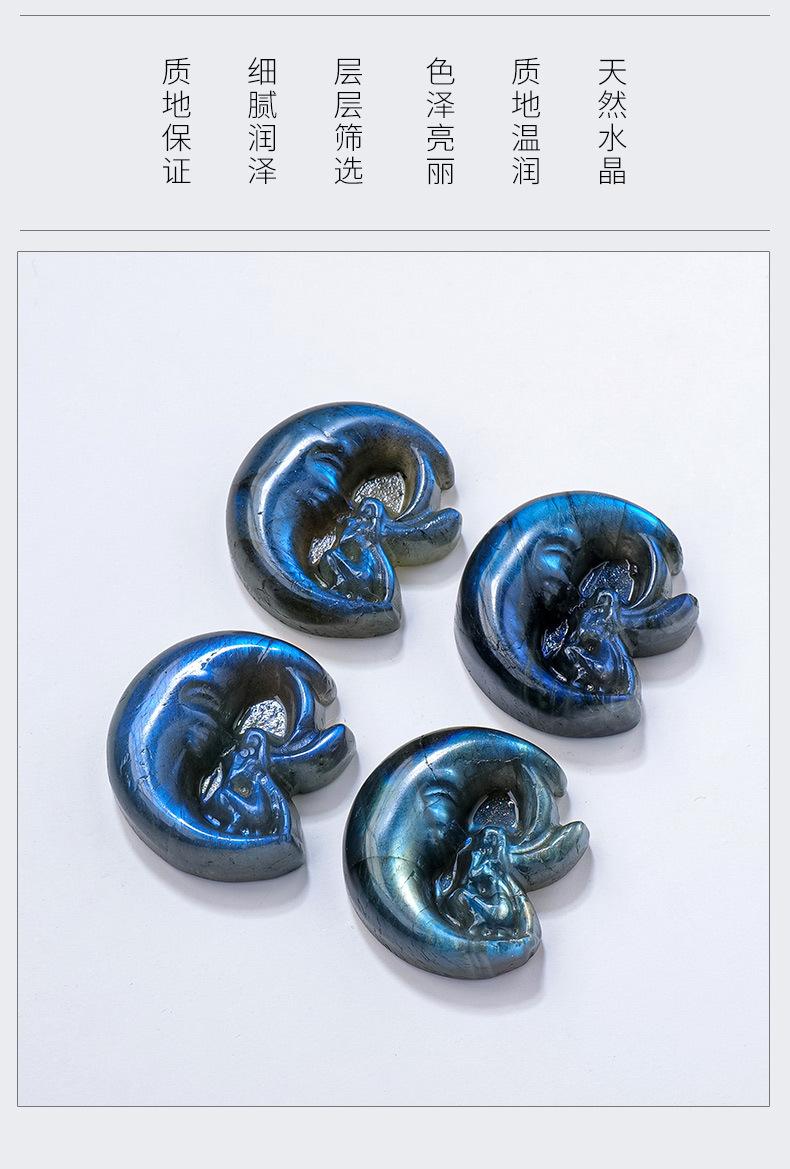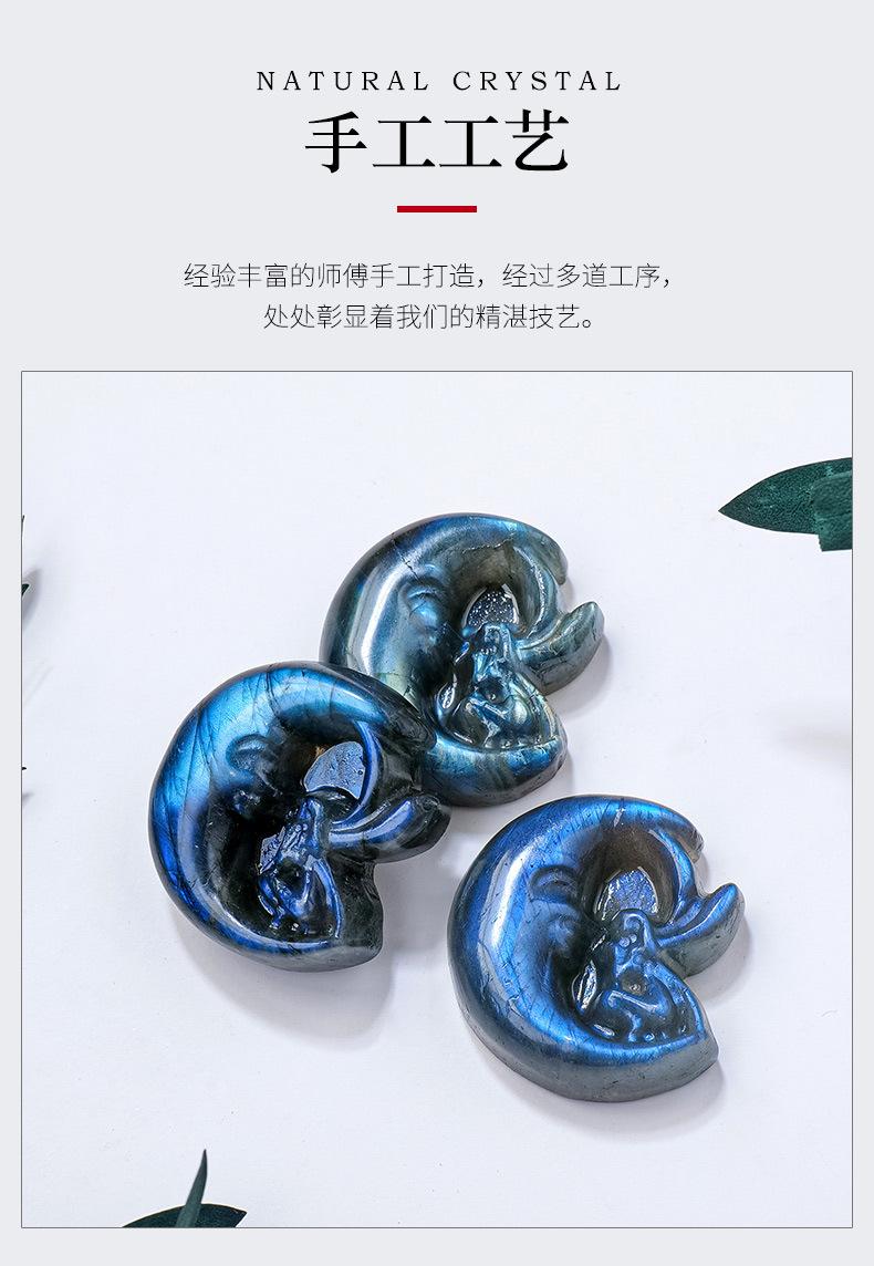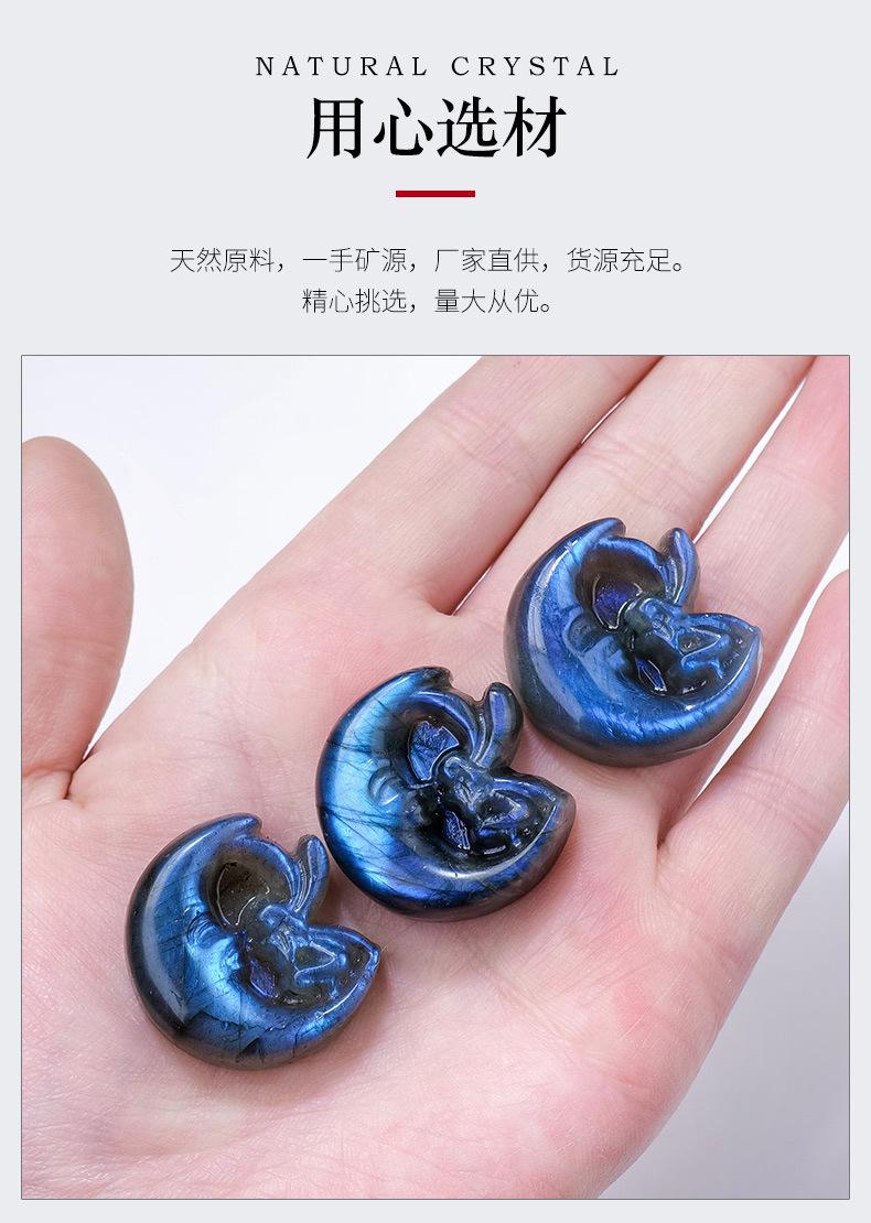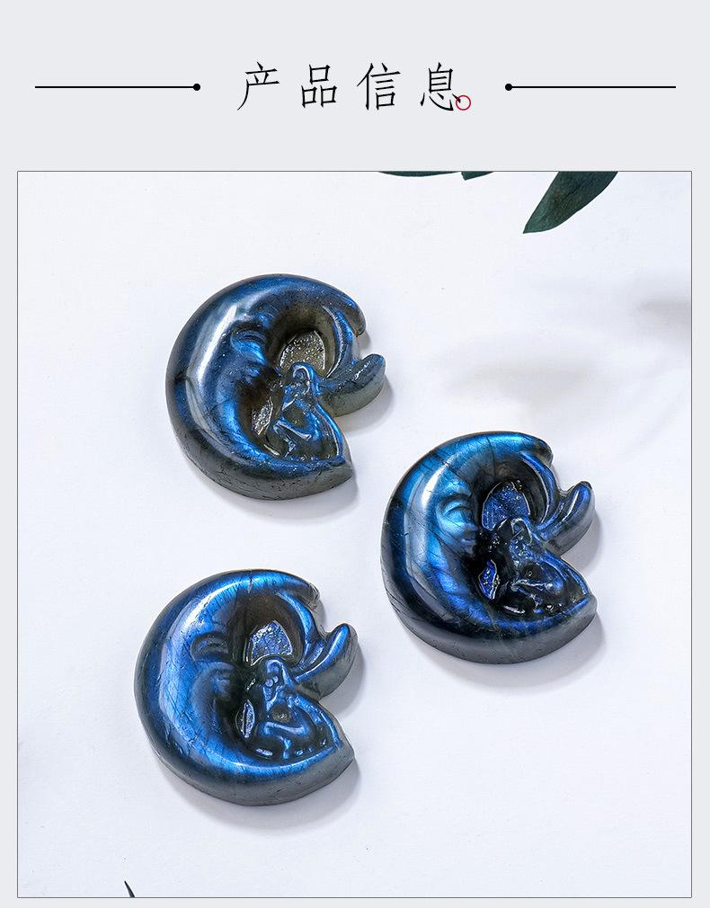 Compra Labradorita de cristal natural azul claro, talla de hada lunar, piedra original, etiqueta mineral, cristal pulido, artesanías, adornos al por mayor en Joom.pro