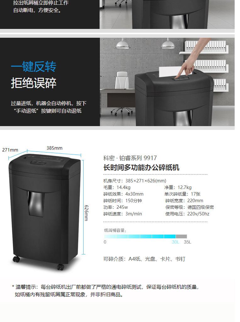 Trituradora de papel KMI 9917 para oficina comercial, alta confidencialidad, larga duración, gran rendimiento, trituradora de discos para tarjetas de archivo rotas