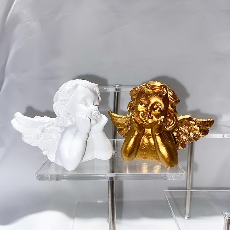Adornos de Escritorio de Ángel de Agallas Doradas de Lujo Ligero Estilo Europeo Accesorios Hechos a Mano DIY Estatua de Resina Adornos Pequeños Regalo
