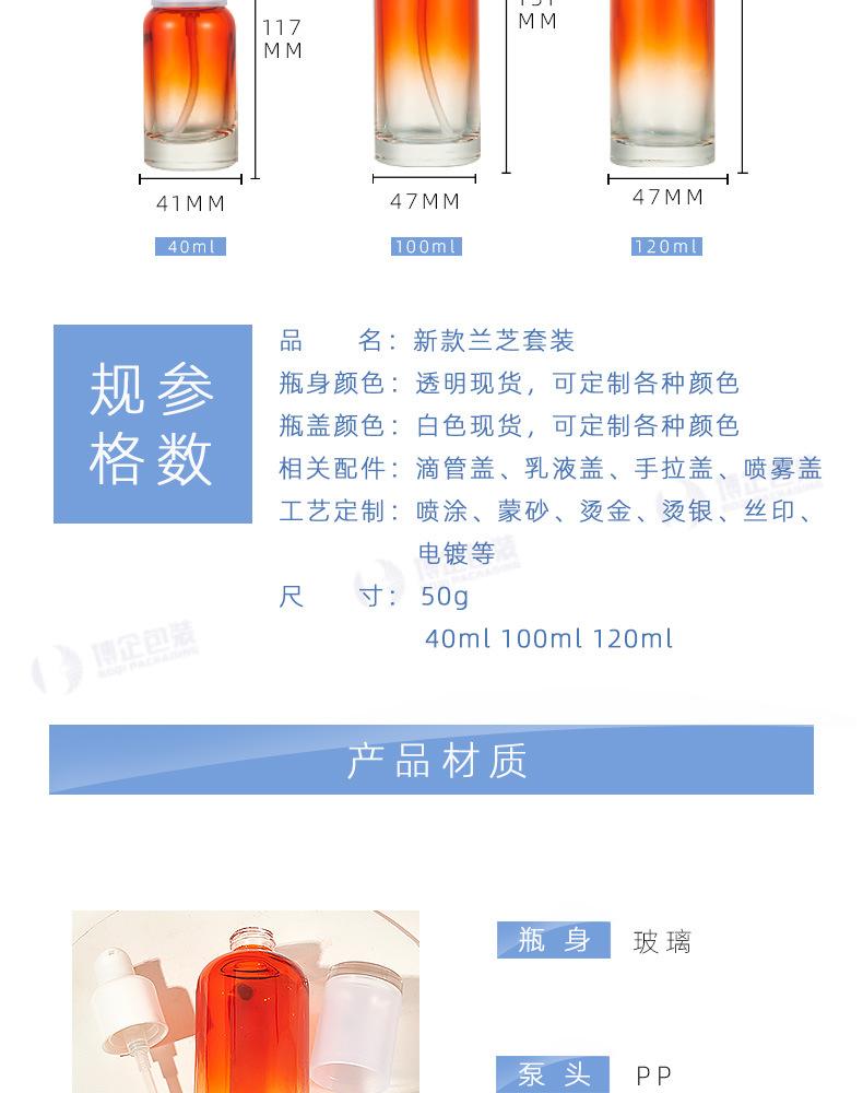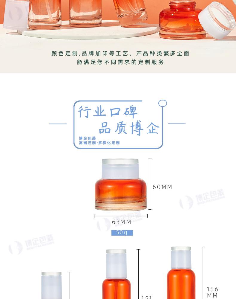 Nuevo set de cosméticos de vidrio 30g50g frasco para crema 40ml100ml frasco para loción subenvasado empaque Boqi