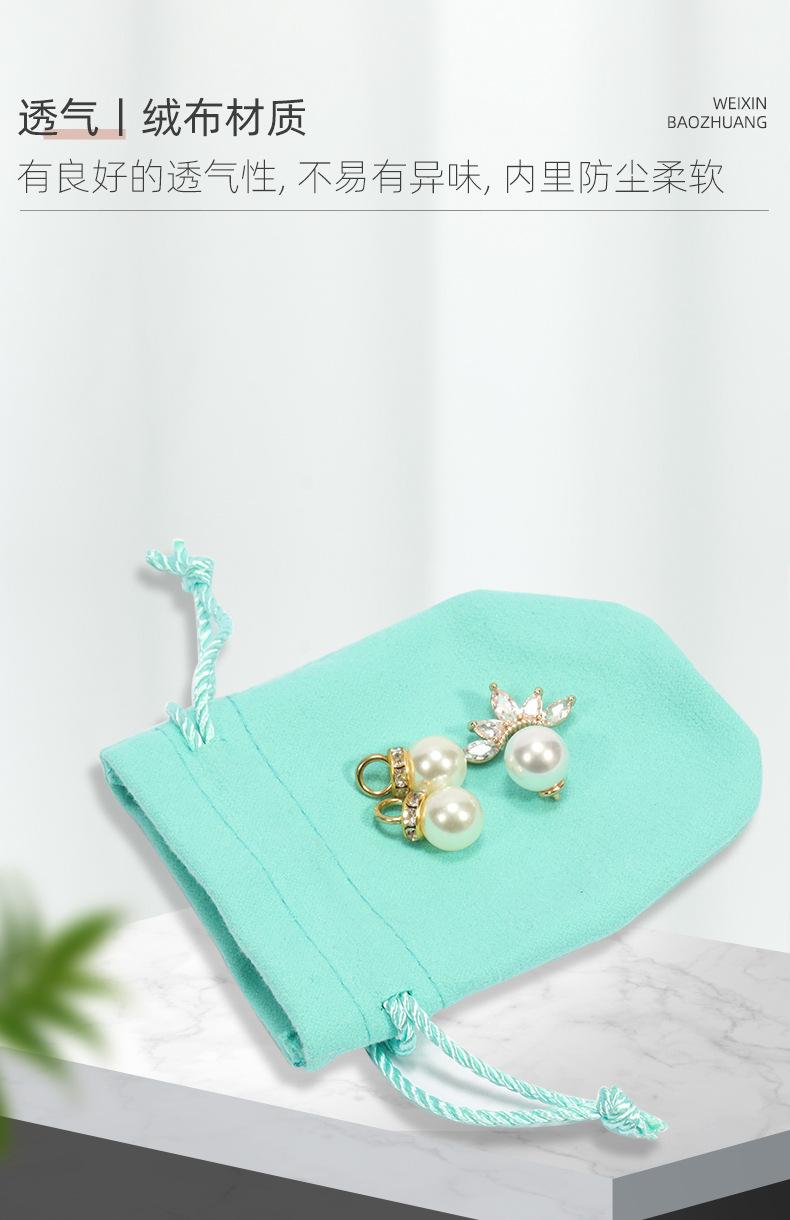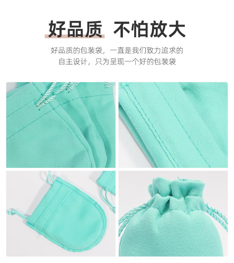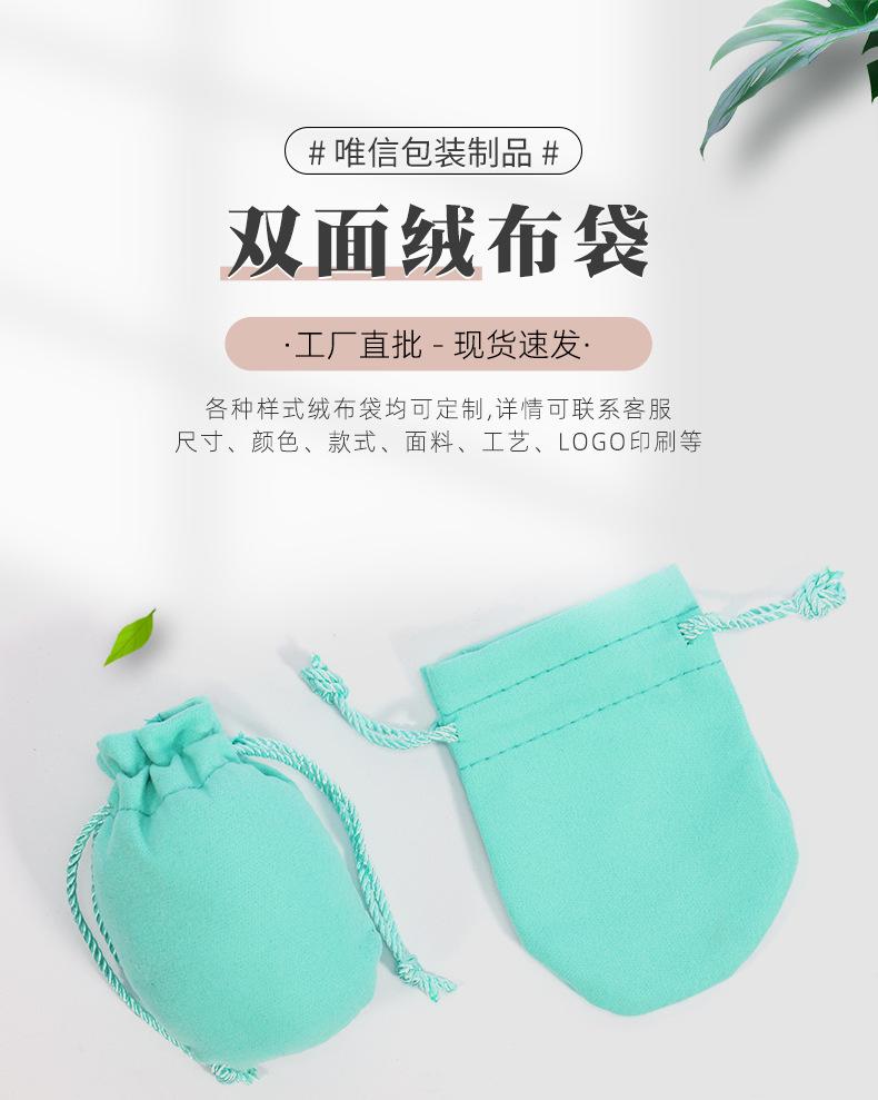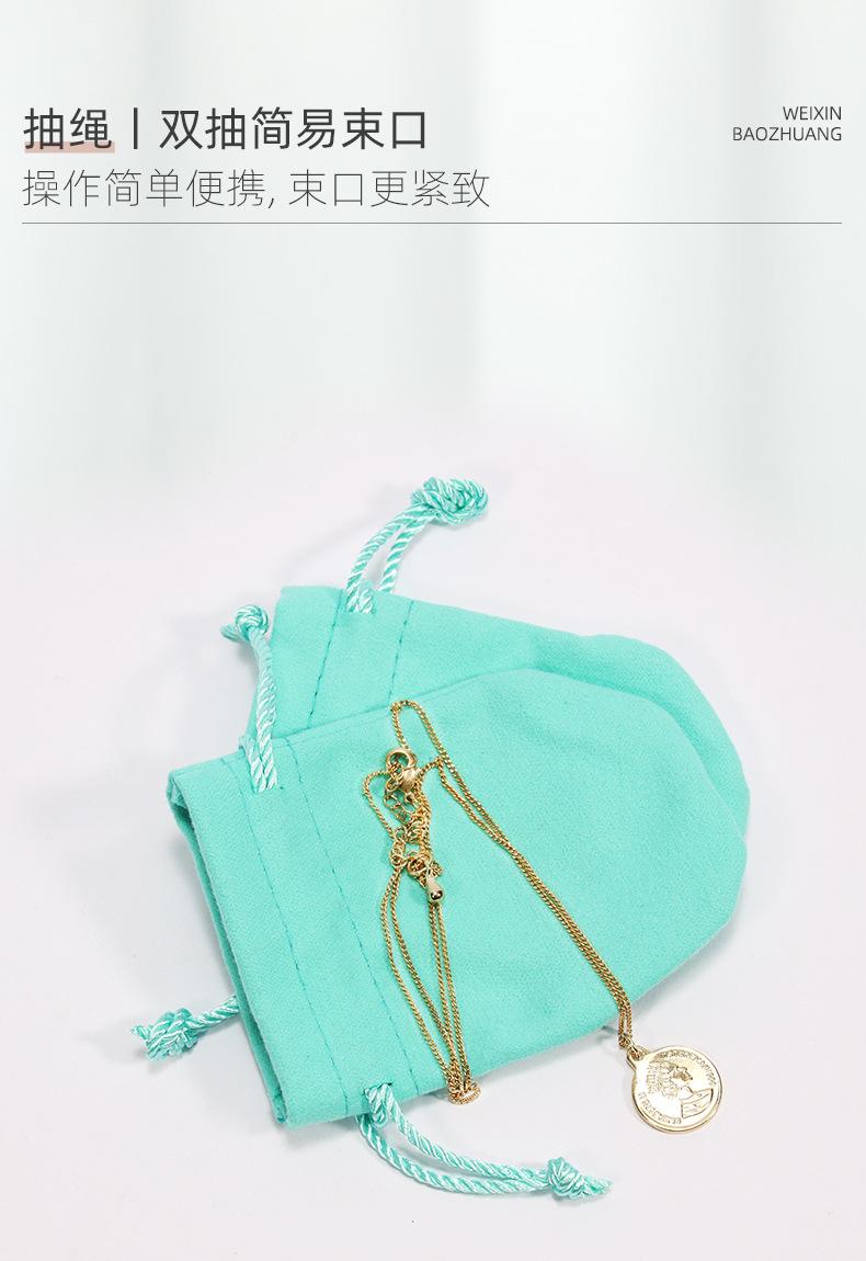 Bolsa de franela de doble cara azul agua con cordón ajustable, bolsa de almacenamiento para joyas con logotipo imprimible, venta al por mayor