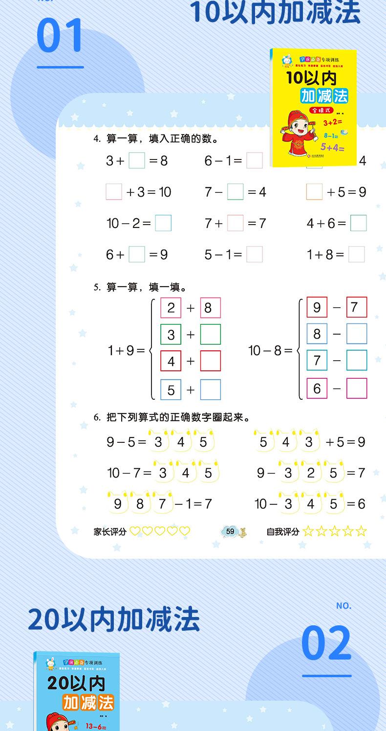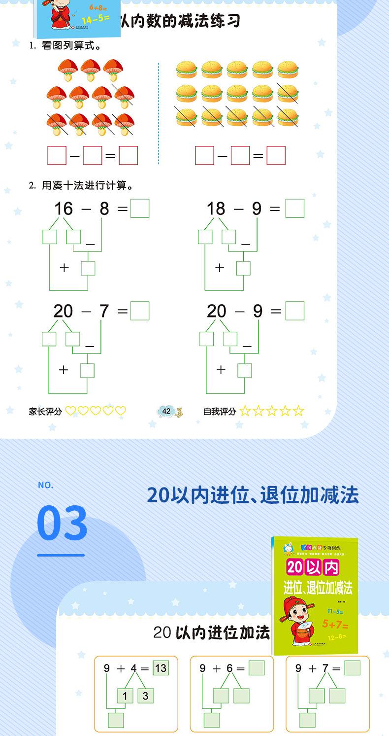Addition and subtraction within 10, Addition and subtraction without carry or abdication within 20, Addition a...