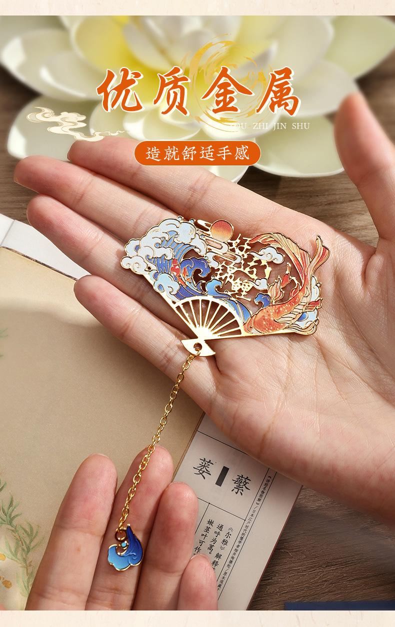 Separador de Libros Chino en Forma de Abanico Creativo Antiguo Conmemorativo Marcador de Metal Estudiante Exquisito Recompensa Pequeño Regalo Marcador al por Mayor