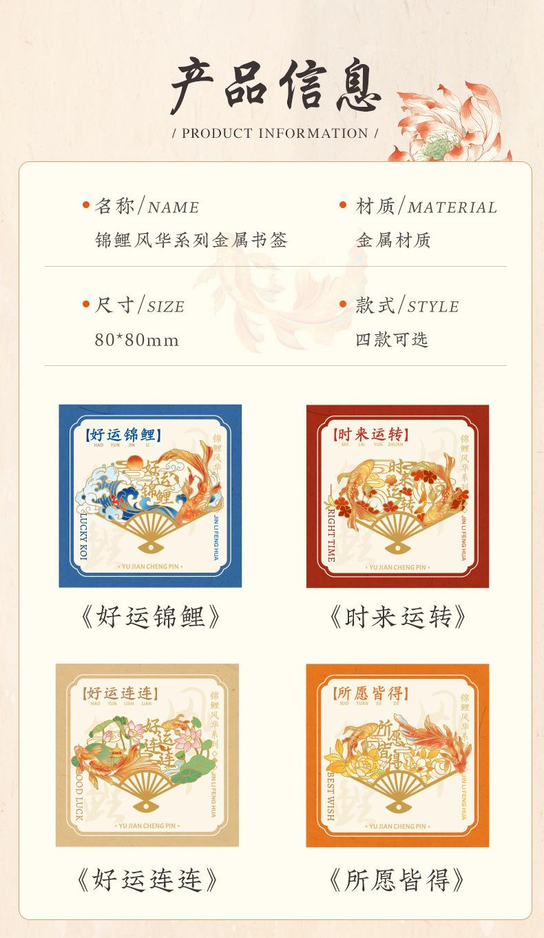 Bookmark box, Good luck koi, Time comes and turns, Good luck, You get what you want, Green, Crane shadow, Brea...