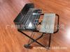 Barbacoa de carbón: hogar de acero 52x30cm sobre carro plegable con cesta de alambre y estante delantero.