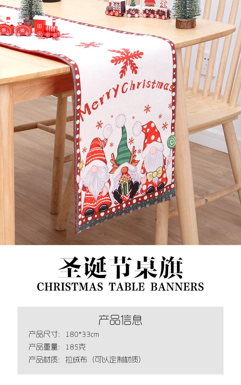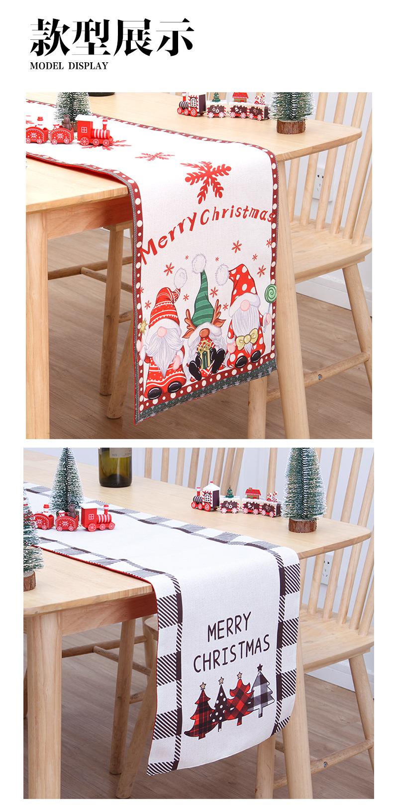 Nuevo Camino de Mesa Navideño Transfronterizo Algodón y Lino de Doble Capa Creativo Estampado Muñeco de Nieve Anciano Mantel de Mesa Ambiente Decoraciones Navideñas