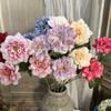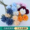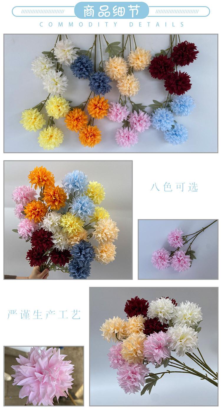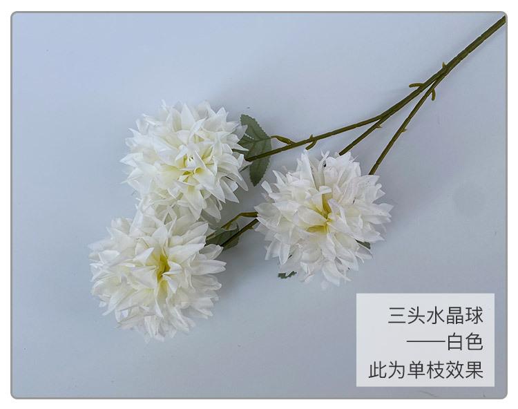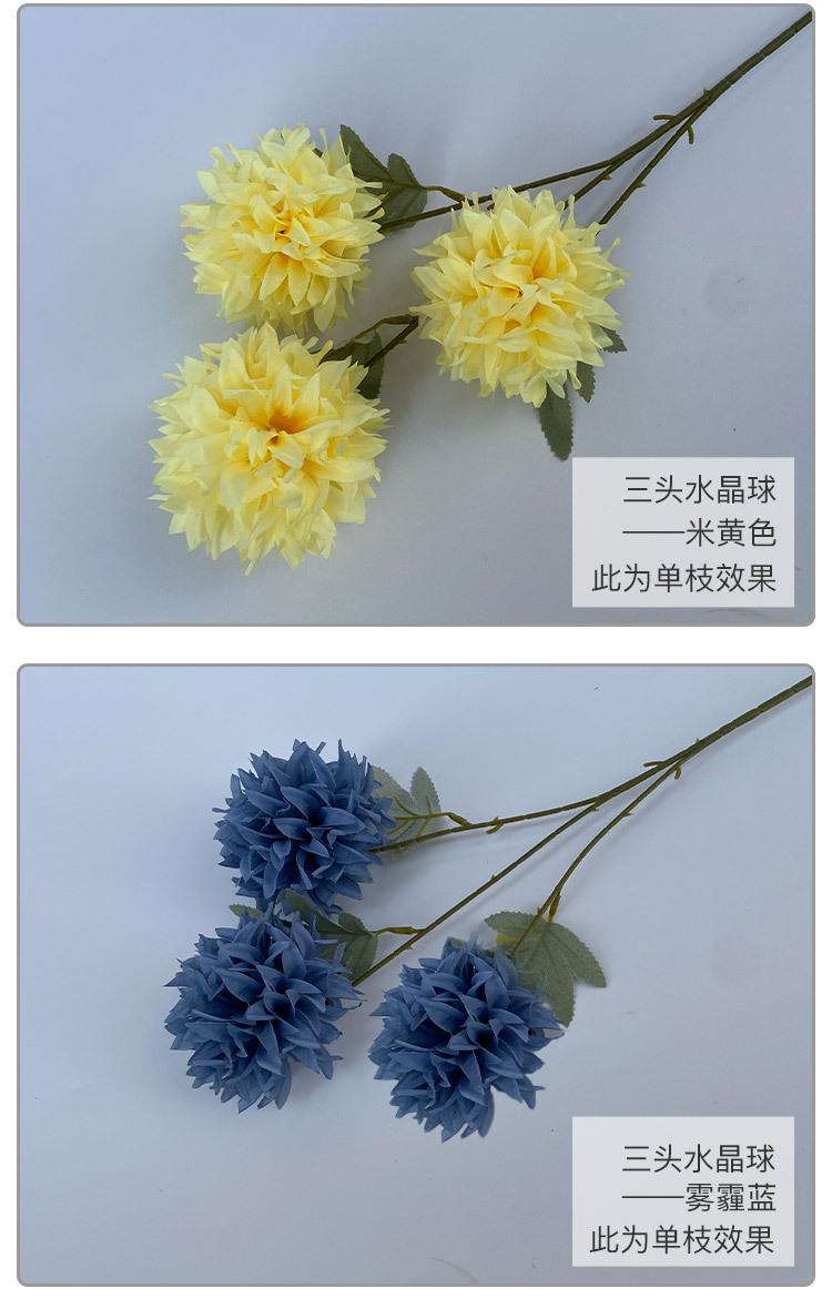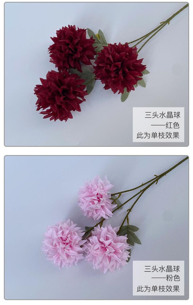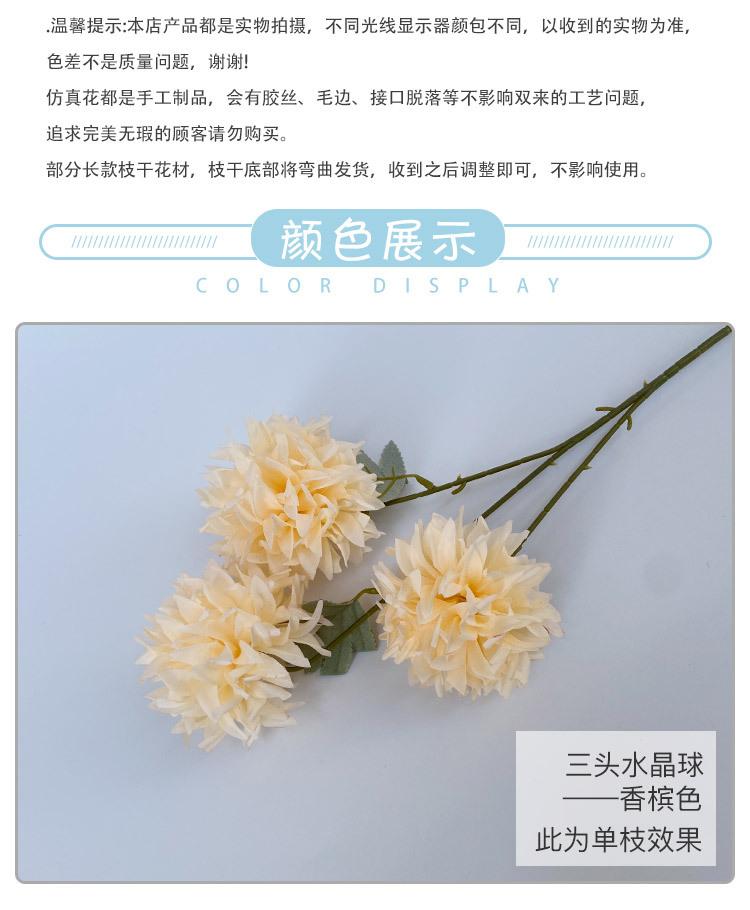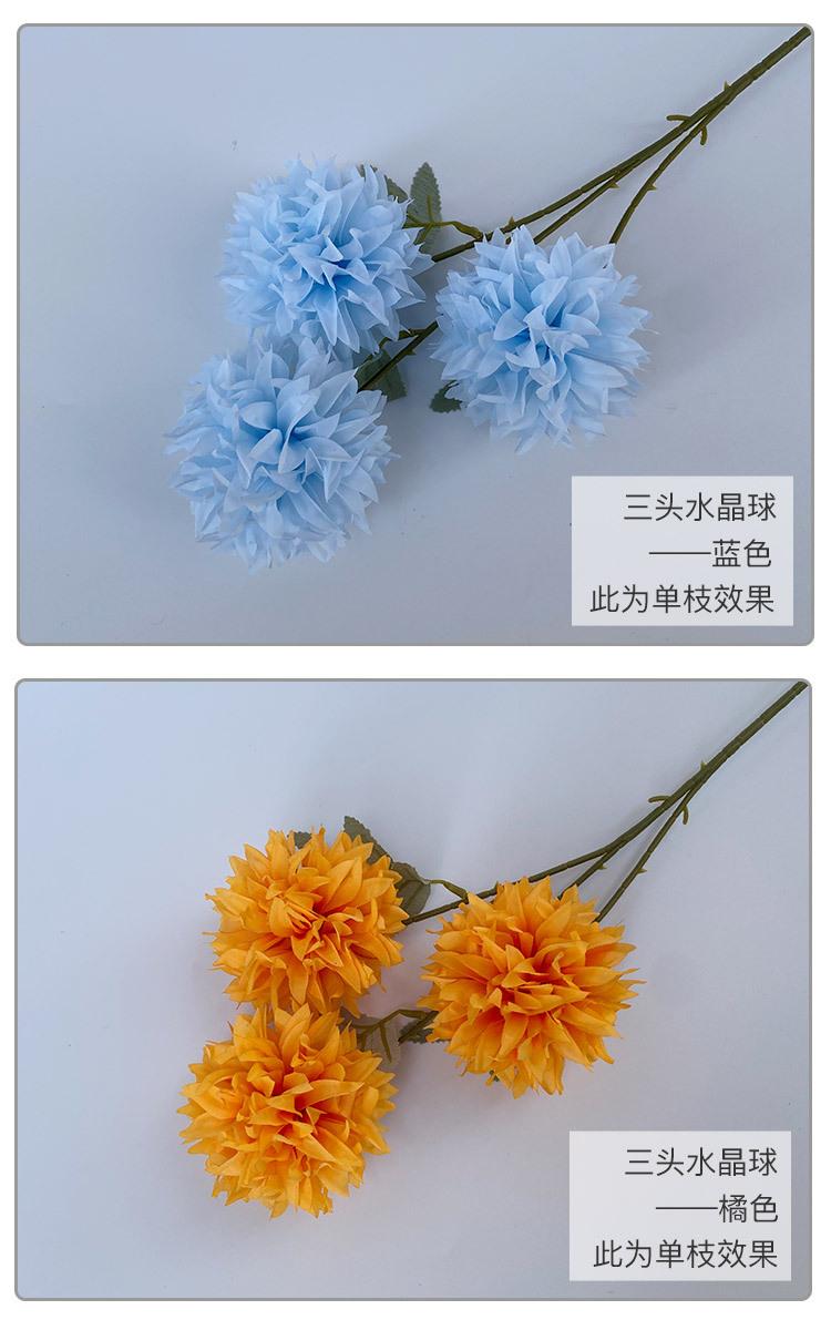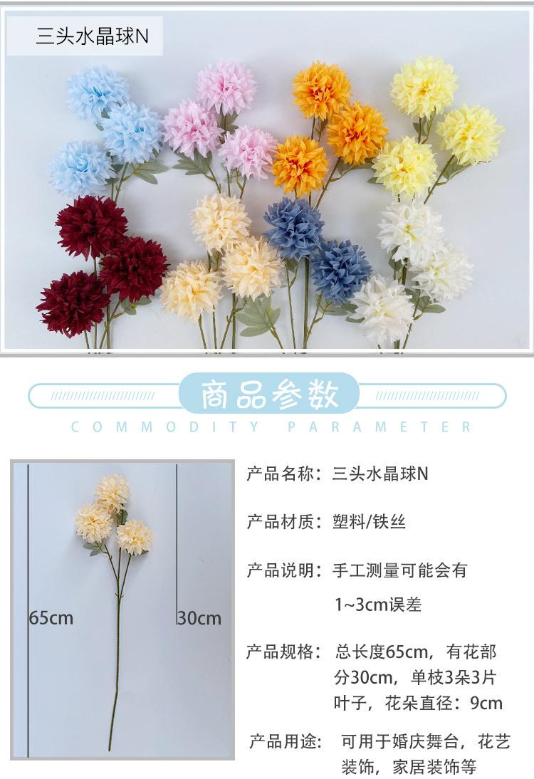 Crisantemo de bola de cristal de tres cabezas para boda de estilo europeo, flor artificial para decoración de pared, área de bienvenida de hotel, fondo floral