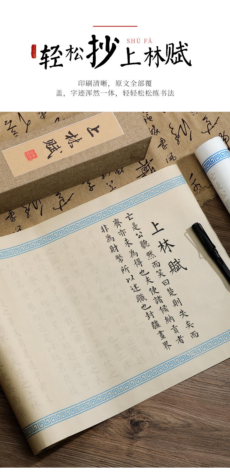 Caja de regalo Shanglin Fu, pincel de escritura, cuaderno de volumen largo, volumen completo de cinco metros, introducción de Sima Xiangru, copia roja, traje para principiantes