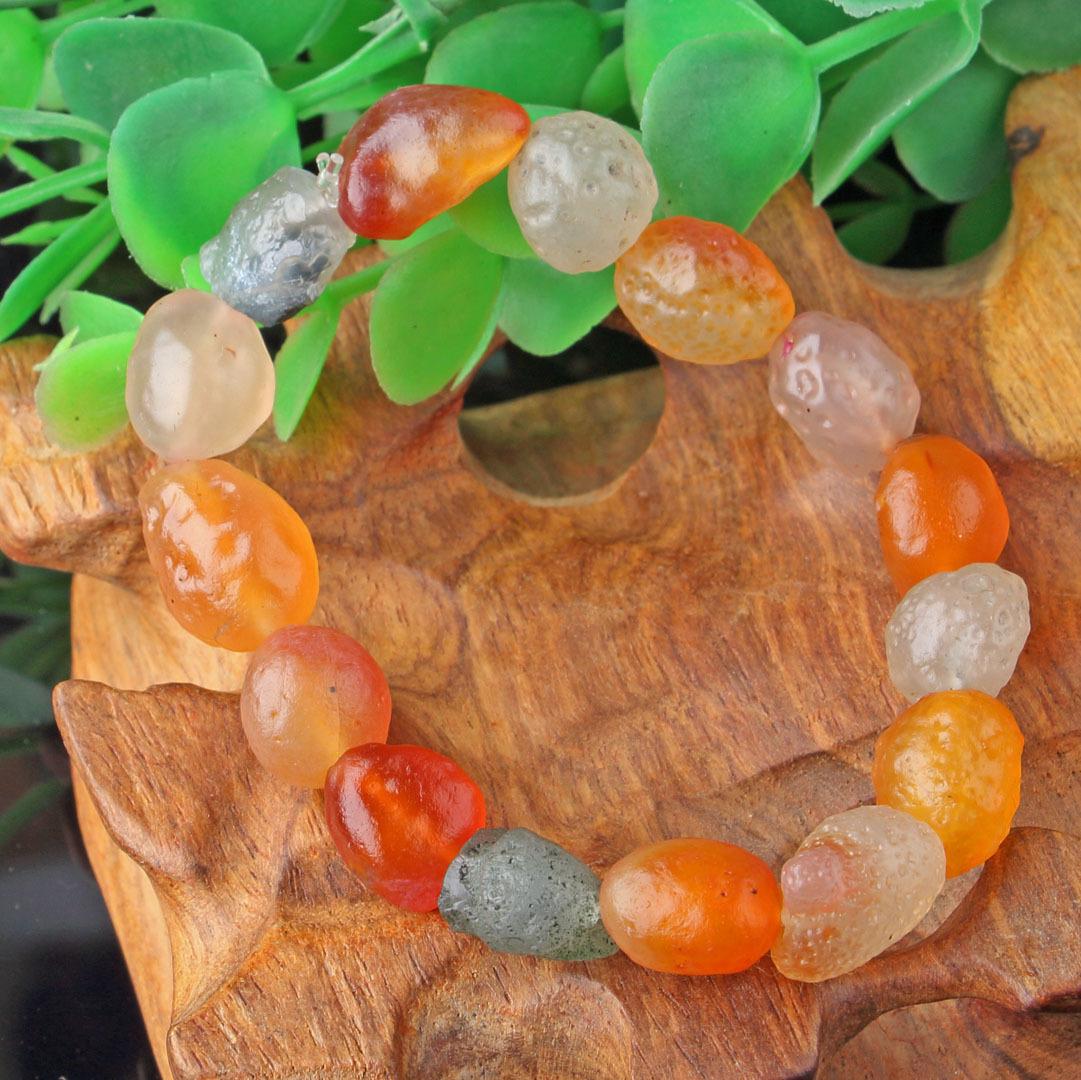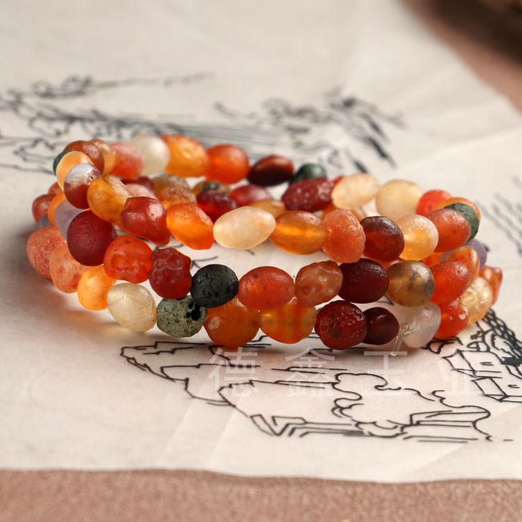 Ágata Alxa El jade de color Alashan también se llama piedra del Gobi, piedra de borde de viento, piedra pulida por el viento, piedra tallada por el viento, piedra tallada por el viento, piedra del desierto, etc. Tiene una textura dura, una dureza de Mohs de 7 a 8, un color como un brillo rosado y es tan suave como el cristal. Contiene múltiples oligoelementos. Tiene el significado de,,,. Se produce principalmente en las regiones del Gobi de Alashan, Xinjiang y Mongolia Exterior en China. La ágata de Alashan es uno de los tipos más numerosos de jade de color Alashan, y también hay muchas variedades. La ágata de Alashan es una roca formada después de que el fluido hidrotermal volcánico tardío llenó los poros y las cuevas de las rocas volcánicas tempranas. Está compuesta principalmente de dióxido de silicio (SiO2). Tiene una textura fina y dureza (dureza de 6.5-7). Los colores son relativamente ricos, incluyendo gris, rojo, púrpura, blanco, negro, etc. A menudo está dominado por un color y contiene otros colores. Después de ser pulida por el viento y la arena, la superficie de la piedra es densa, lisa y transparente, y las formas son variadas: personas, animales y paisajes son muy comunes en la ágata del Gobi, generalmente de tamaño pequeño (5-30 cm). Entre las ágatas de Alashan, la más familiar para todos son las cuentas de ágata de Alashan. La piedra tendón es un componente importante de la ágata de Alashan, y recibe su nombre por su forma que se asemeja a los tendones del cuerpo humano. ¡Es muy valiosa! ![]()