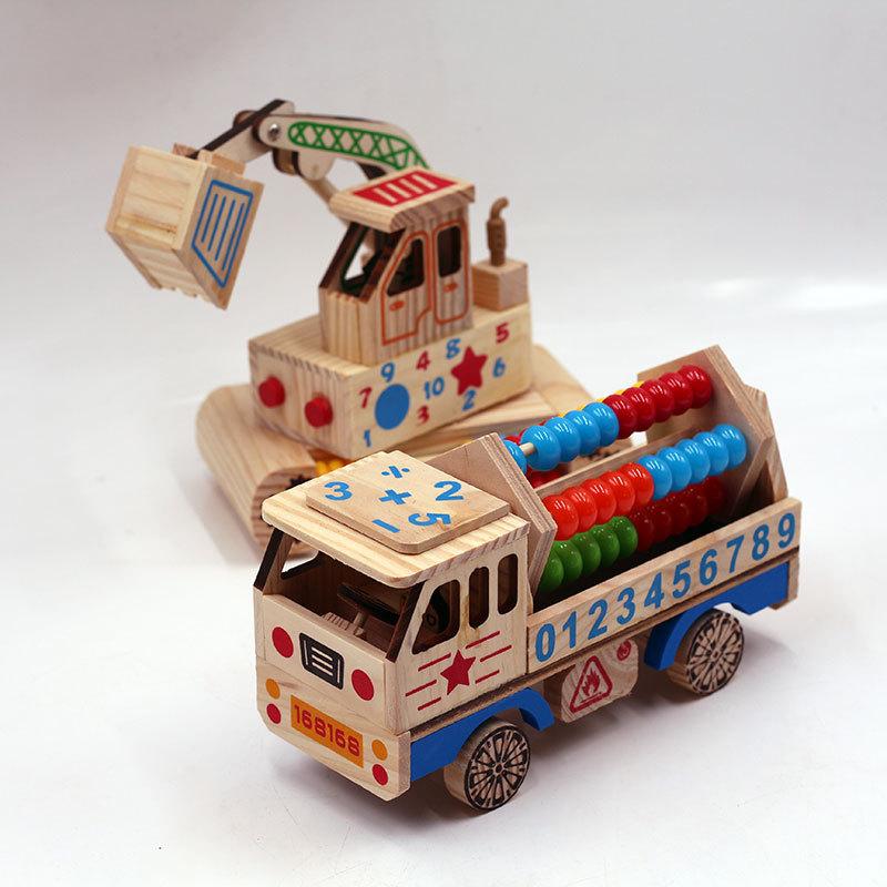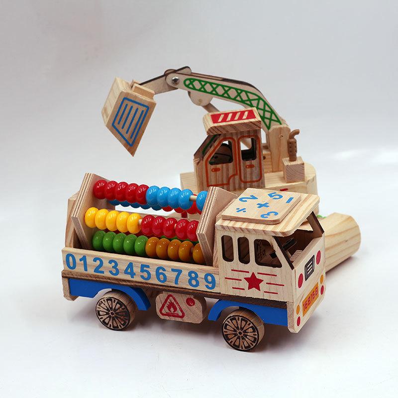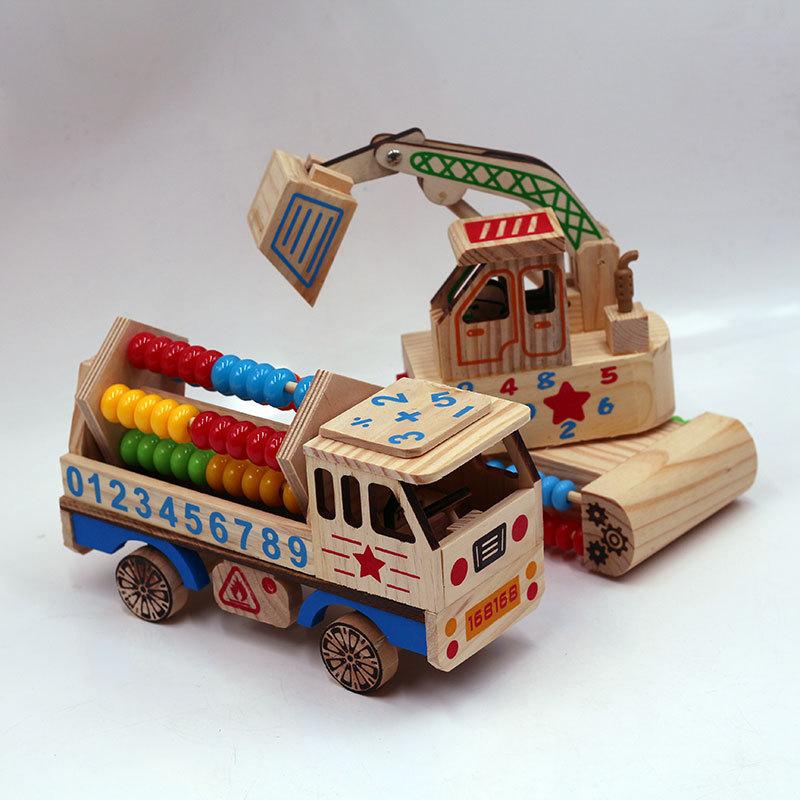 Wooden abacus bead engineering vehicle model, Wooden abacus bead excavator model