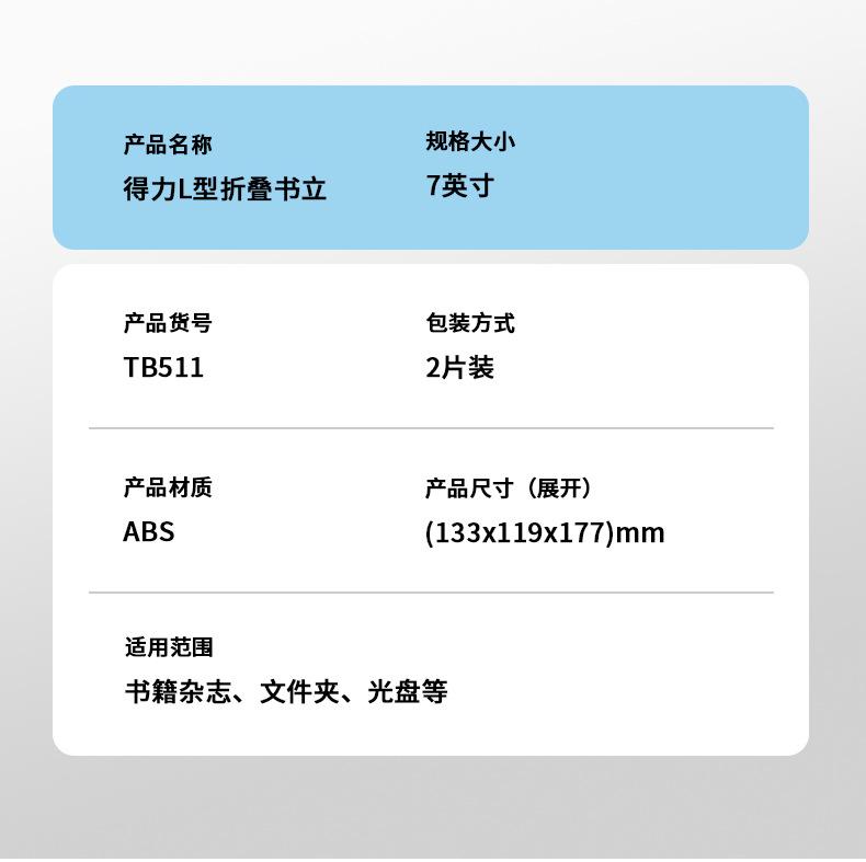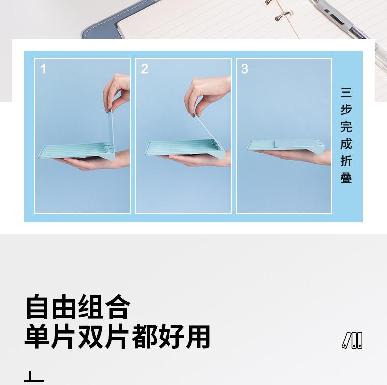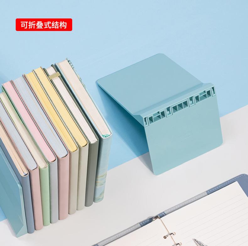 Atril plegable para libros Deli TB511 (Azul y blanco) (Caja) Estantería creativa para escritorio, sujetalibros, suministros de oficina