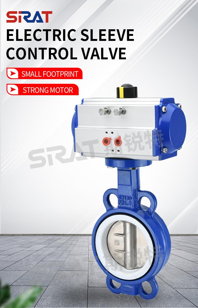 Válvula de mariposa neumática tipo wafer D671F-16Q con sello de PTFE, resistente a la corrosión, interruptor resistente a ácidos y álcalis, DN 80, 100, 150 y 200