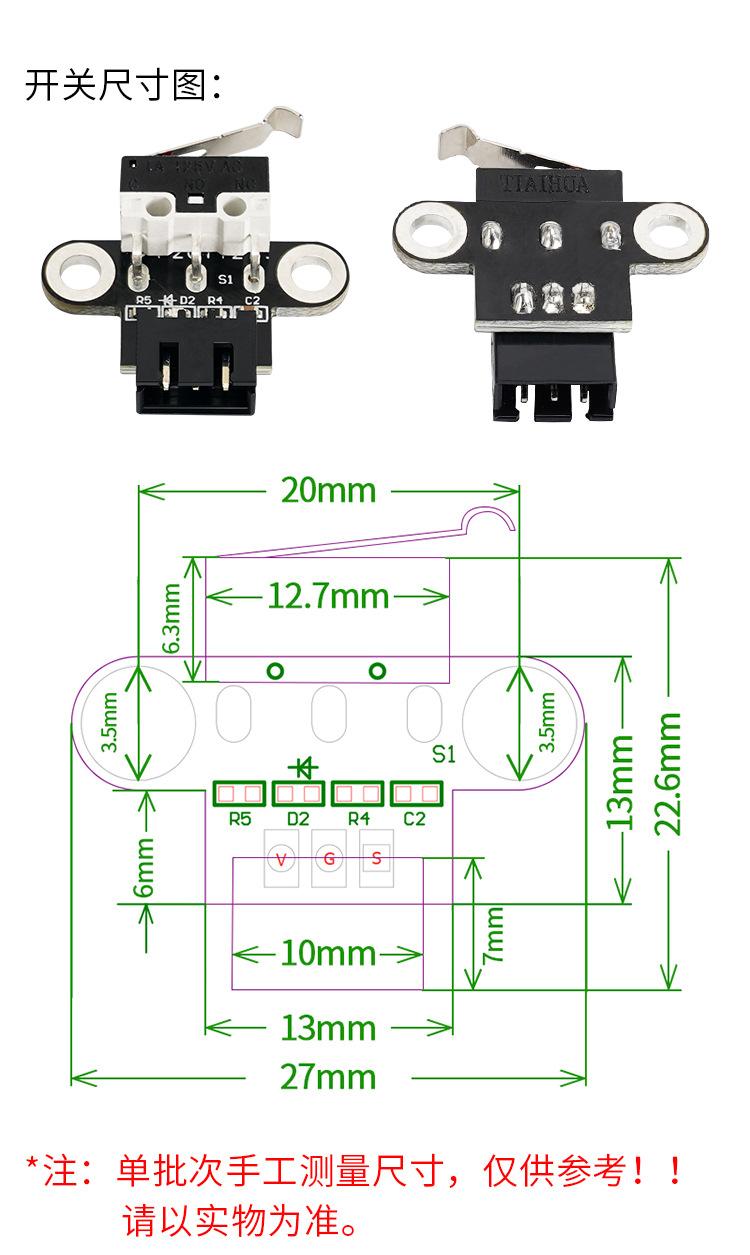Qipang accesorios placa madre impresora 3D interruptor de límite mecánico Endstop carrera táctil horizontal reinicio