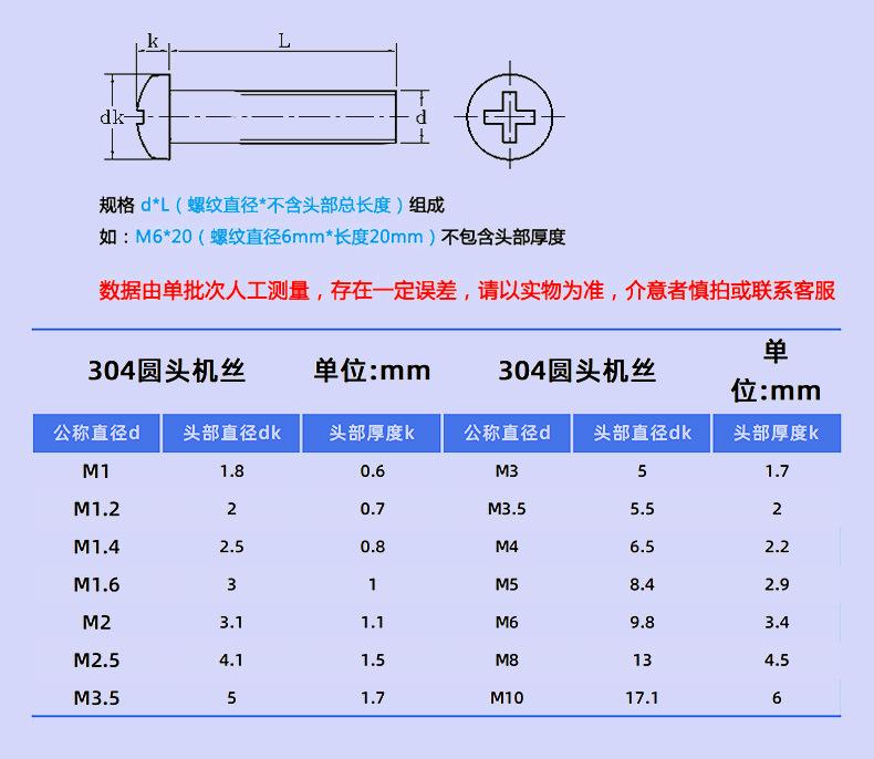 Tornillo de cabeza redonda PM de acero inoxidable 304, tornillo de cabeza plana con ranura en cruz, tornillo dentado, mini tornillo electrónico pequeño M1-M3.5