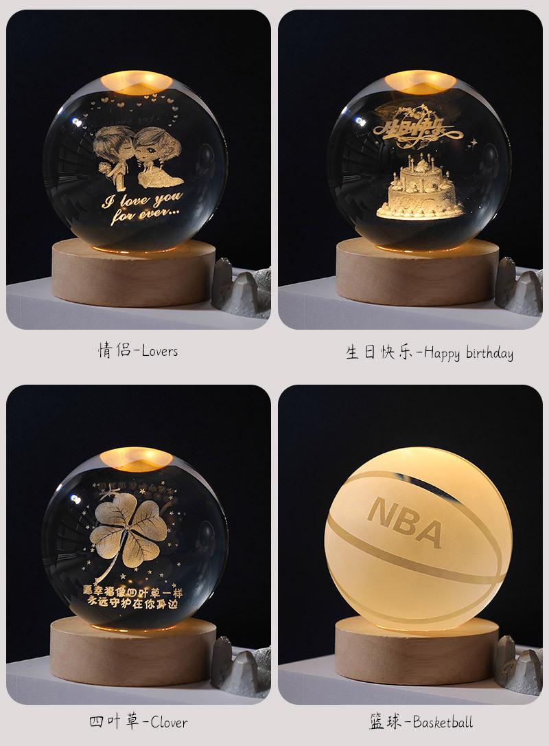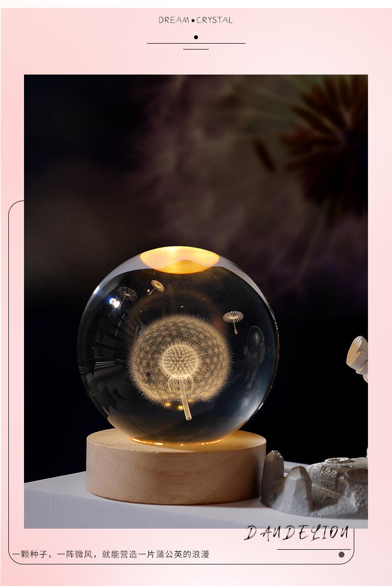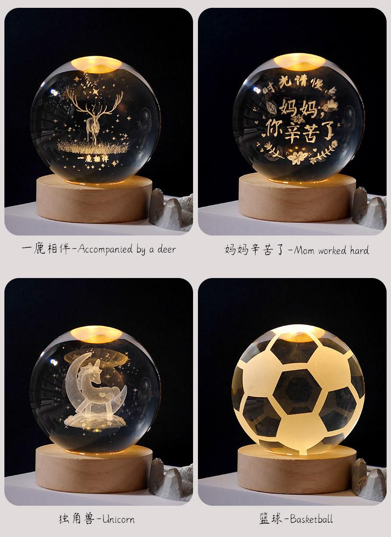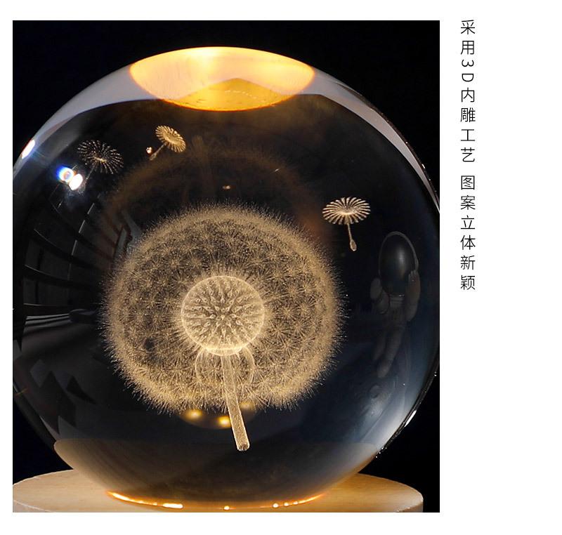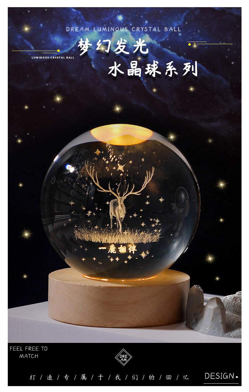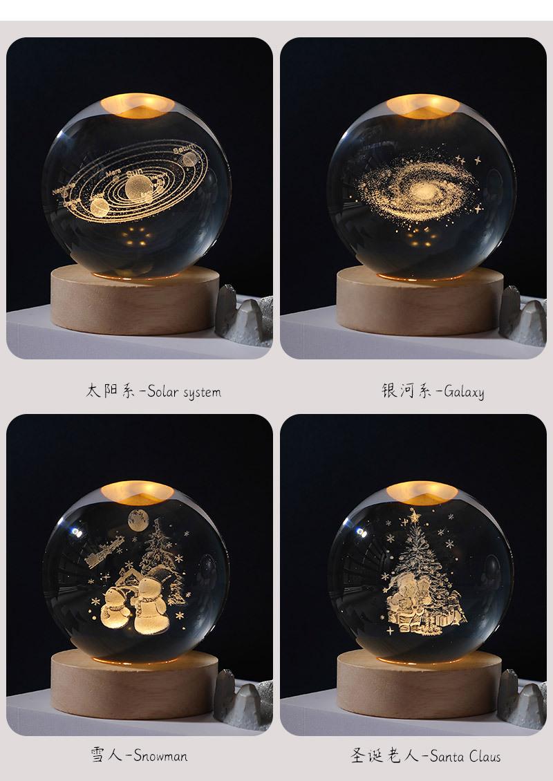 Luz Nocturna de Bola de Cristal 3D Tallada Internamente Transfronteriza Galaxia Luminosa Base de Madera Adorno de Escritorio Regalo para Dar Recuerdo Regalo
