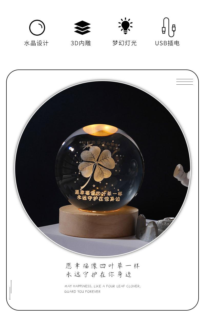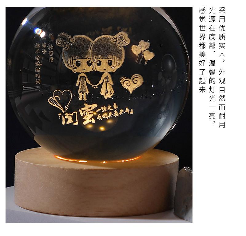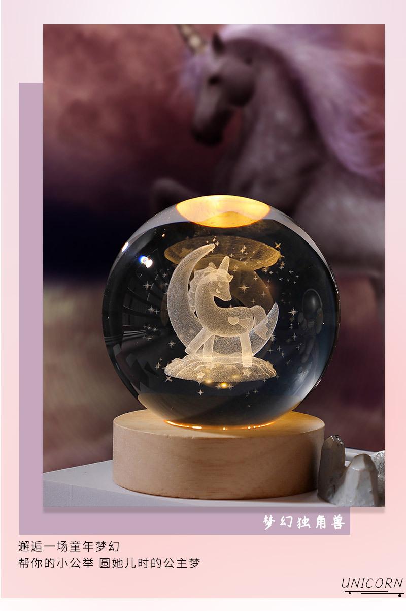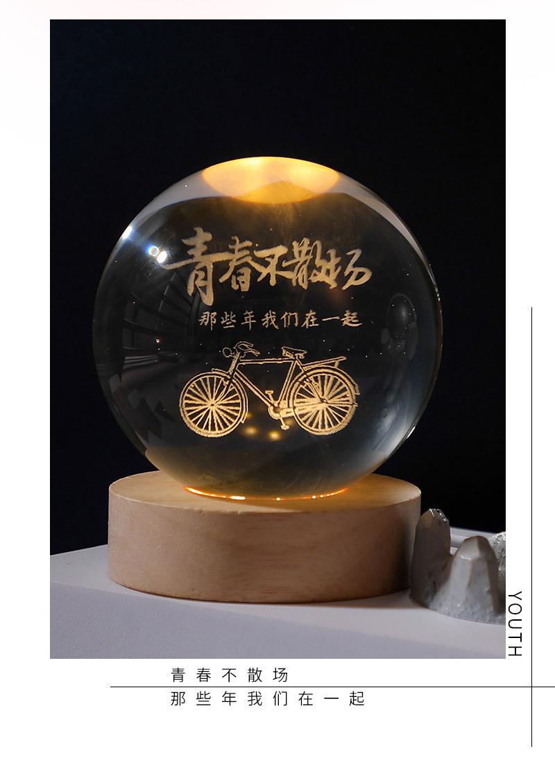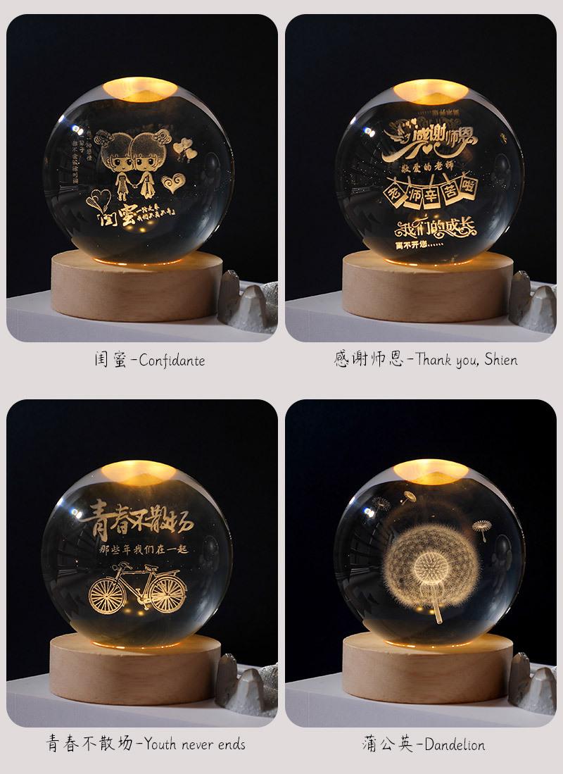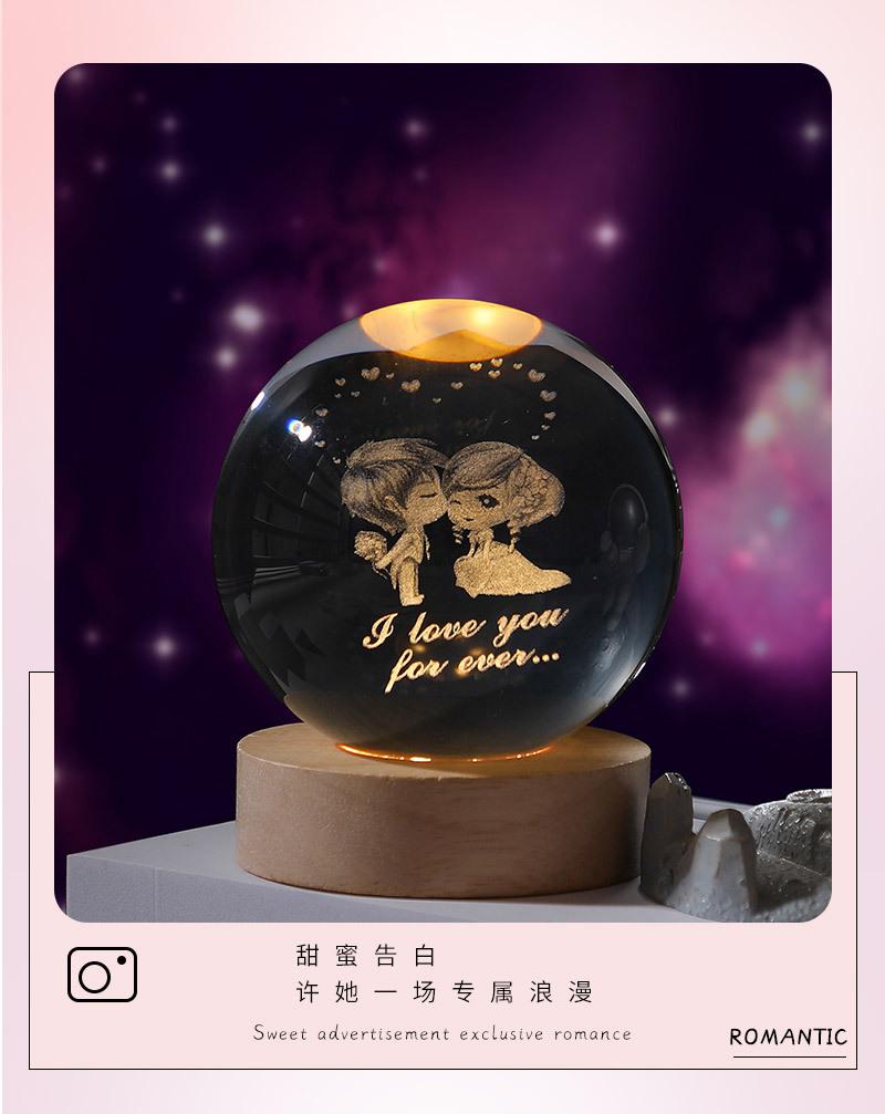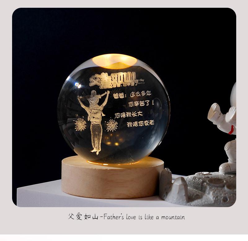 Luz Nocturna de Bola de Cristal 3D Tallada Internamente Transfronteriza Galaxia Luminosa Base de Madera Adorno de Escritorio Regalo para Dar Recuerdo Regalo
