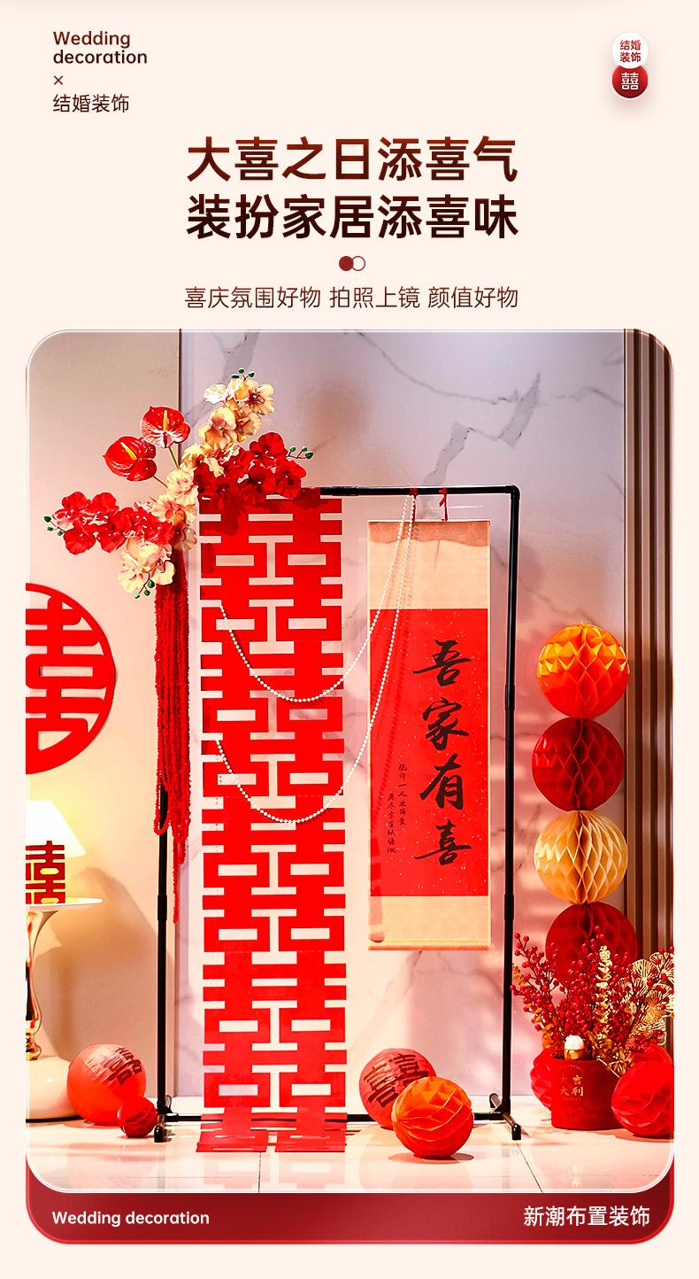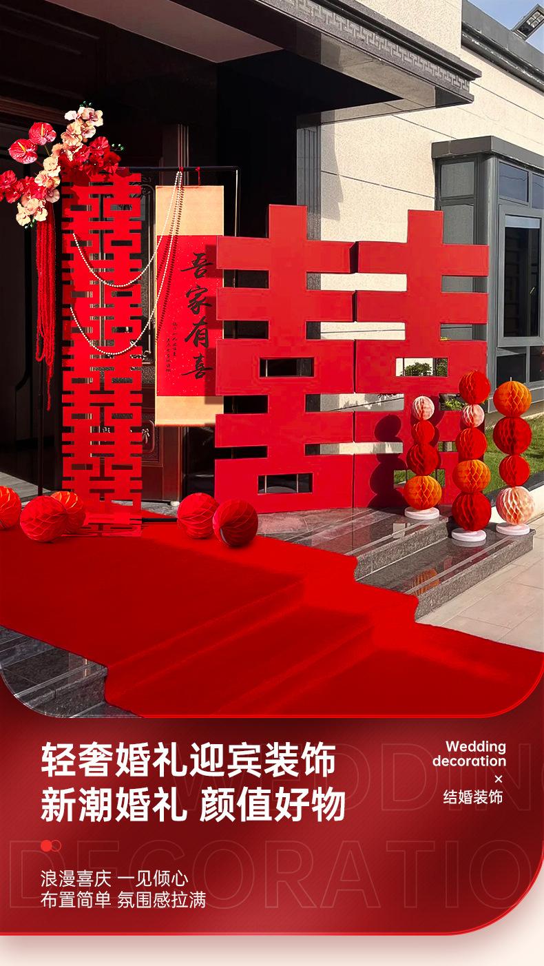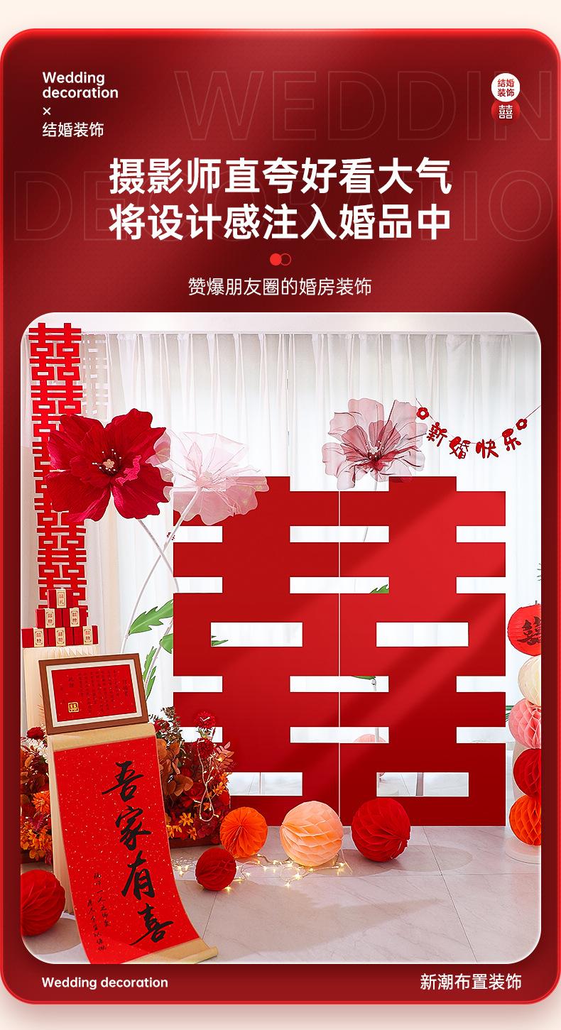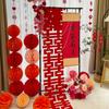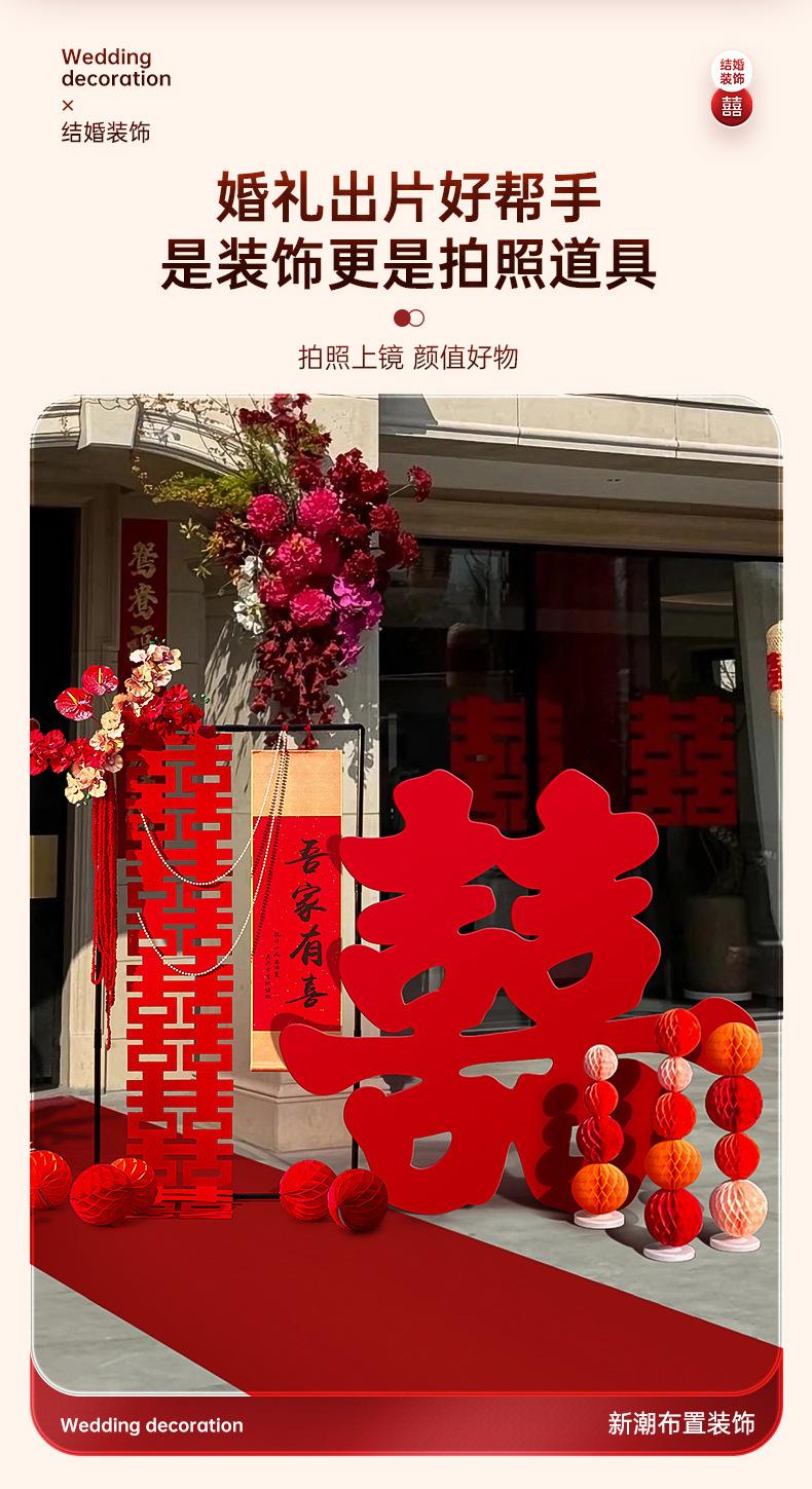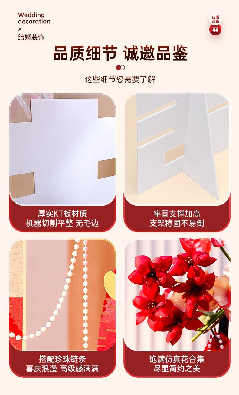 Decoración de banquete de compromiso juego completo de panel de fondo pared de fondo china panel KT boda banquete de regreso adornos de carácter feliz boda tridimensional carácter feliz adornos de panel KT decoración rural de boda disposición de doble carácter feliz entrada de hotel sala de bodas