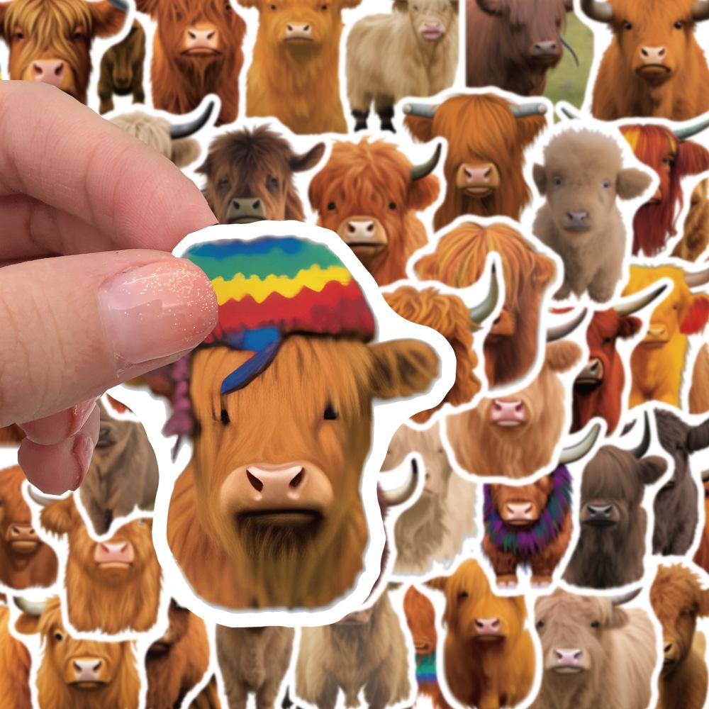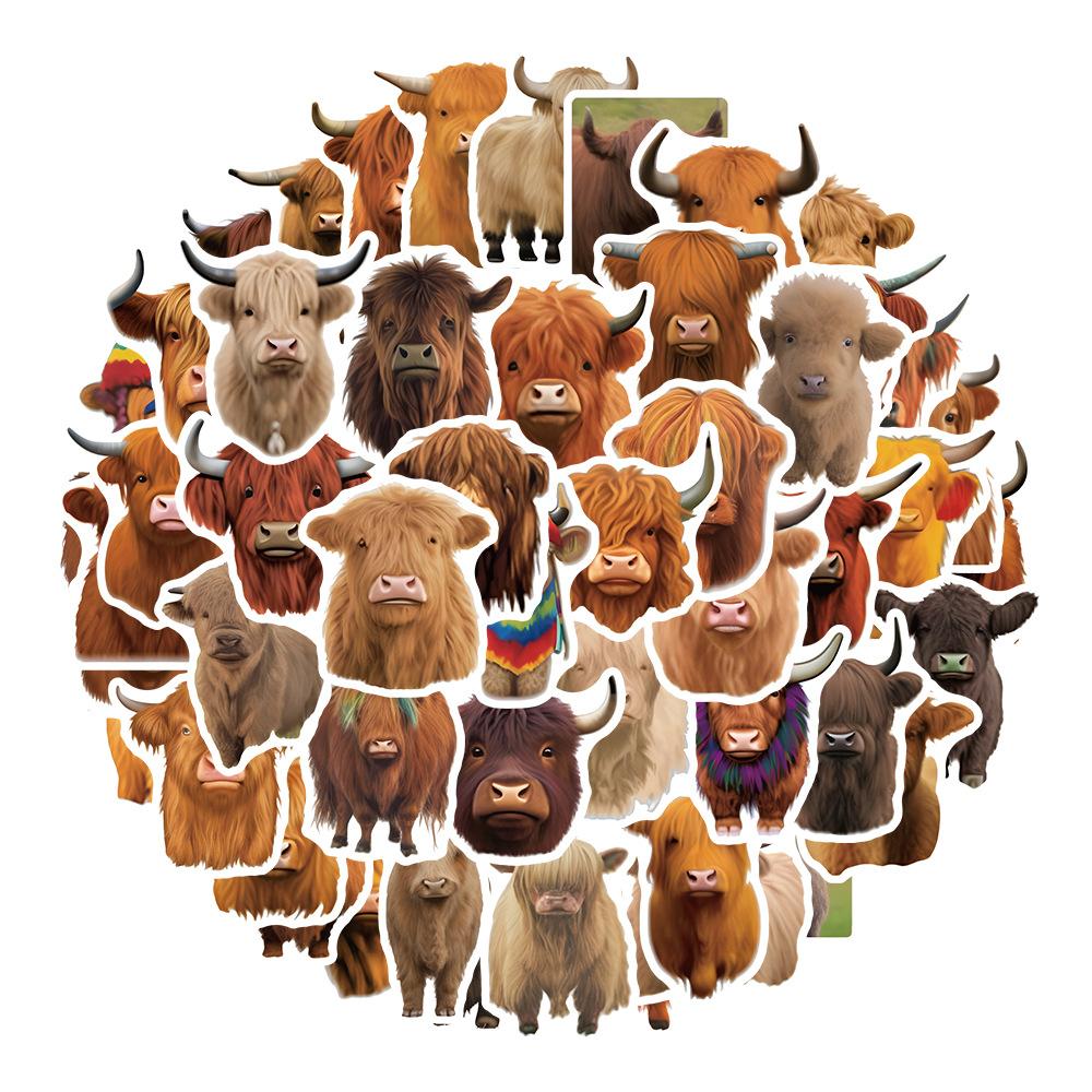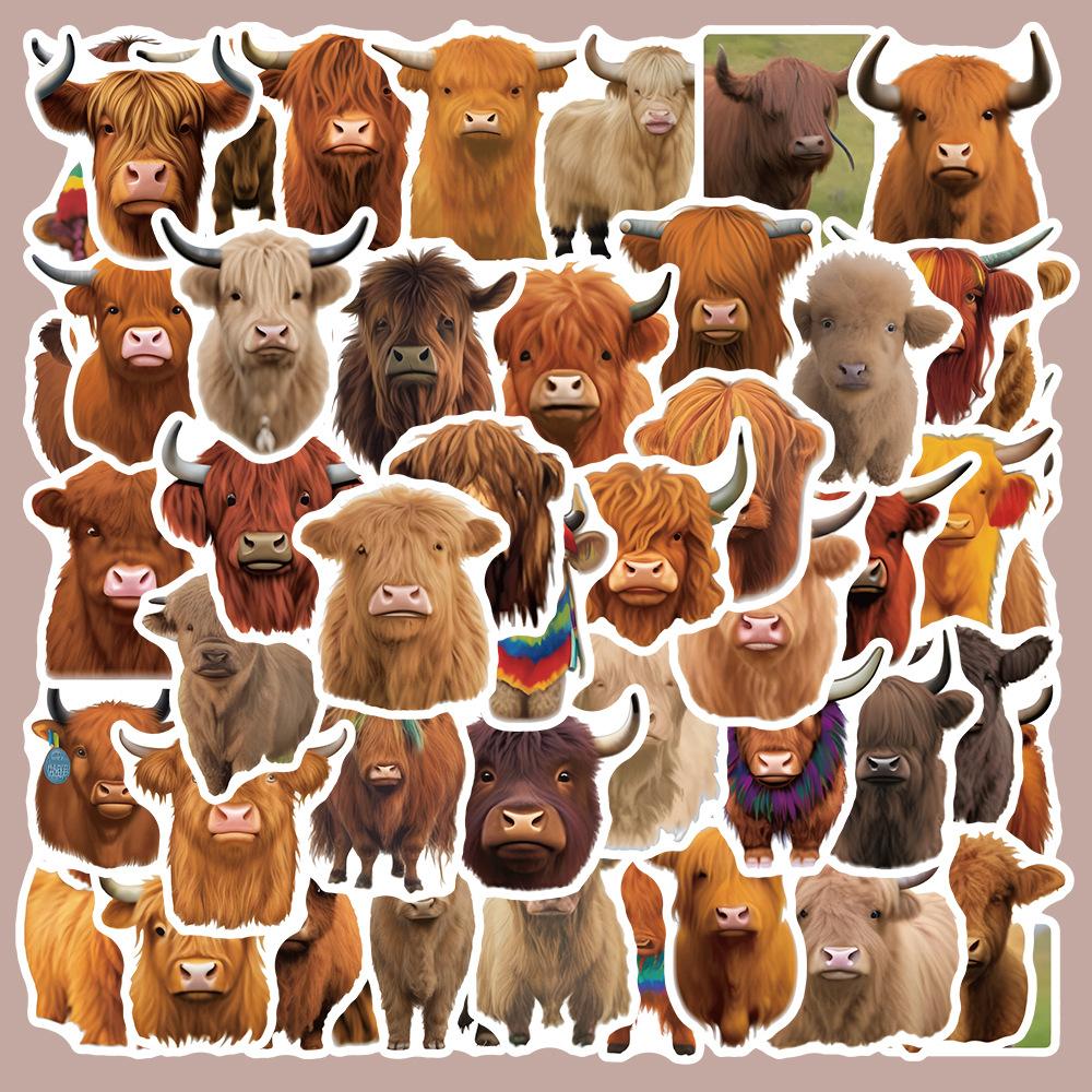 52 pegatinas de grafiti de animales de dibujos animados yak para fotos, para carcasa de teléfono móvil, vaso de agua, guitarra, computadora, impermeables, al por mayor