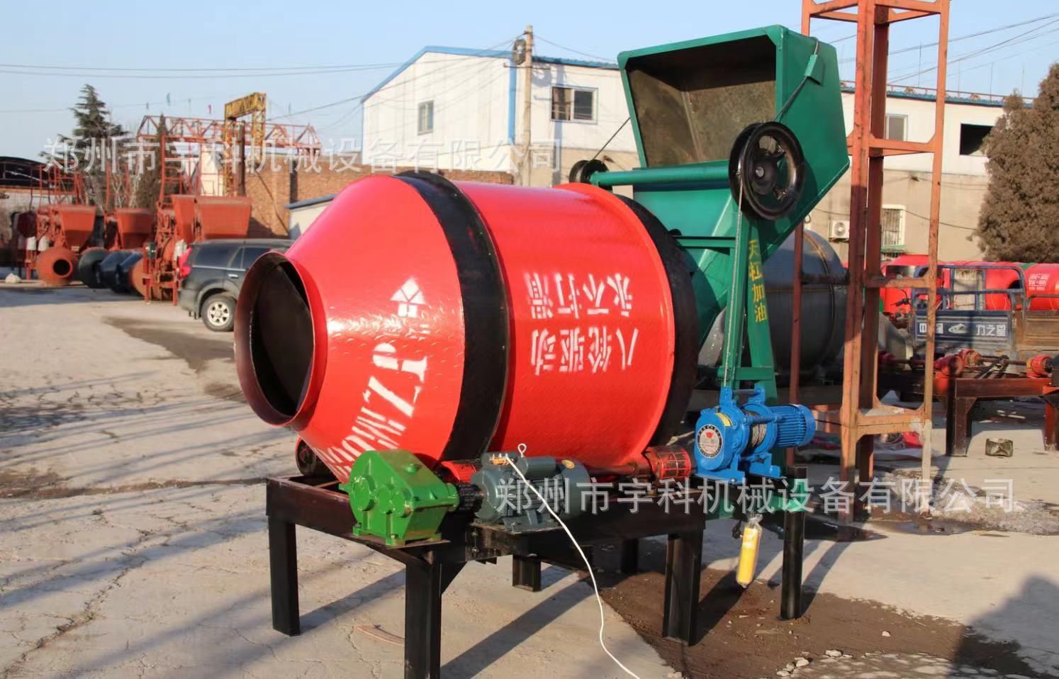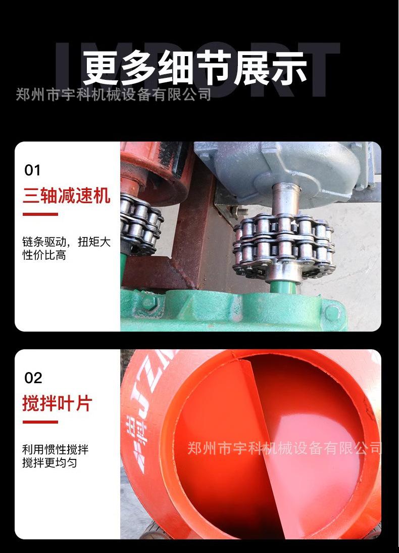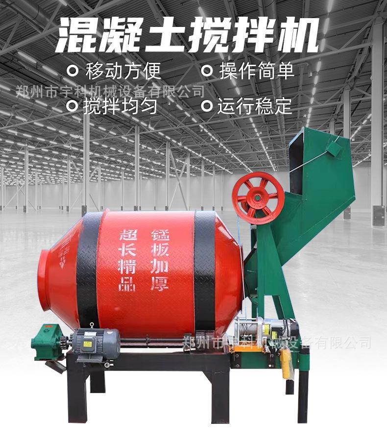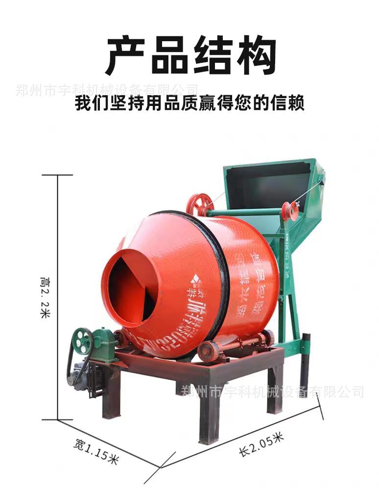 Mezclador de tambor pequeño para el hogar, mezclador de concreto de 220 V, alimentación automática, mezclador de tanque pequeño de fricción de 8 ruedas