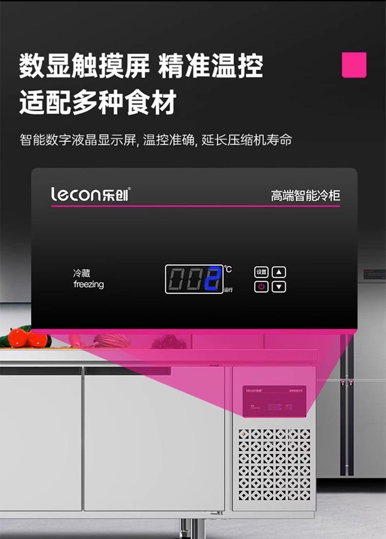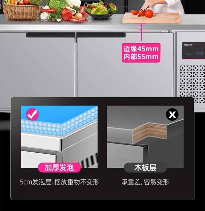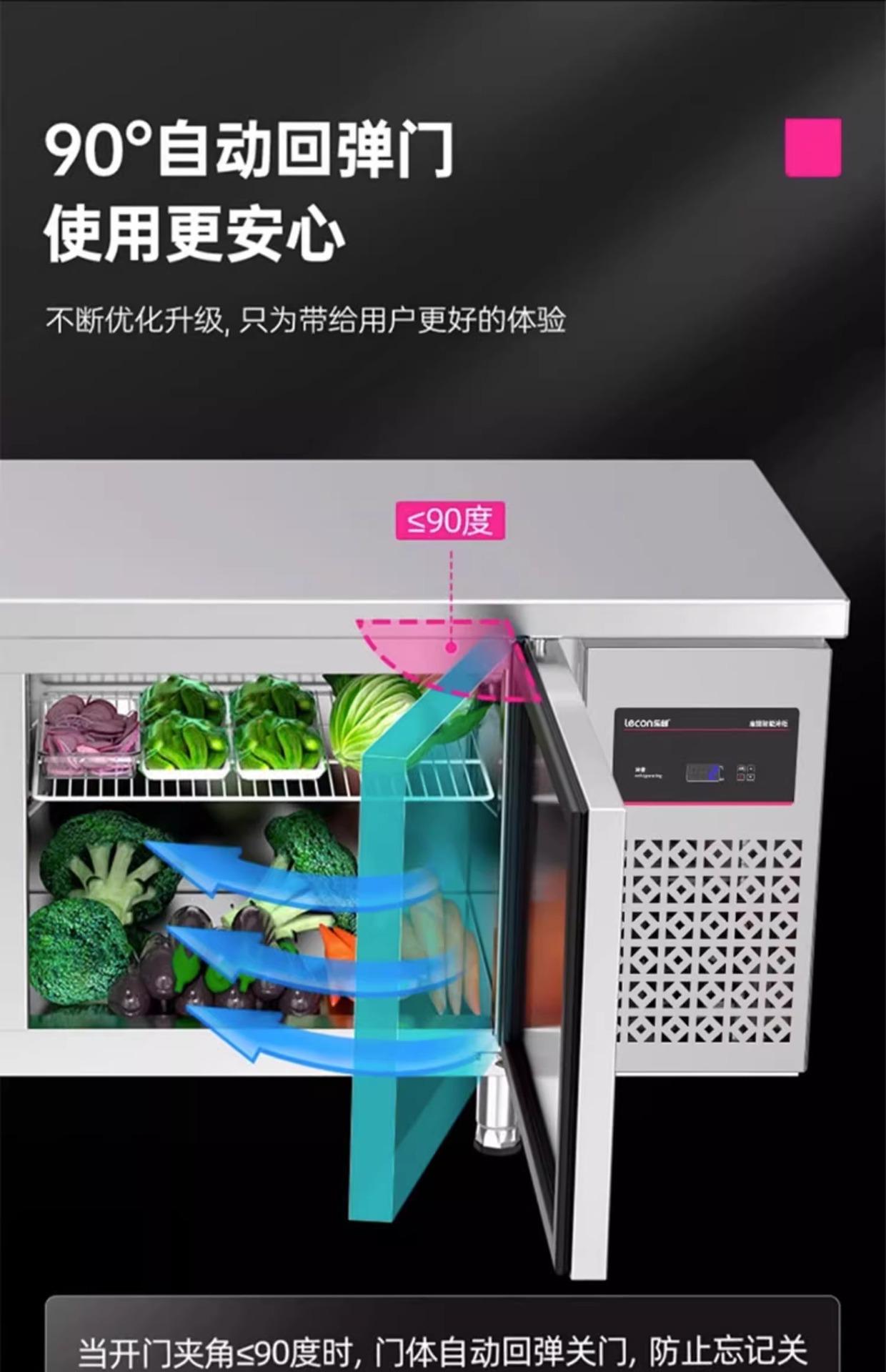 Mesa refrigerada para tienda de té con leche Lechuang, cocina comercial, mesa de operaciones de acero inoxidable, congelador para conservación de alimentos, barra de agua
