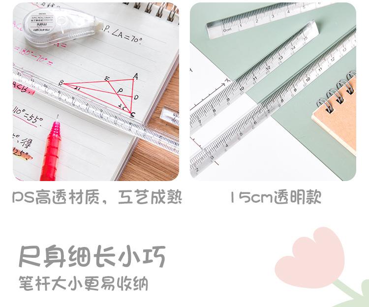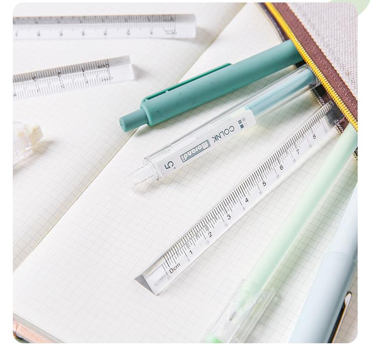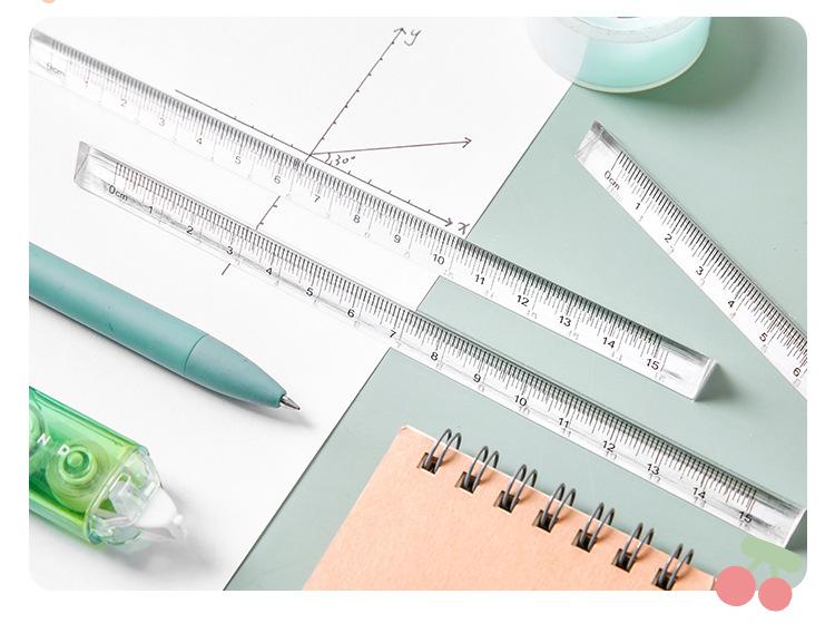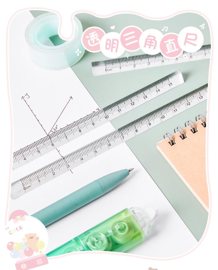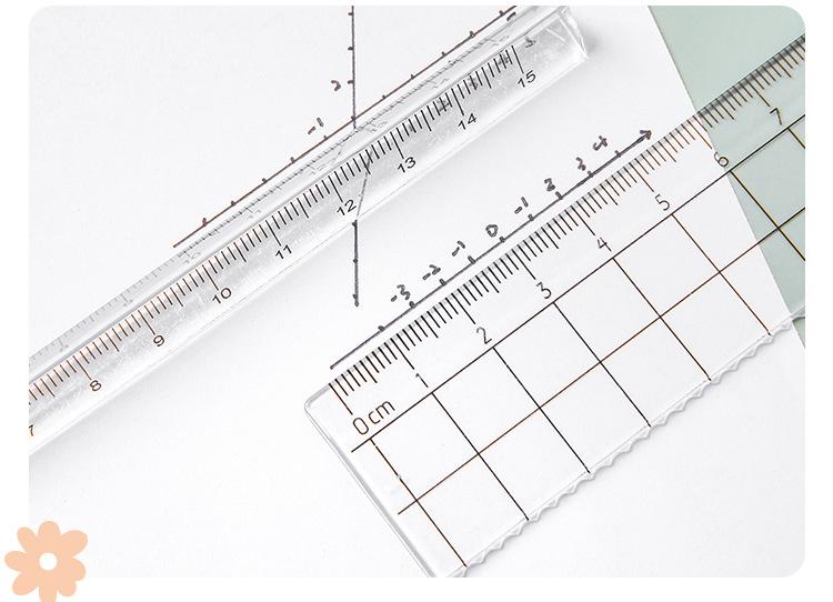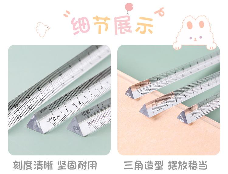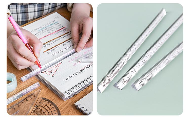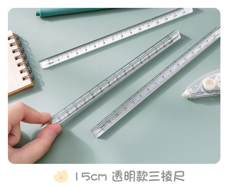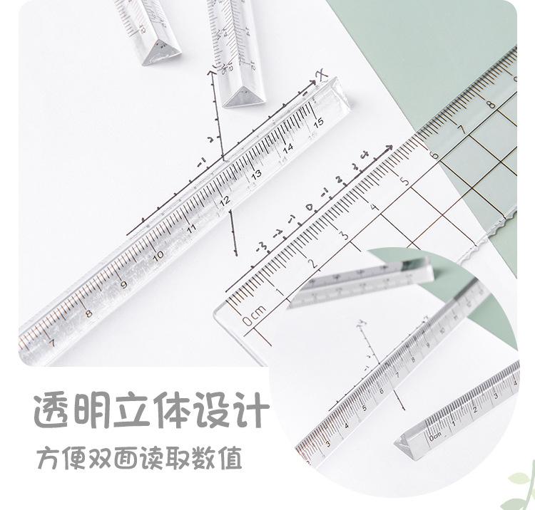 Regla triangular de plástico transparente de 15 cm, regla para estudiantes, papelería, examen, dibujo especial, regla tridimensional Mitsubishi, escala