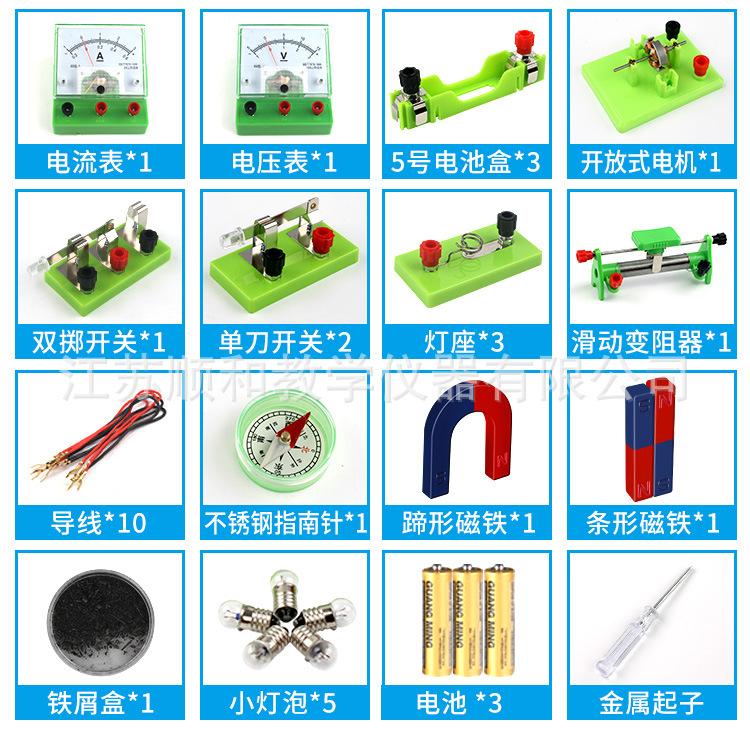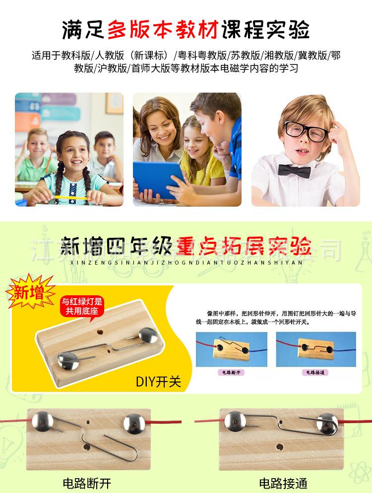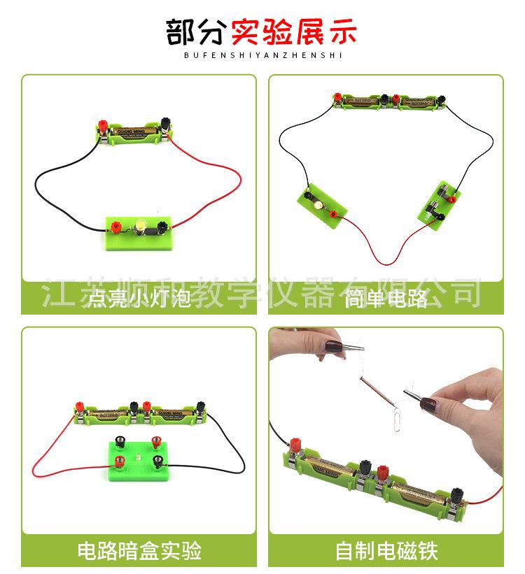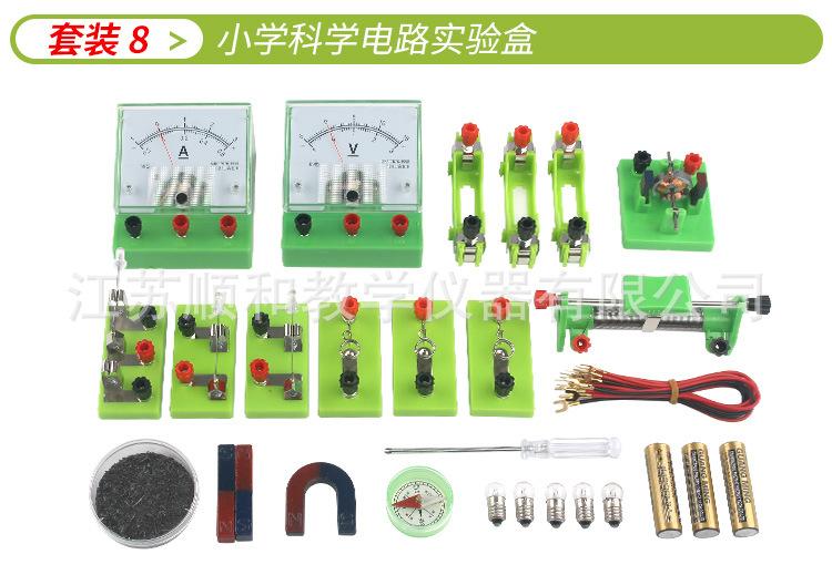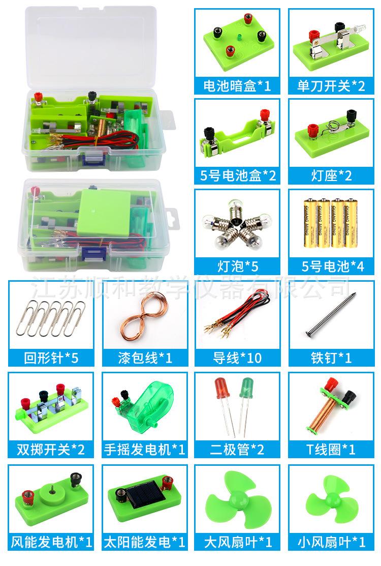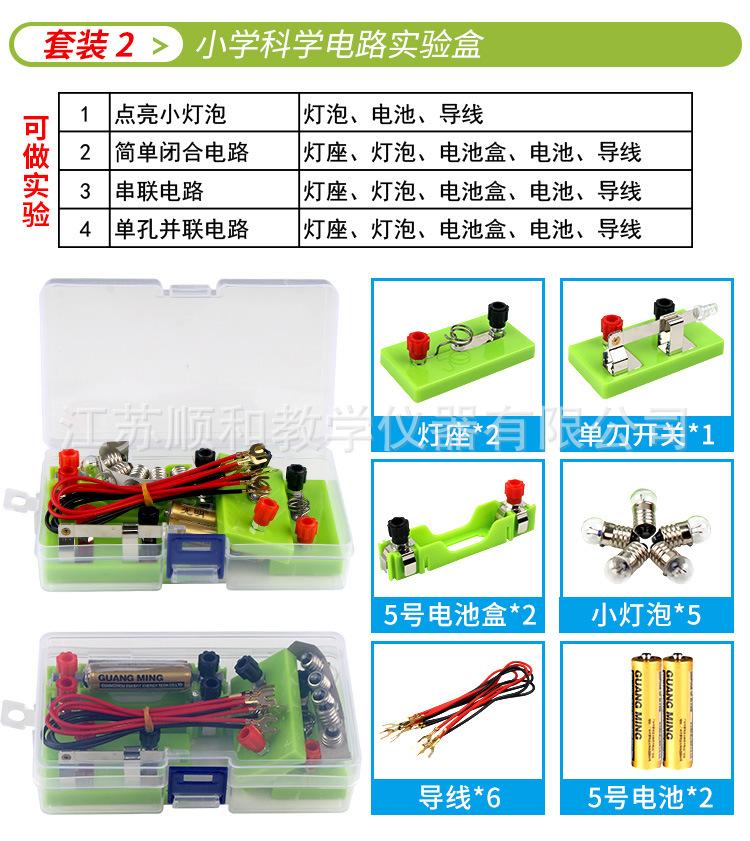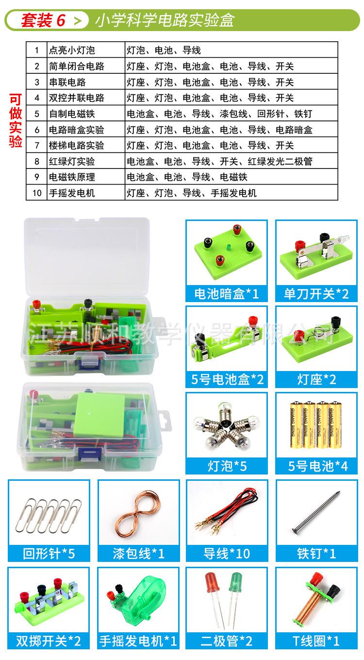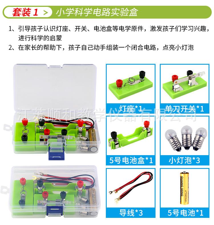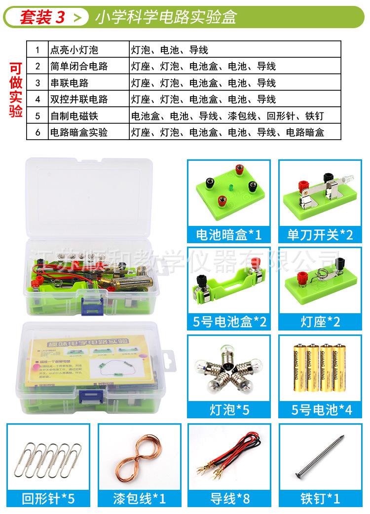 En el cuarto grado de la escuela primaria, la caja de experimentos científicos de circuitos eléctricos con series y pequeñas bombillas paralelas iluminaron el conjunto de equipos experimentales.