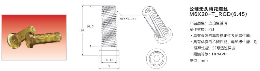 Tornillo de acoplamiento de ingeniería PEI tornillo de rosca completa tornillo de rosca de ciruela tornillo de varilla perno M6x20-T Ámbar