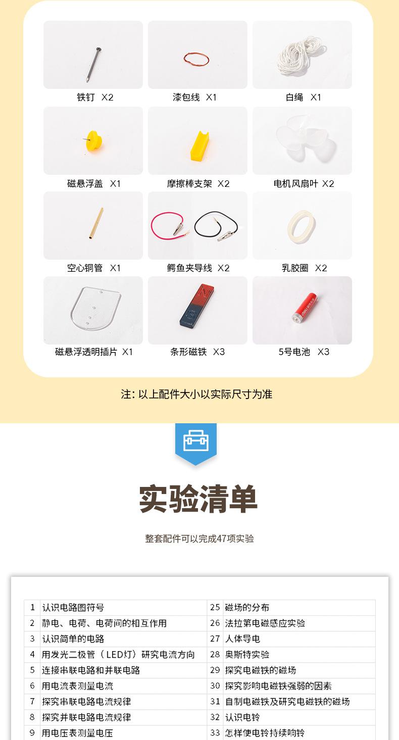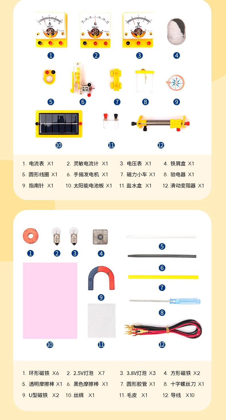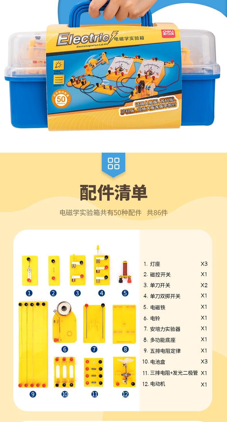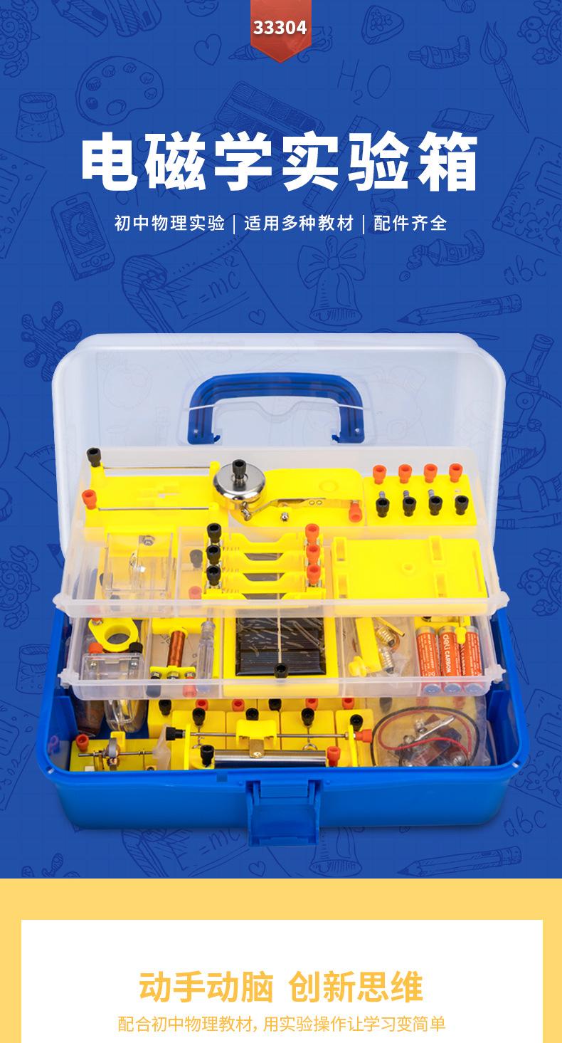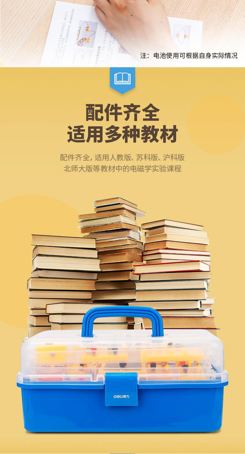 Deli 33304 equipo físico conjunto completo de caja de experimentos electromagnéticos para estudiantes de secundaria modelo de circuito instrumento caja de herramientas